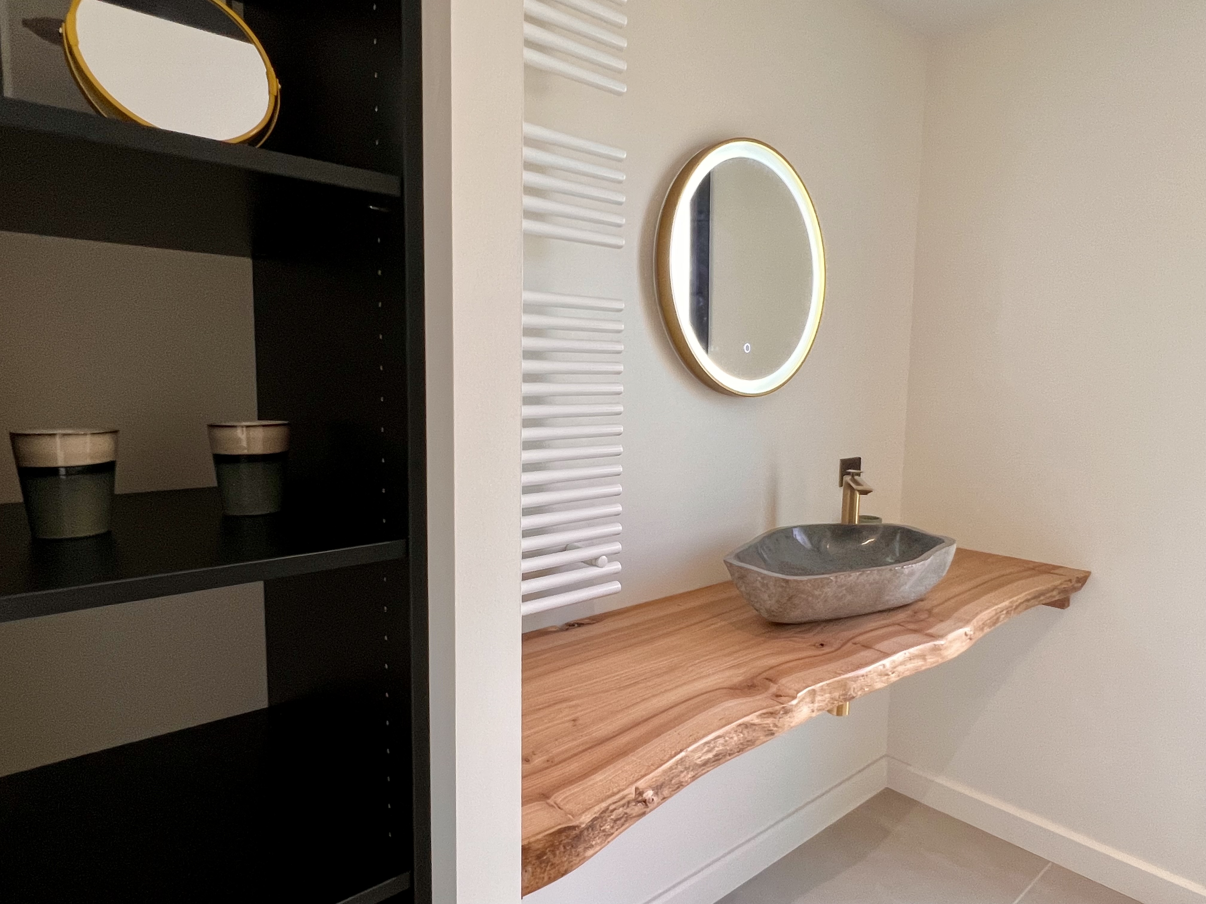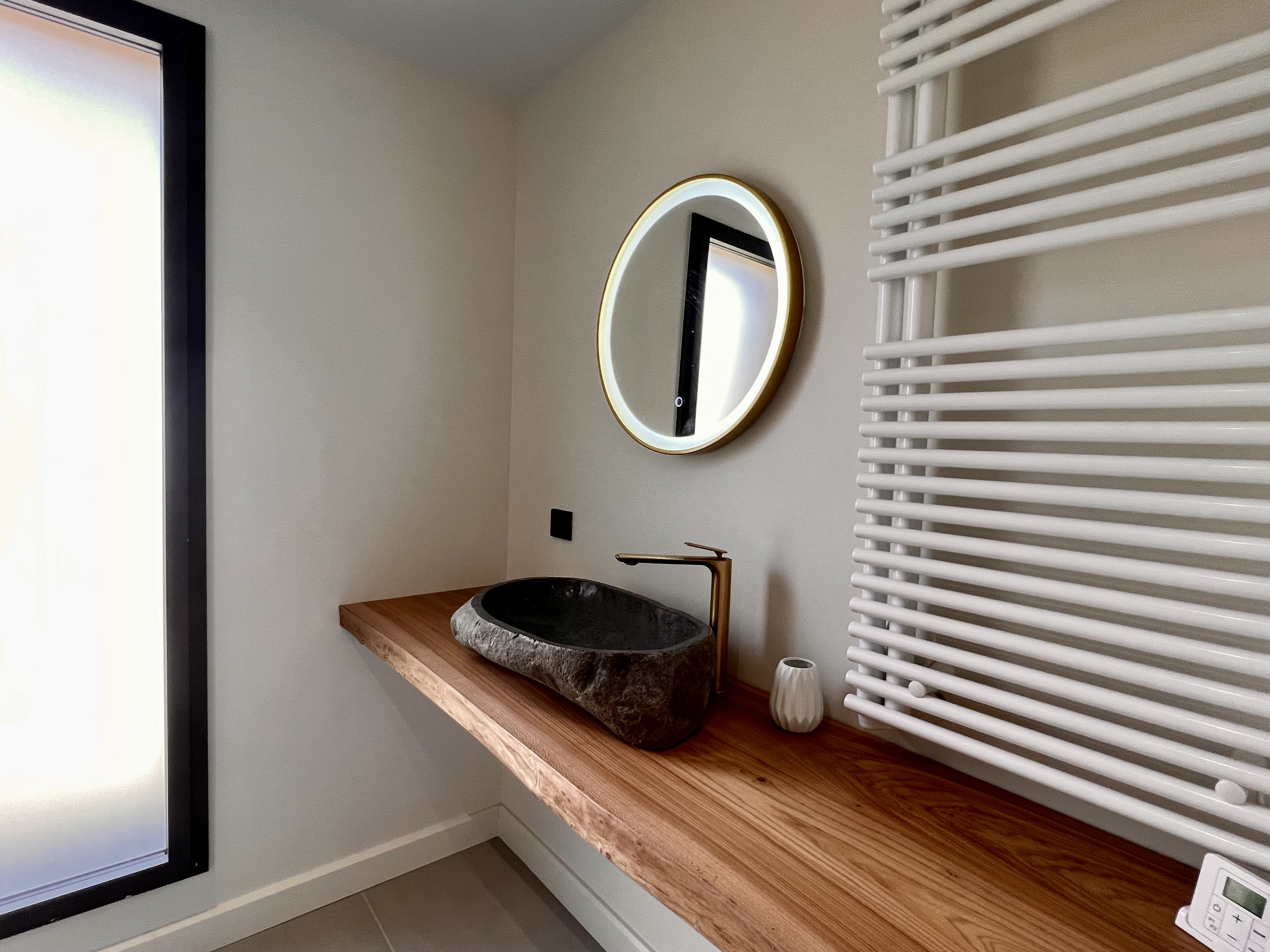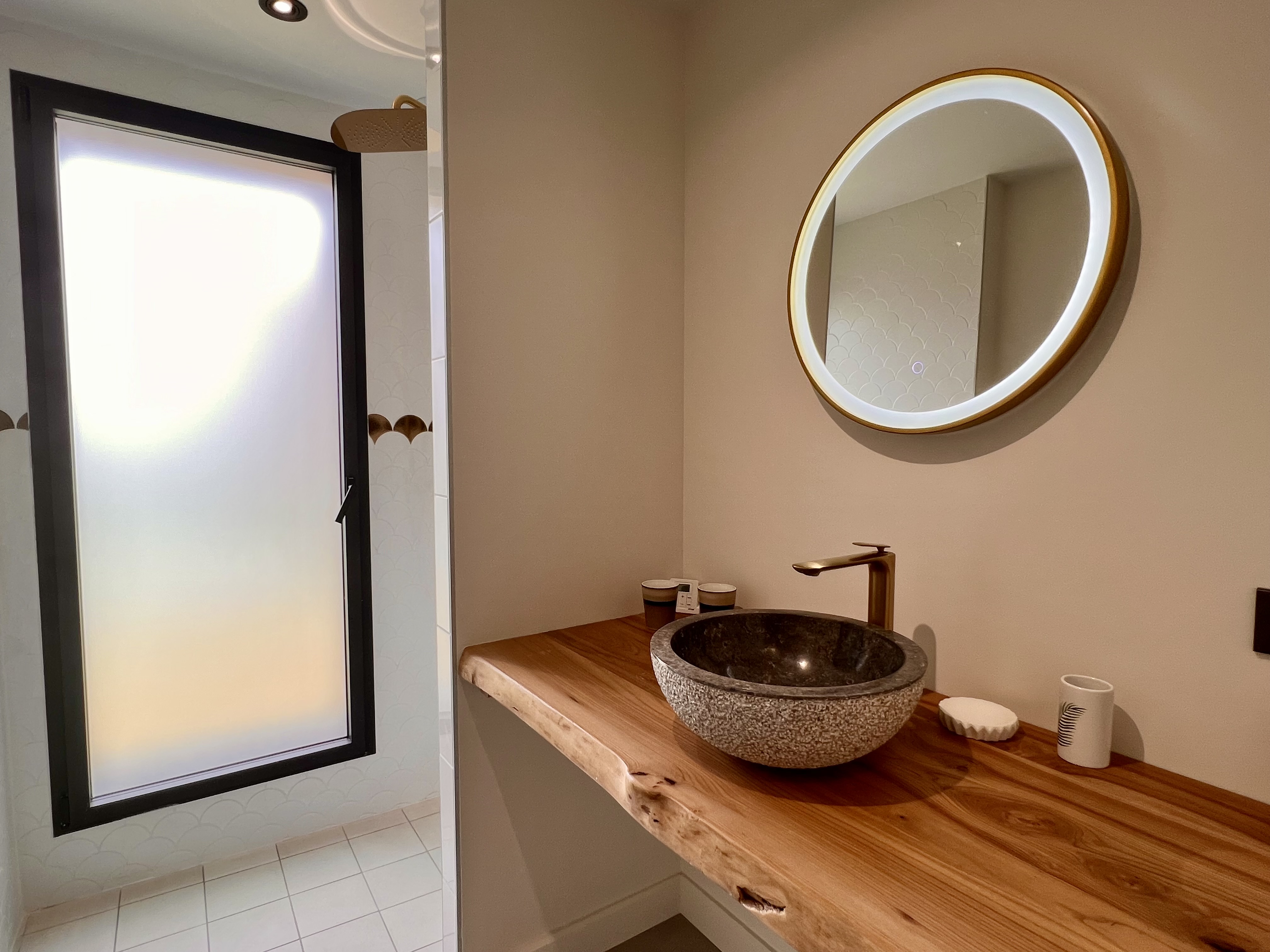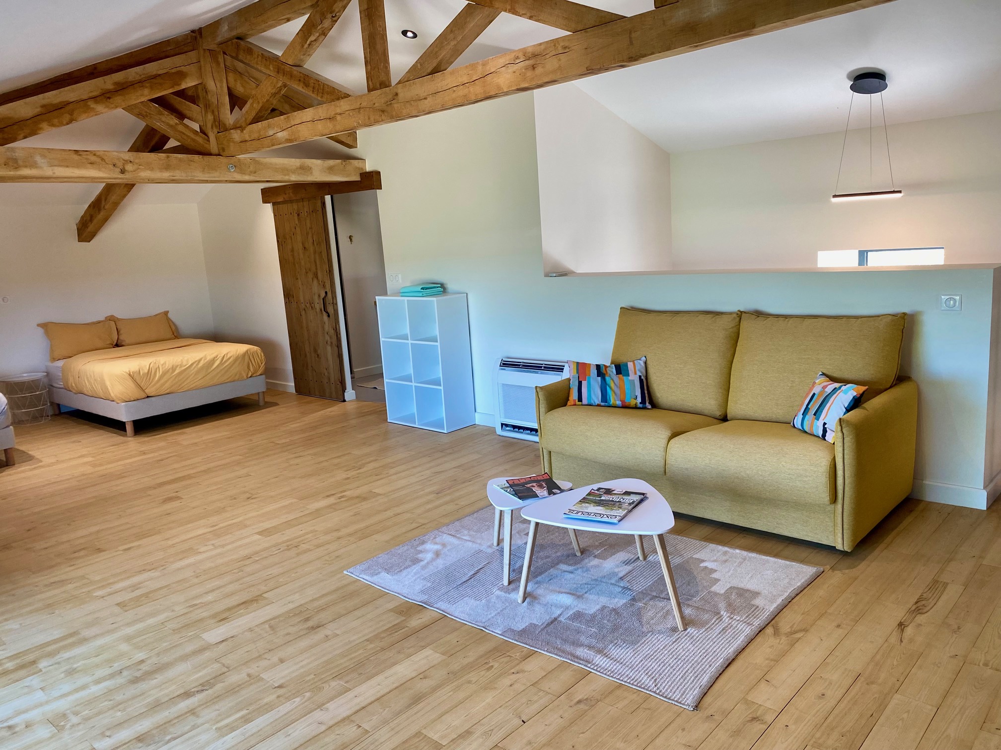 A l’étage vous trouverez également 2 lits supplémentaires en 140*200 situés dans une grande mezzanine avec salle de bain et WC privatifs.