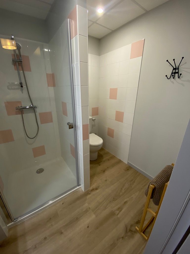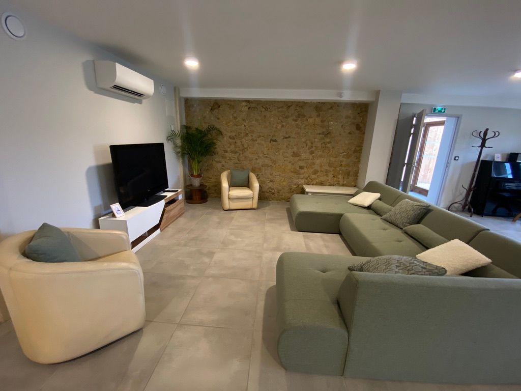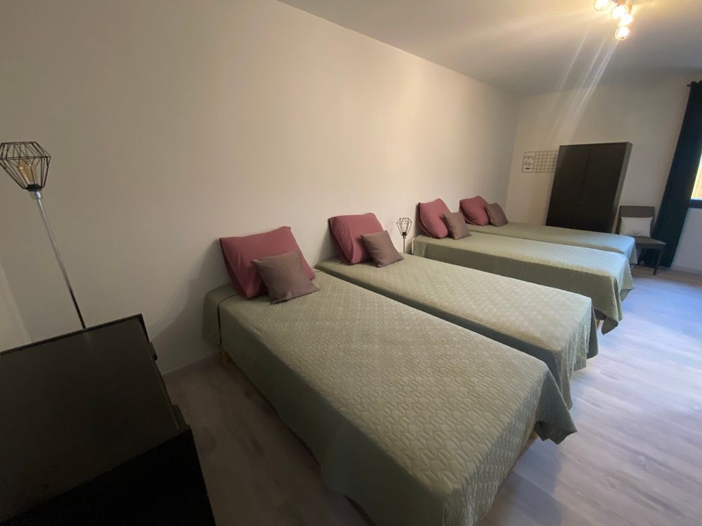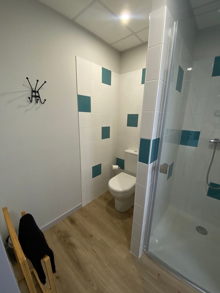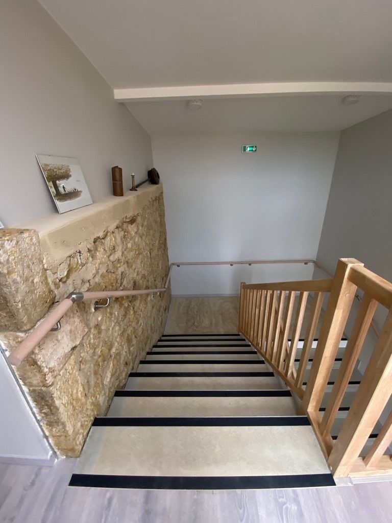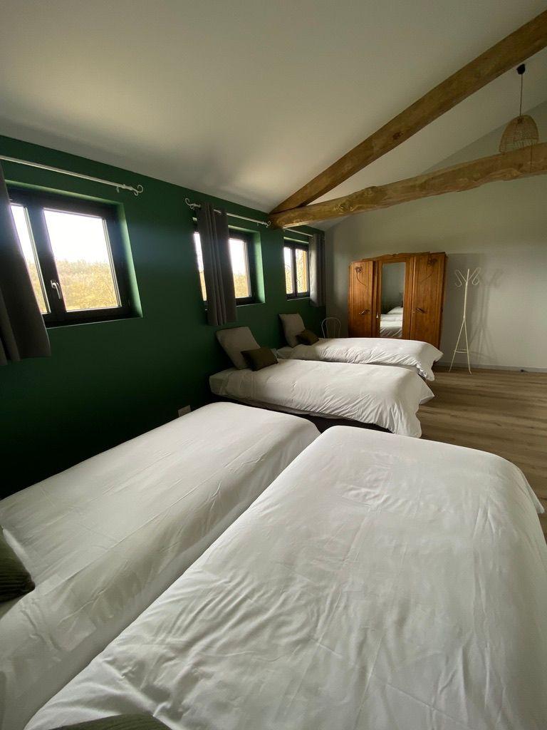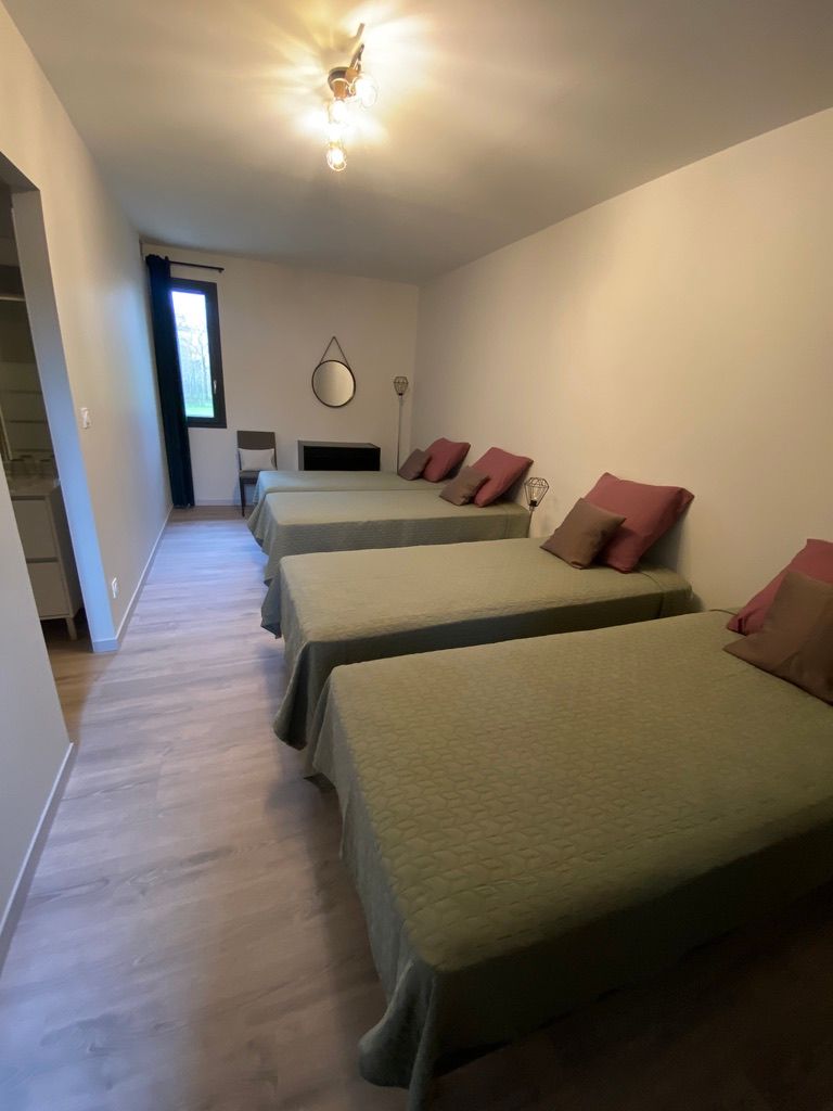 The ground floor includes a PRM studio (bedroom with modular beds, shower room and toilet), a living area with integrated kitchen and a large, fully-equipped reception room (semi-professional kitchen, tables for 30 guests, lounge with TV). Upstairs, comfortable bedrooms: on the tobacco barn side, 2 double bedrooms and 2 quadruple bedrooms with en suite facilities; on the hay barn side, a similar layout.