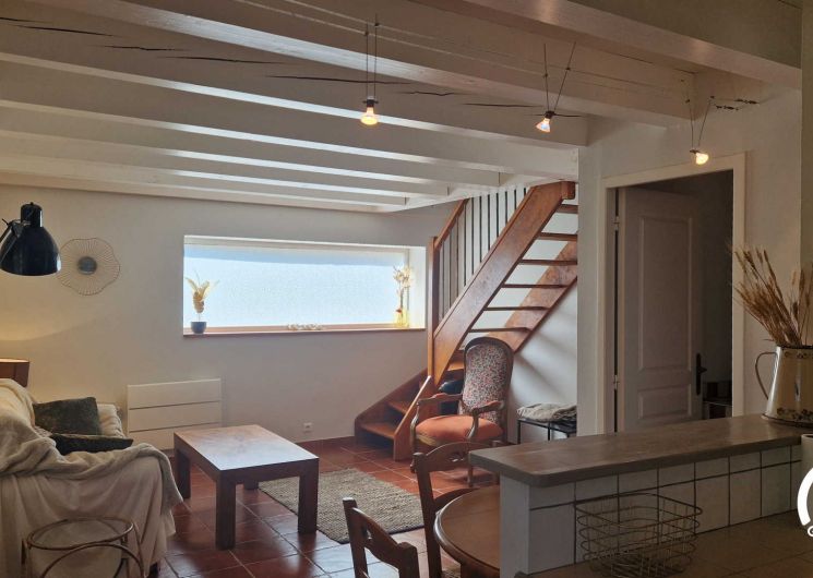 – une pièce de vie au rez-de-chaussée avec espace salon et TV,