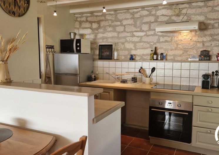 – une cuisine ouverte toute équipée : lave-vaisselle, four, réfrigérateur avec congélateur, micro-ondes, grille-pain, bouilloire, cafetière à dosettes Nespresso®, cafetière à filtre, à piston et à l’italienne.