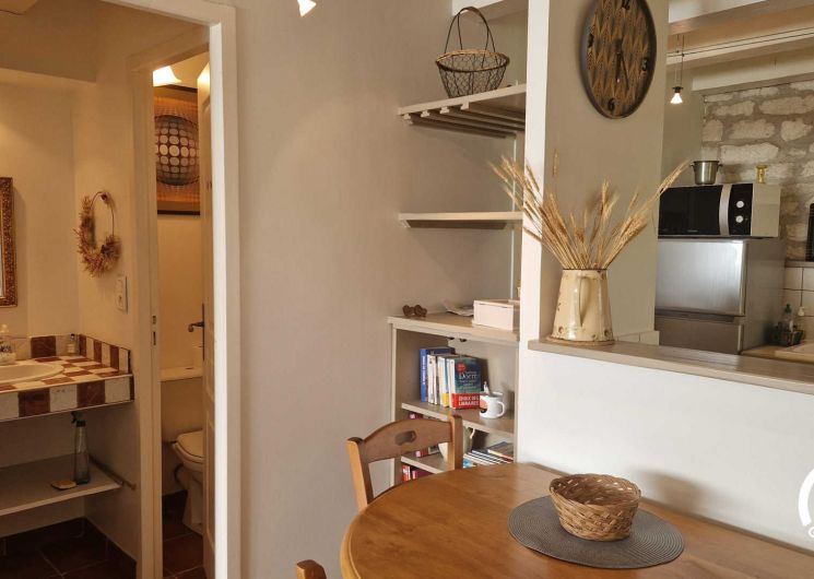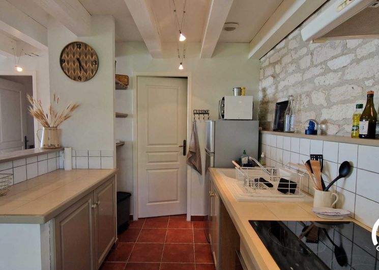 – attenant à la cuisine, une petite buanderie avec lave-linge et le nécessaire de ménage,