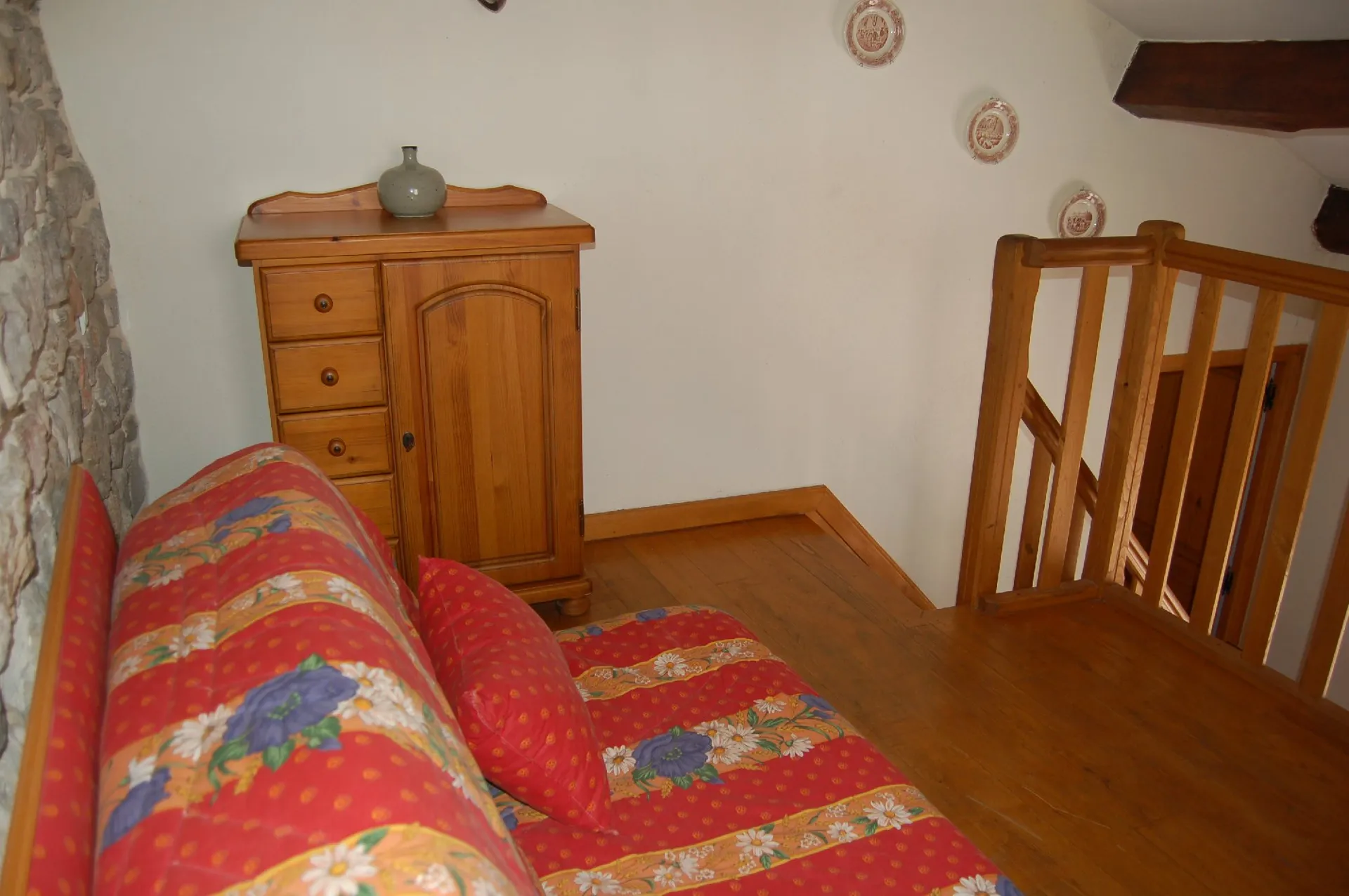 Au rez-de-chaussée : kitchenette intégrée (lave-vaisselle, frigo/congélateur, micro-ondes/four, machine à café filtre et Nespresso) dans la salle à manger – Au 1er étage : Mezzanine (canapé/BZ 140, TV, magnétoscope/lecteur DVD) – A mi-étage : Accès à la chambre (2 lits 90×200 jumeaux) par salle d’eau (douche), WC – Chauffage électrique – Accès terrasse (salon de jardin, plancha) par salle de jeux (clic-clac, ping-pong, sèche-linge/lave-linge) – Stationnement non privatif à 30m, à l’entrée du hameau.