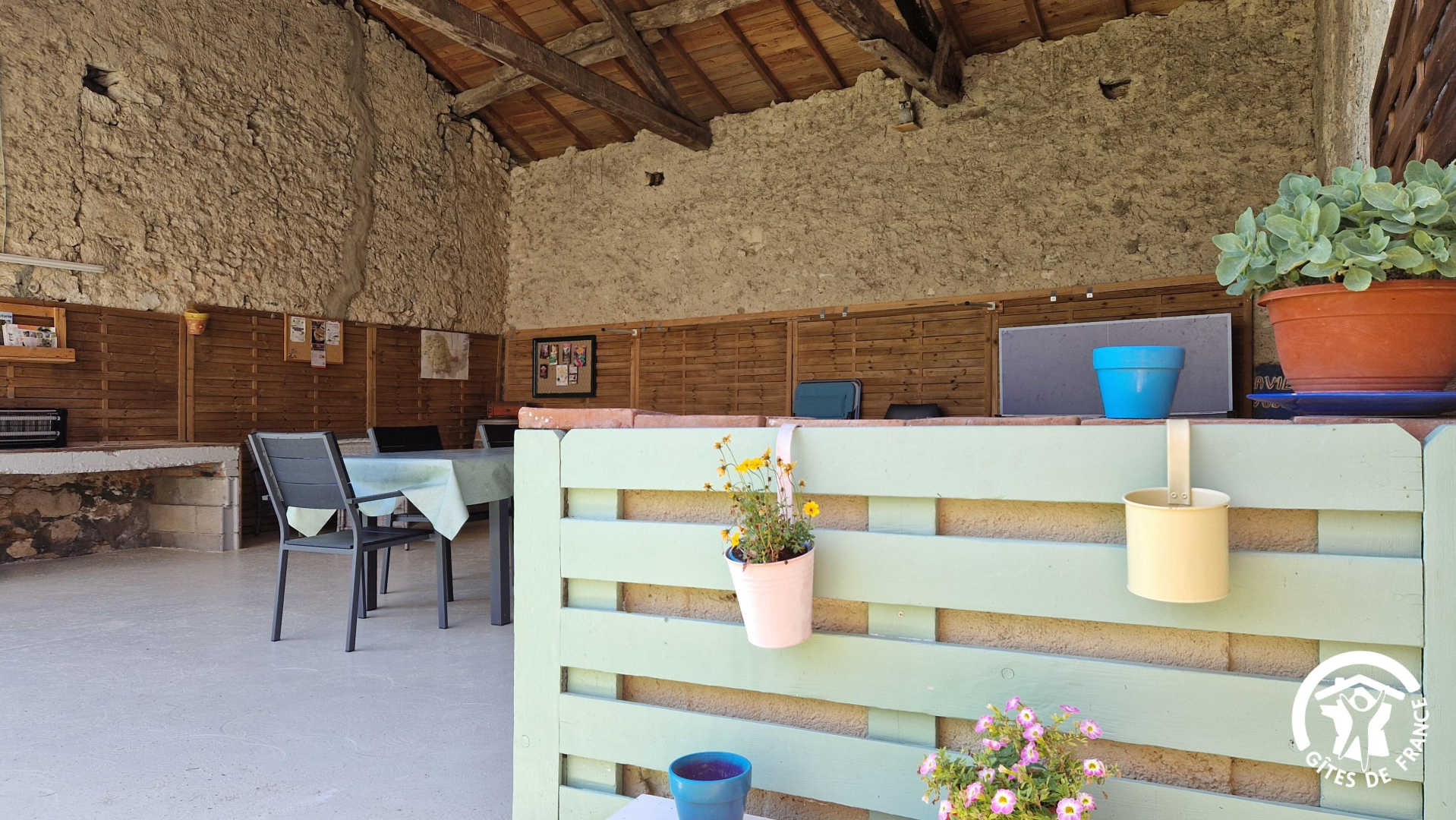 Son véritable atout : un préau couvert de 60 m², conçu comme une véritable pièce à vivre face au jardin, équipé d’une grande table, d’un salon de jardin, d’une table de ping-pong et d’un barbecue, pour des moments de détente et de convivialité.