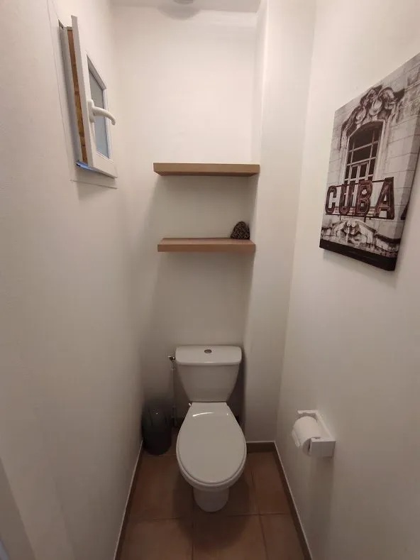 Appartement indépendant dans grande maison, belle terrasse avec vue dominante sur la vallée du Tarn (table, bancs, parasol, plancha). Pièce à vivre climatisée avec cuisine ouverte toute équipée (four, four micro-ondes, lave-vaisselle, frigo, plaque à induction), salle de bain avec douche et lave-linge, WC séparé, 2 chambres avec fenêtre ou porte fenêtre et lit en 160, plus 1 chambre avec 2 lits en 90, chauffage, 2 places de parking.