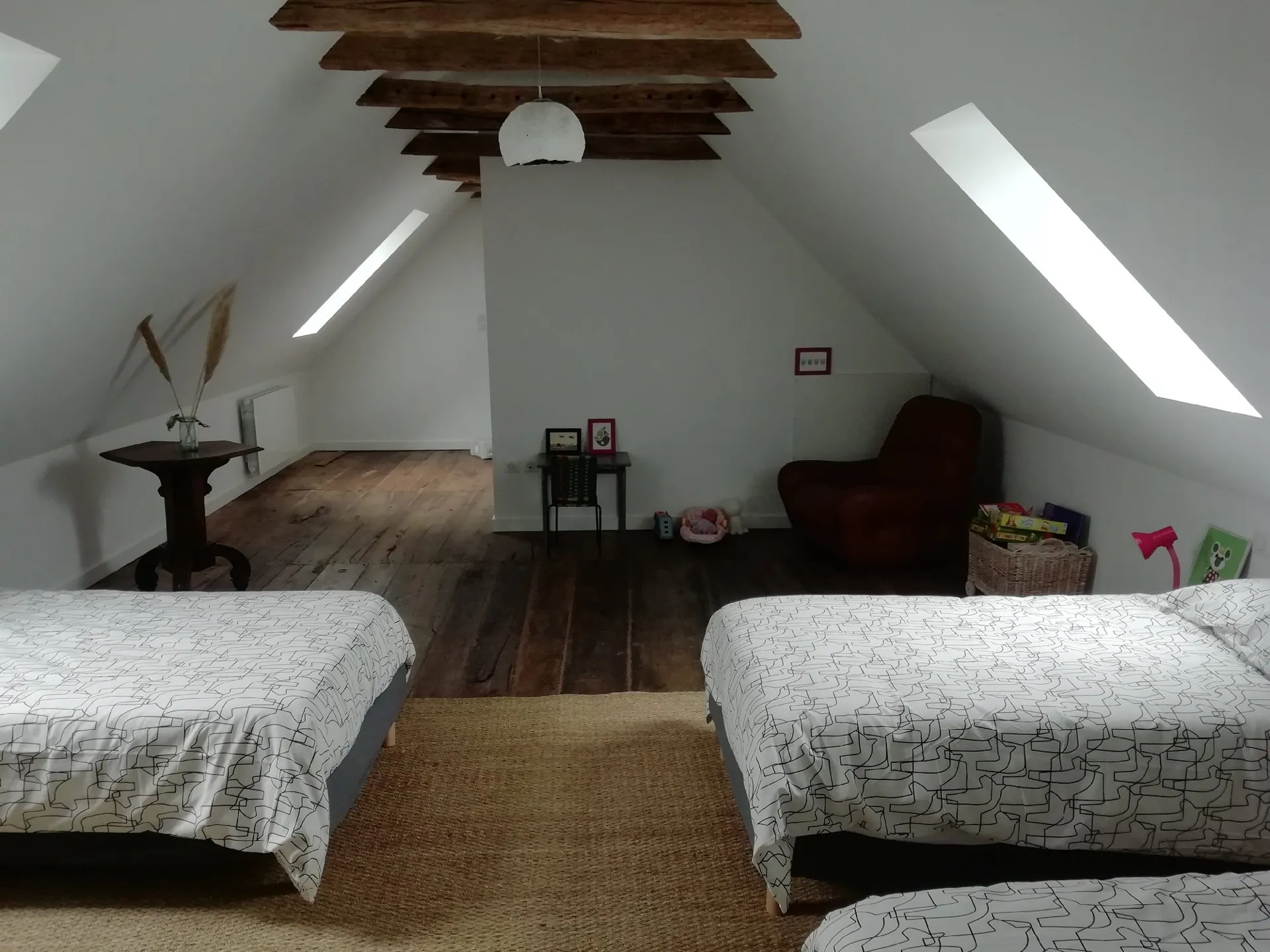 Grande pièce à vivre, avec cuisine séparée, 4 chambres dont un dortoir avec 4 lits en 90, 2 salle de bain et 2 WC séparés. Cour privée avec barbecue.