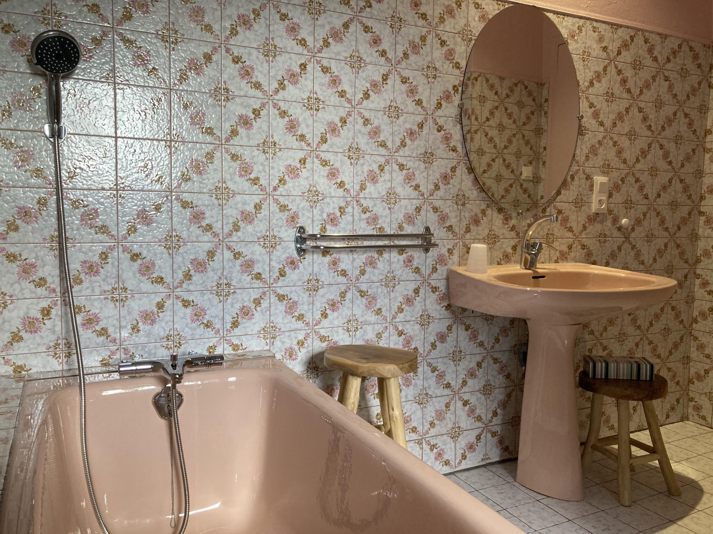 – grande salle de bain avec baignoire et douche, sèche-cheveux