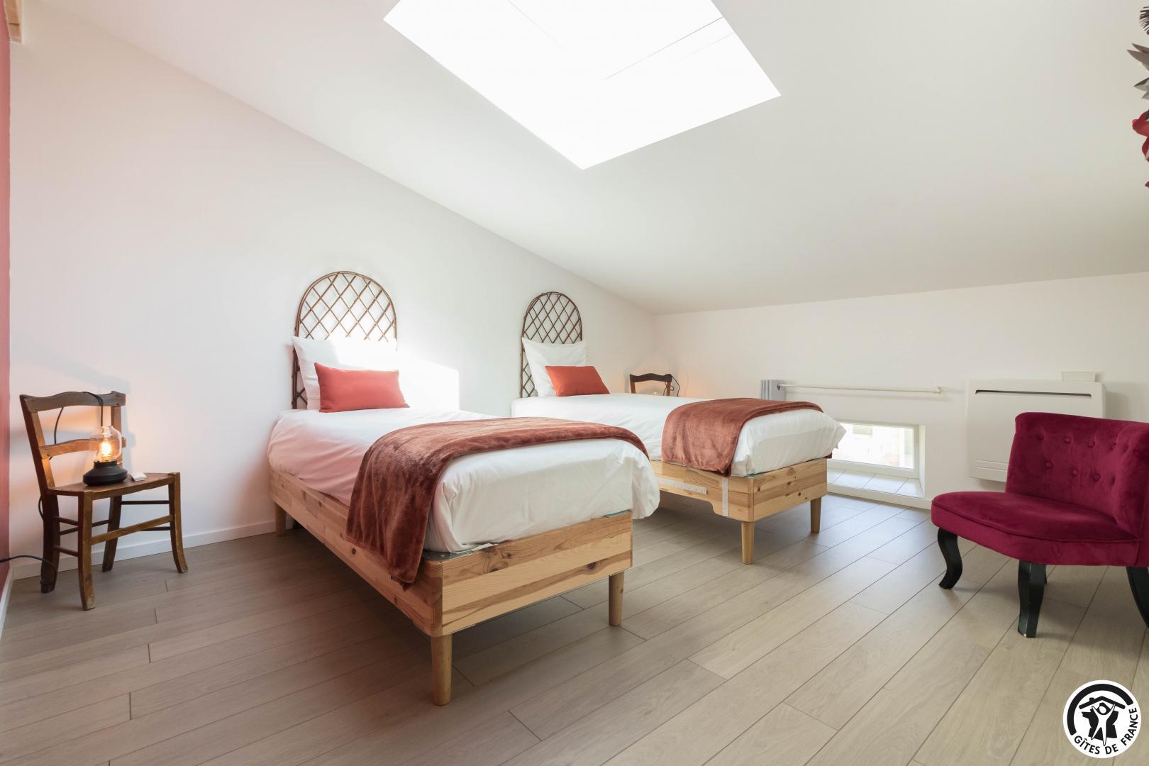 In posizione ideale, vi trovate a 8 km dal lago di Thésauque (base nautica: nuoto, stand-up paddle, giochi d’acqua) e dal lago di Ganguise, nonché a 12 km dal Canal du Midi (passeggiate in bicicletta, a piedi o in barca), ma anche nel cuore della regione Occitanie da visitare: Tolosa, Foix e Carcassonne a meno di 50 minuti di auto! Trascorrerete una bella vacanza in campagna in questo antico casale di Lauragaise, che comprende la casa dei proprietari e le due gîtes de l’Alba. È disponibile una terrazza privata con mobili da giardino. Il grande giardino di 2,5 ettari, non recintato, è condiviso da tutti. All’ingresso della struttura è stato predisposto un ampio parcheggio. Questo grande gîte è diviso in due gîte comunicanti: – Alba 1: dispone di un’ampia sala da pranzo e di un soggiorno con cucina a vista. Lavanderia nel sottoscala e WC con lavabo. Al primo piano: tre camere da letto (1 letto matrimoniale (160 cm) (2 letti singoli (80 cm) gemellabili) (2 letti singoli (80 cm) gemellabili), bagno con doccia, WC separato. Riscaldamento elettrico. – L’Alba 2 PMR: questo gîte è disposto su due livelli ed è stato attrezzato per facilitare l’accesso alle persone a mobilità ridotta. Il piano terra comprende un ampio soggiorno con cucina aperta e una camera da letto accessibile (1 letto matrimoniale in 160) con bagno privato con doccia/WC. Una scala conduce a un mezzanino che porta ad altre due camere da letto (2 letti singoli (80 cm) che possono essere gemellati) e a un secondo bagno con doccia/WC. Riscaldamento elettrico. Il prezzo comprende: acqua, elettricità, riscaldamento, lenzuola, asciugamani e biancheria per la casa (strofinacci, presine…). Il prezzo non include: la pulizia alla fine del soggiorno: 120? Traduction automatique par DeepL via DATAtourisme