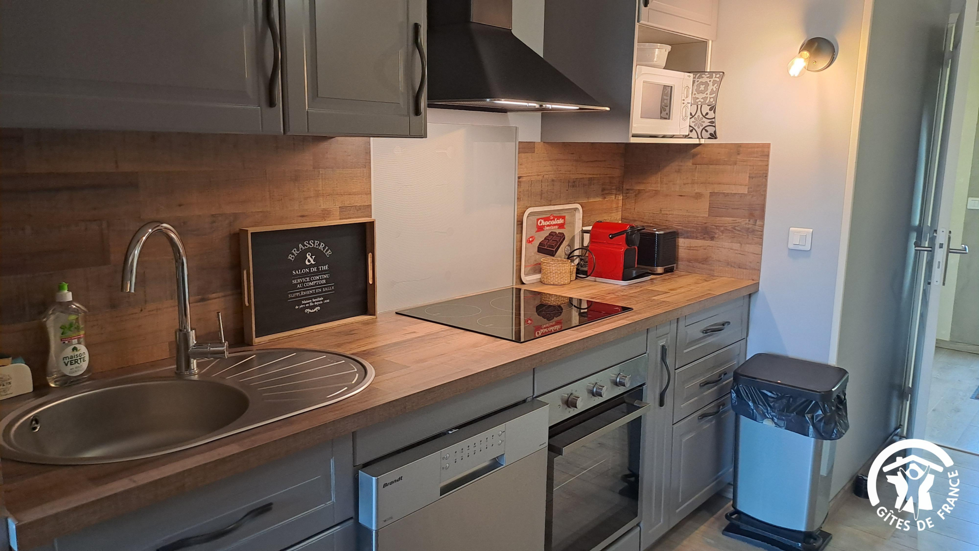 Valérie vous accueille dans son ancienne bergerie à Arthès, en formule chambre d’hôtes ou en gîte. Le gîte accueille quatre, voire six personnes. A l’étage, on y accède par un escalier et une terrasse à l’arrière de la maison. Deux chambres en enfilade, l’une avec un lit double (en 160×200), l’autre avec deux lits simples (en 90×190), deux salles d’eau, séjour avec cuisine ouverte toute équipée : réfrigérateur, lave-vaisselle, plaque induction, four, micro-ondes, etc… Le lave-linge est à partager avec les propriétaires. Dans le séjour le canapé est convertible en lit 160 de grand confort avec matelas à mémoire de forme.