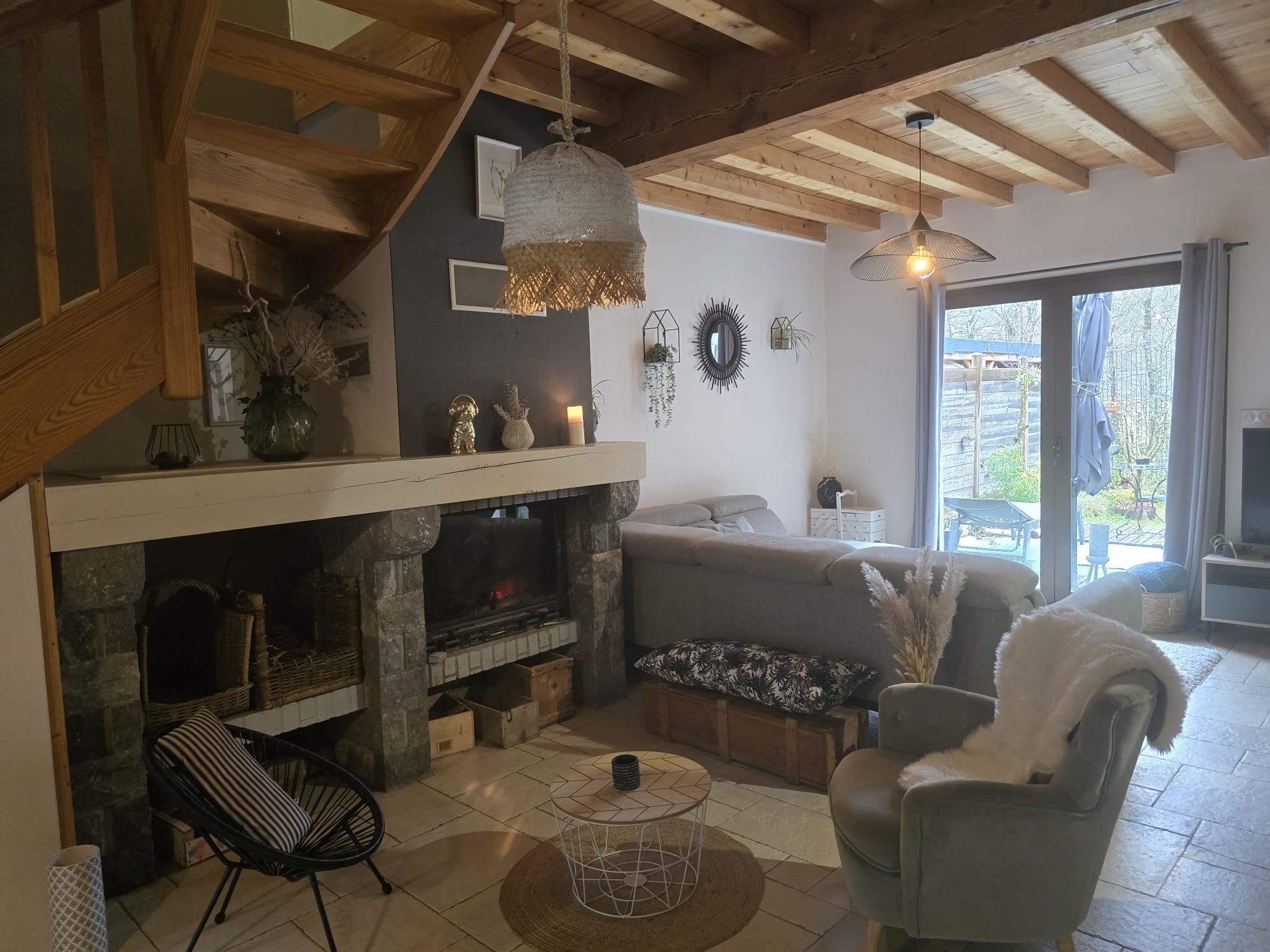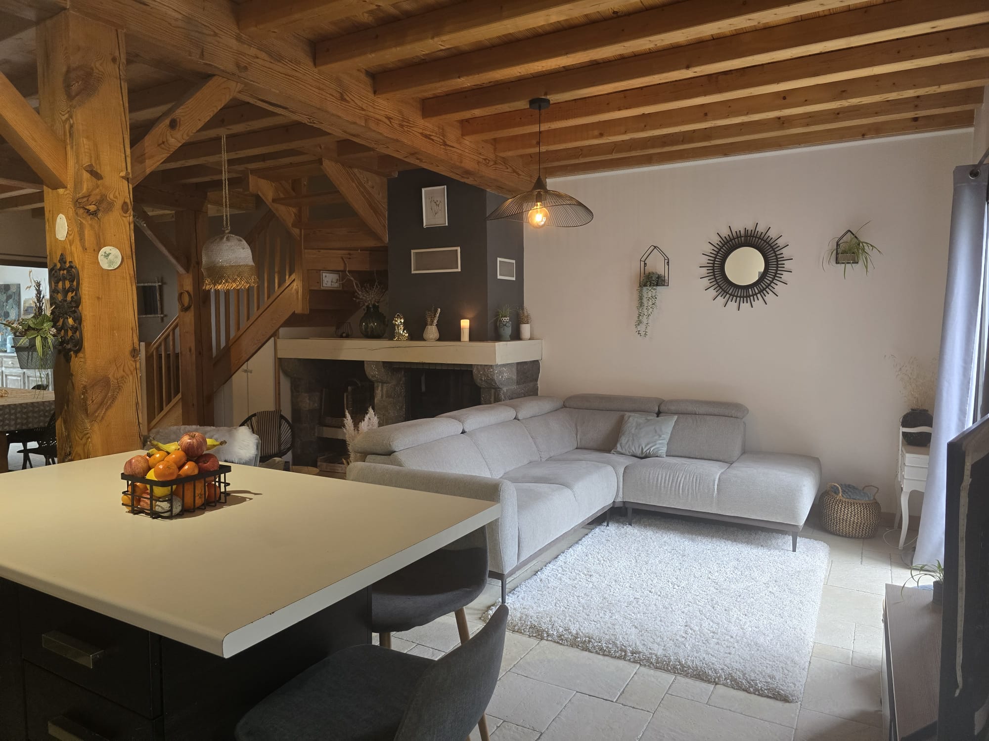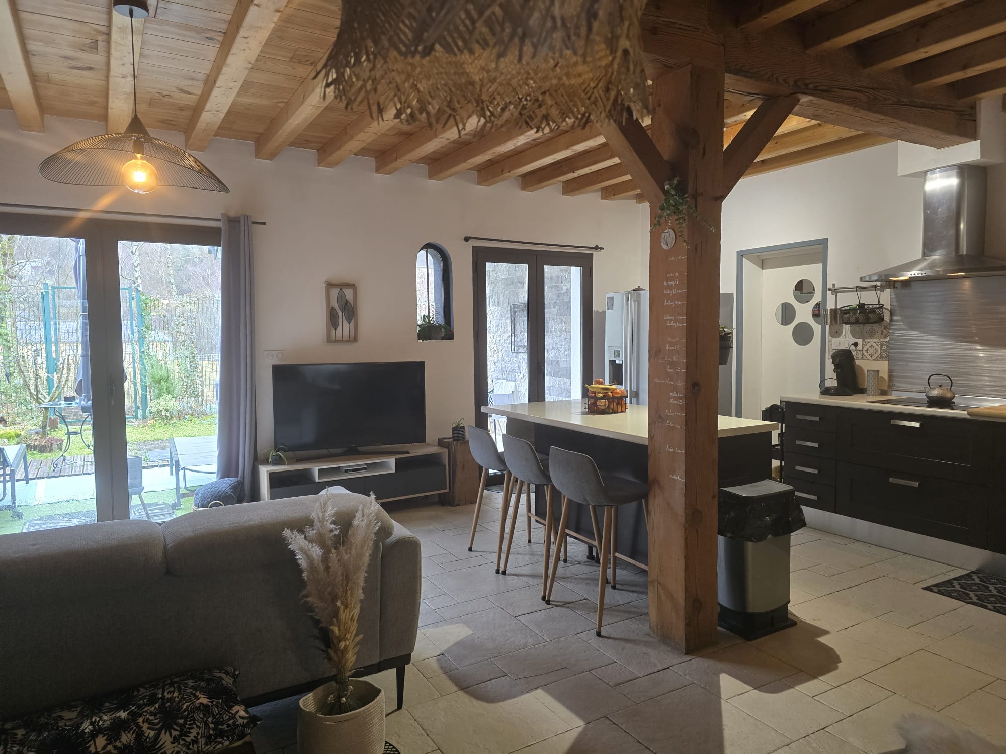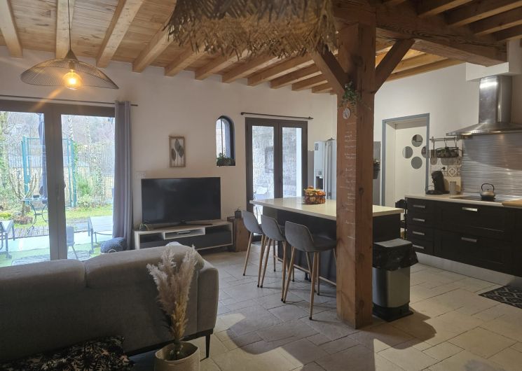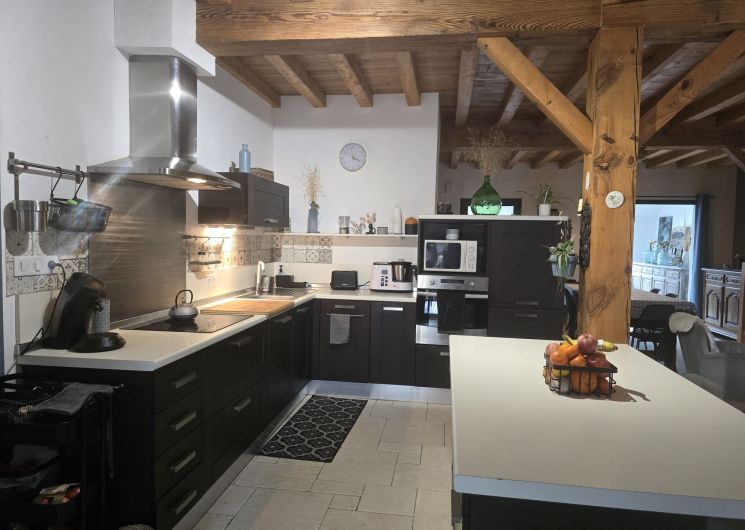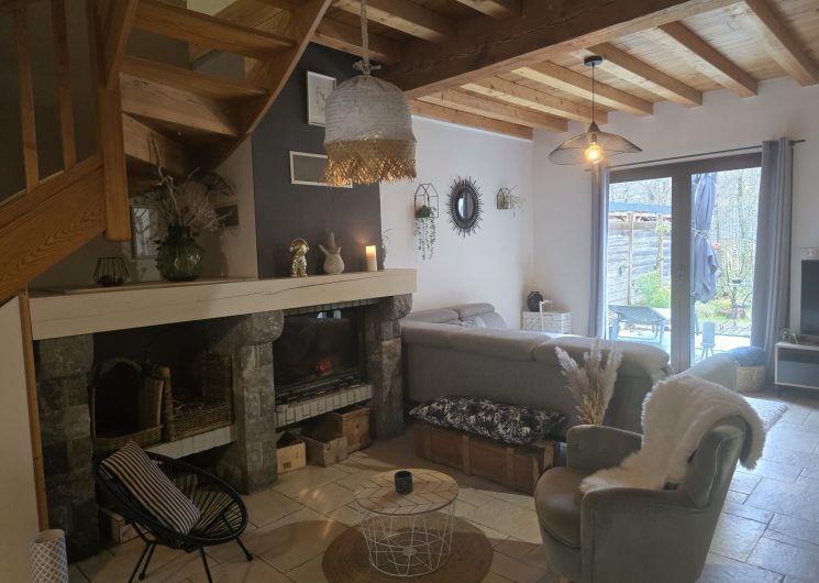 Maison pouvant accueillir jusqu’à 6 personnes comprenant : – Une grande pièce de vie avec cheminée composée d’une cuisine équipée, d’un espace repas convivial, d’un salon cosy avec TV connectée, – A l’étage, 4 chambres au total. Les 6 personnes peuvent se répartir ainsi : – chambre 1 avec lit un 160×200 – chambre 2 avec 2 lits jumeaux 80×200 ou 1 lit queen size, placard +un lit 140×200 2 autres chambres sont également disponibles : – chambre 3 avec un lit 140×200, placard – chambre 4 avec lit 140×200 et placard, 1 lit 90×200 d’appoint Une salle de bain avec baignoire et douche (à l’étage), 2 WC séparés (1 en rez-de-chaussée et 1 à l’étage). La location bénéficie d’un jardin clos, orienté plein sud avec barbecue et d’un local sécurisé pour skis et vélos. La maison dispose également d’un studio au rez-de-chaussée de la maison accessible par le même sas d’entrée.
