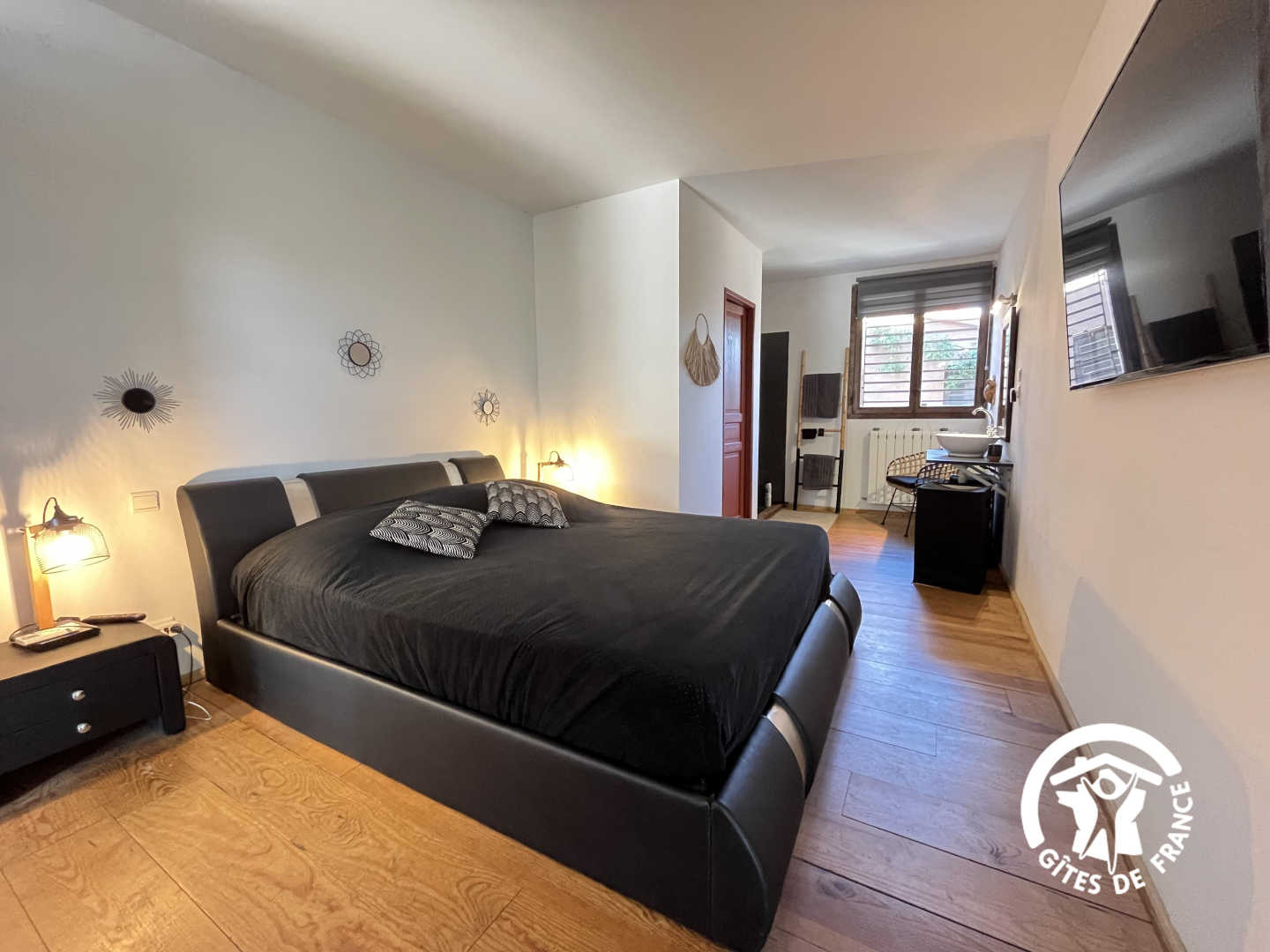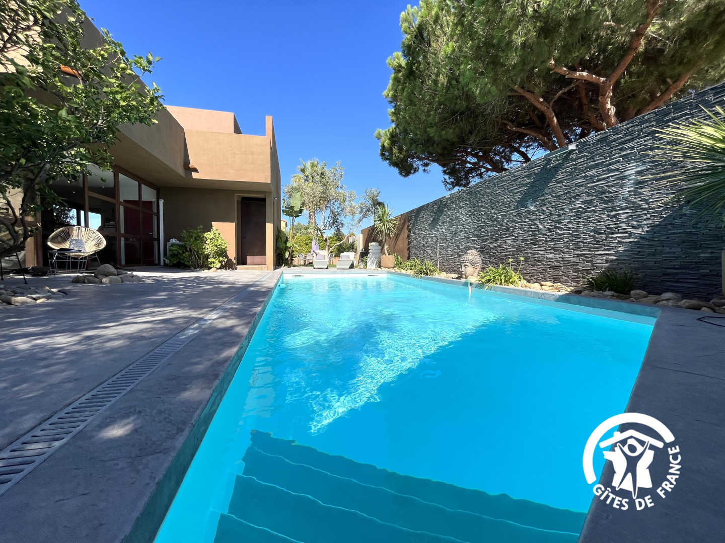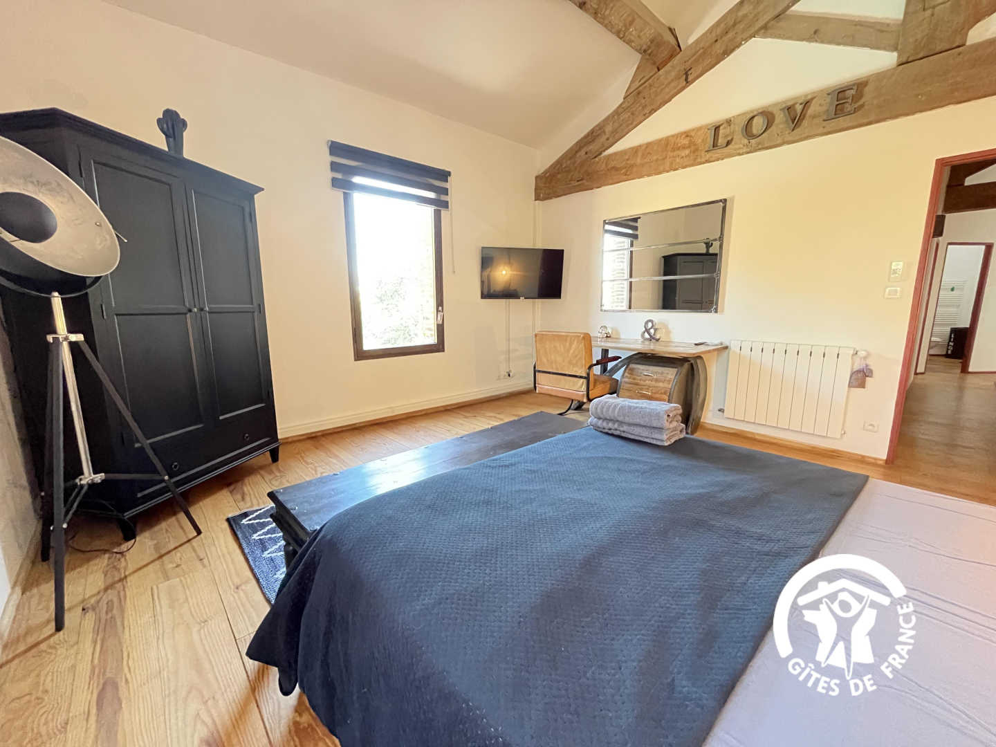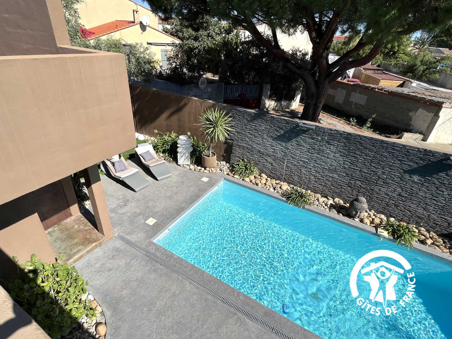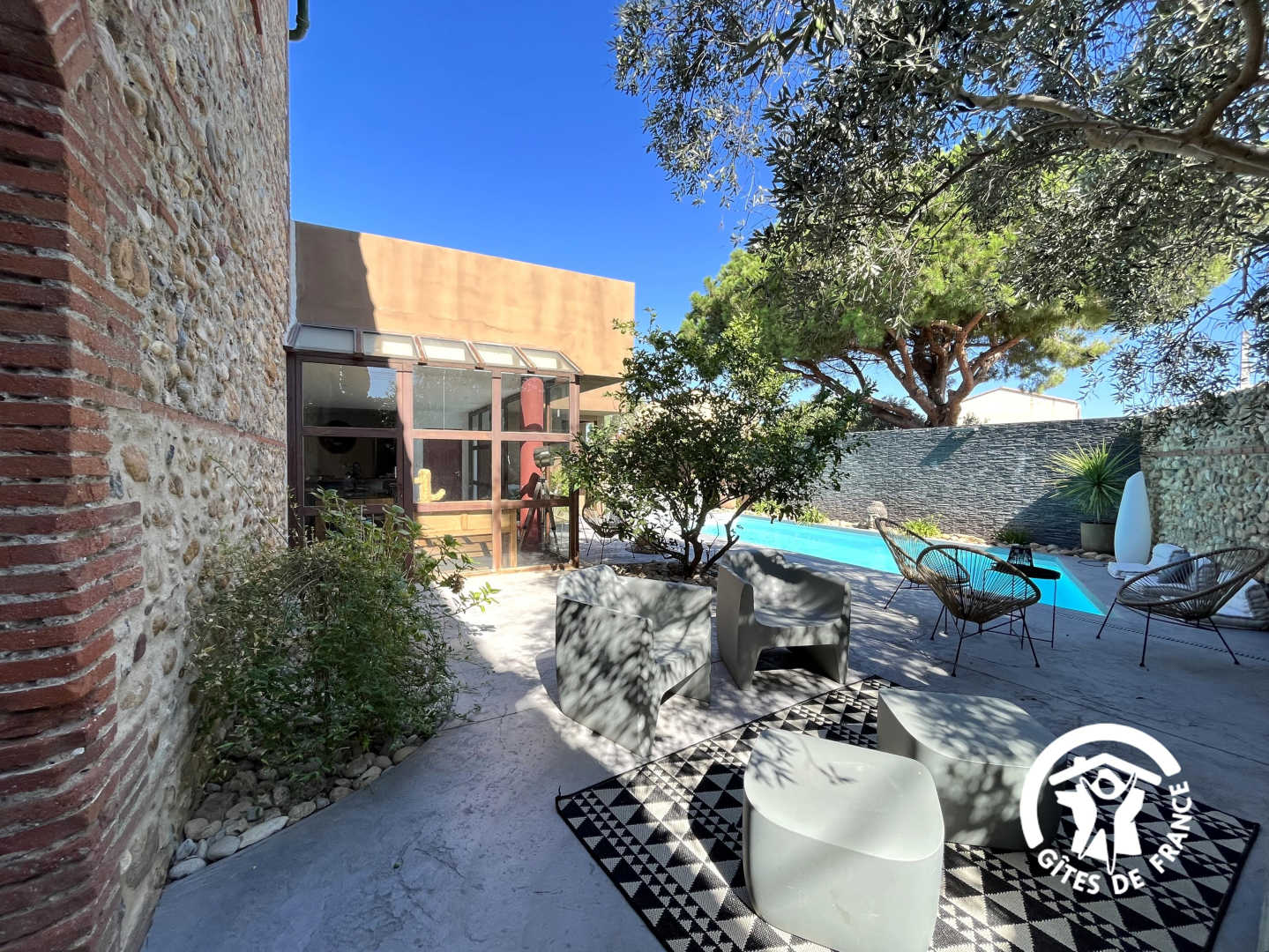 Just a stone’s throw from Perpignan, in the heart of the Roussillon region, stay in a beautiful, unusual residence close to many of the major tourist attractions in the Pyrénées-Orientales. You will enjoy a beautiful swimming pool secured by an alarm (4.5 m x 8.5 m. depth 1.70 m, accessible from May to October). Inside, on the ground floor: fully-equipped kitchen, large, very comfortable living room (bar area, table football, fireplace and pinball machine as decorative features), 1 en-suite bedroom (1 double bed 160×200) with private shower room and wc. Upstairs: 1 large master bedroom (1 double bed 160×200) with private bathroom and wc, 2 large bedrooms (each with 1 double bed 160×200) with shared shower room and wc. Outside, a self-contained ground-floor bedroom with shower, bath and private wc (good quality double sofa bed 150×190).