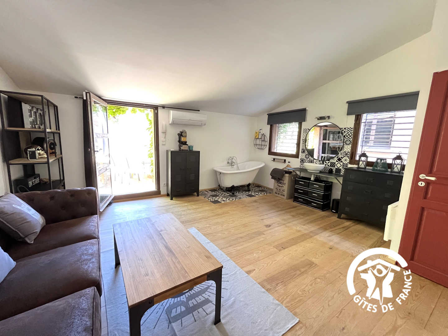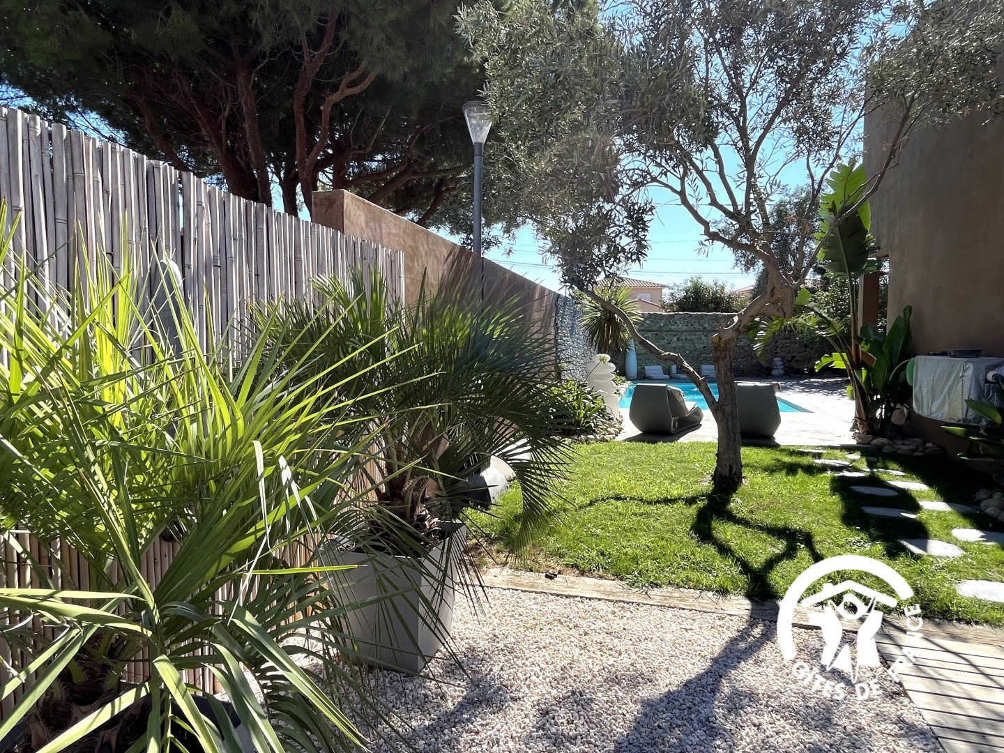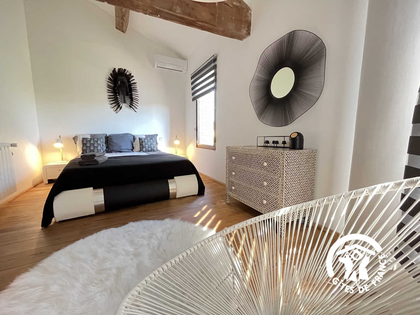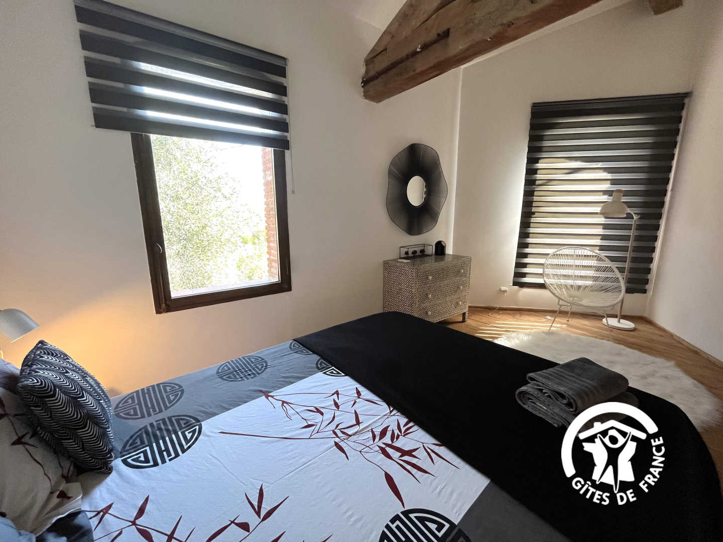 Just a stone’s throw from Perpignan, in the heart of the Roussillon region, stay in a beautiful, unusual residence close to many of the major tourist attractions in the Pyrénées-Orientales. You will enjoy a beautiful swimming pool secured by an alarm (4.5 m x 8.5 m. depth 1.70 m, accessible from May to October). Inside, on the ground floor: fully-equipped kitchen, large, very comfortable living room (bar area, table football, fireplace and pinball machine as decorative features), 1 en-suite bedroom (1 double bed 160×200) with private shower room and wc. Upstairs: 1 large master bedroom (1 double bed 160×200) with private bathroom and wc, 2 large bedrooms (each with 1 double bed 160×200) with shared shower room and wc. Outside, a self-contained ground-floor bedroom with shower, bath and private wc (good quality double sofa bed 150×190).