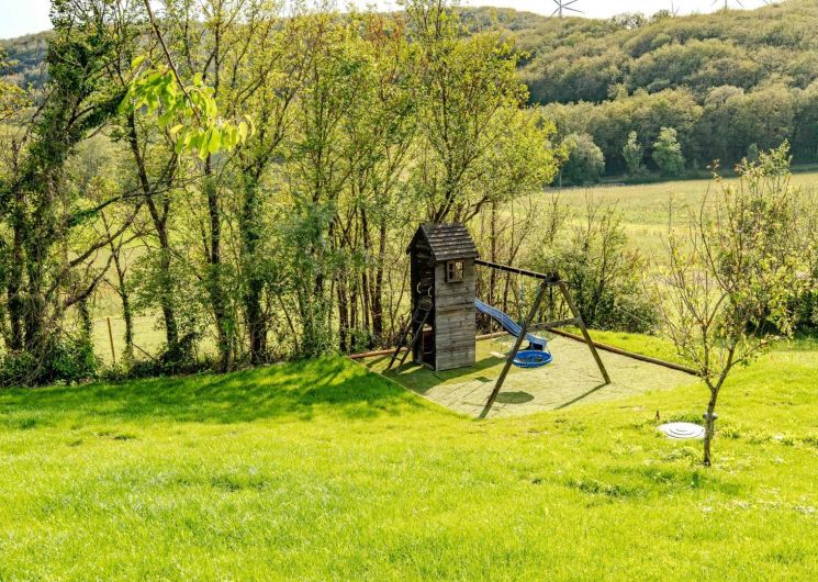 The gîte is part of a welcoming estate shared with other accommodations. On-site, you’ll find many amenities: a solar-heated swimming pool (12 x 6 m) secured by a fence, trampoline, swing set, ping-pong, table football, darts, board games… an outdoor playground in the countryside! High-speed fibre wifi is available throughout the property, and private parking is provided.
