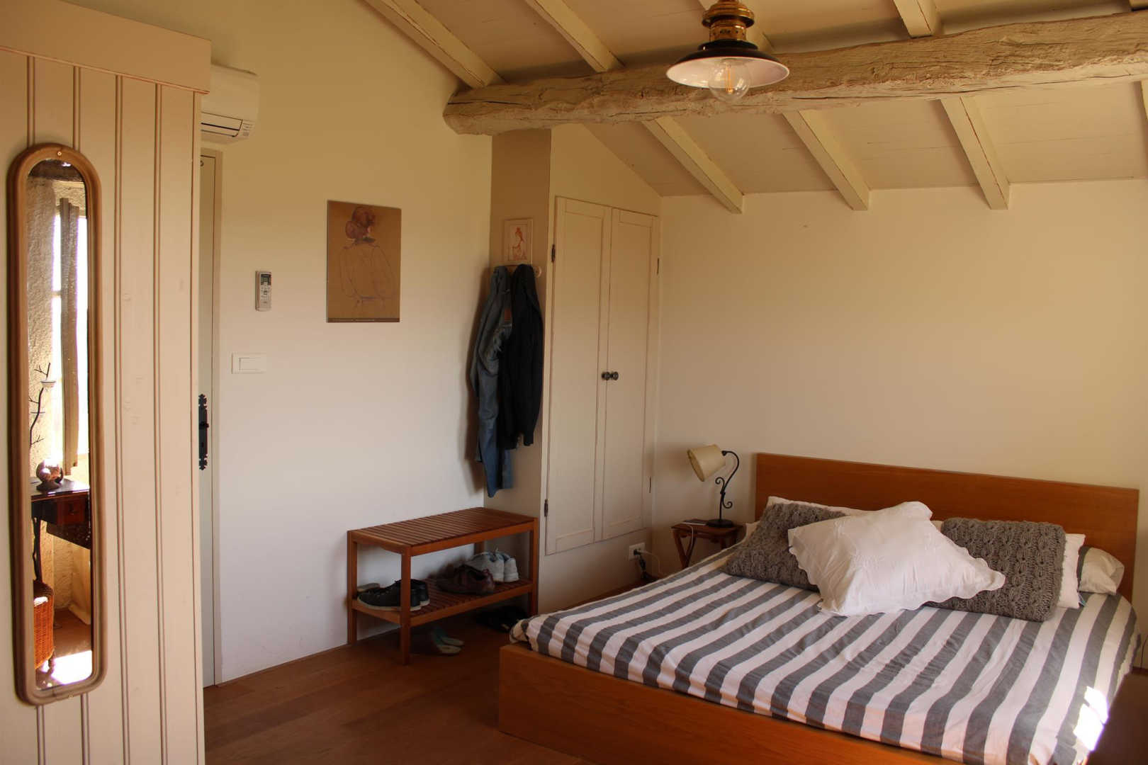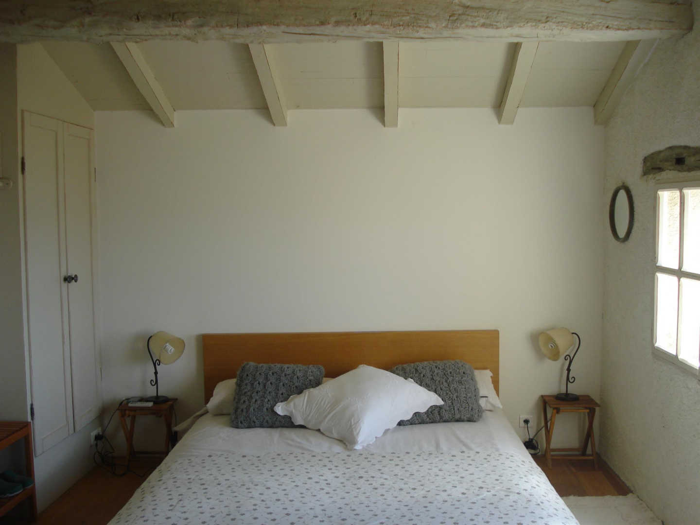 Des escaliers mènent à la seconde chambre qui se trouve en rez-de-jardin. Elle s’ouvre directement sur le jardin. Elle accueille deux personnes également, jusqu’à quatre (deux lit gigogne en 90).