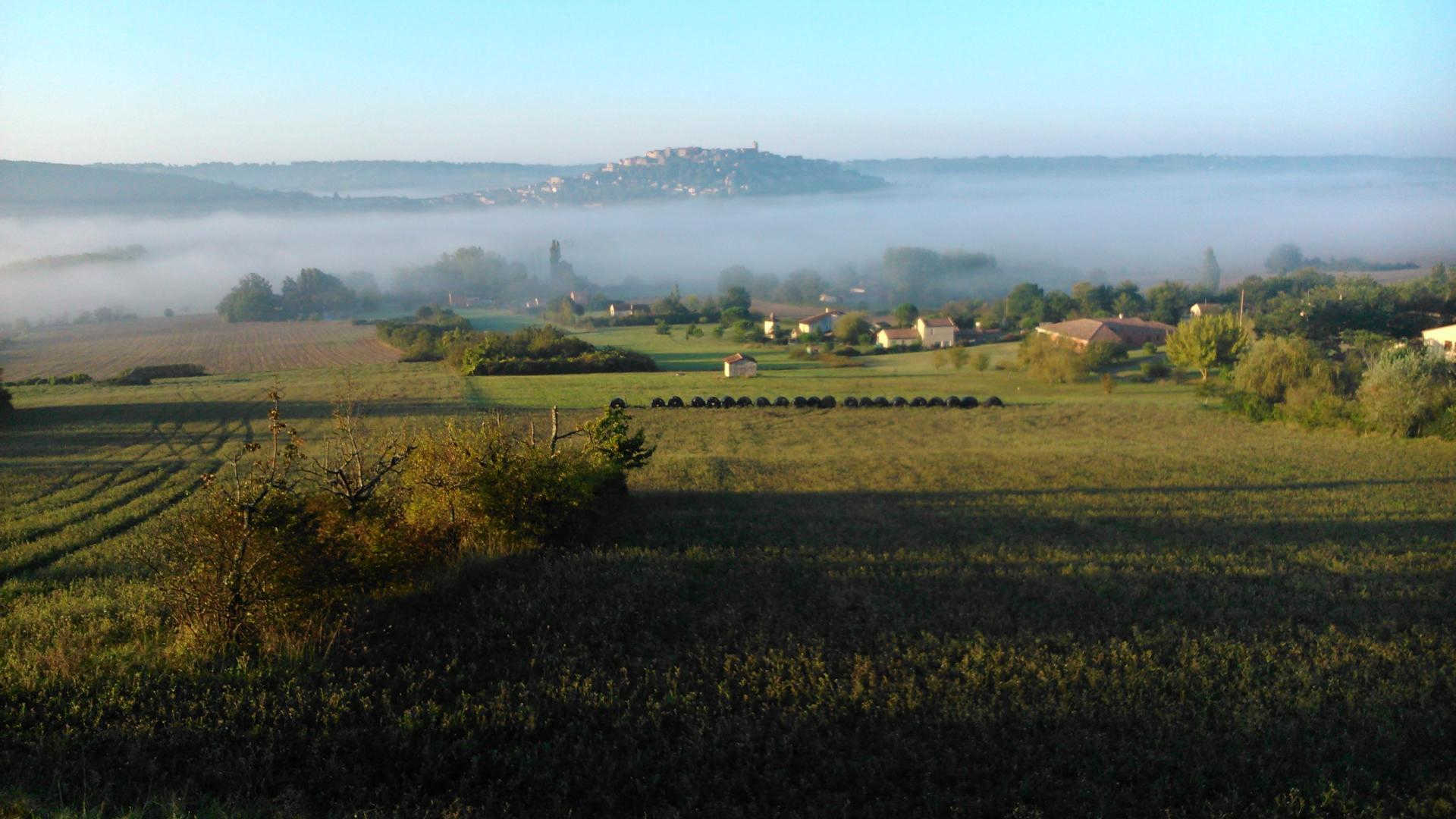 Quel point de vue sur la Cité de Cordes-sur-Ciel ! Une image de carte postale, la petite maison dans la prairie, la cité qui émerge des nuages en panorama