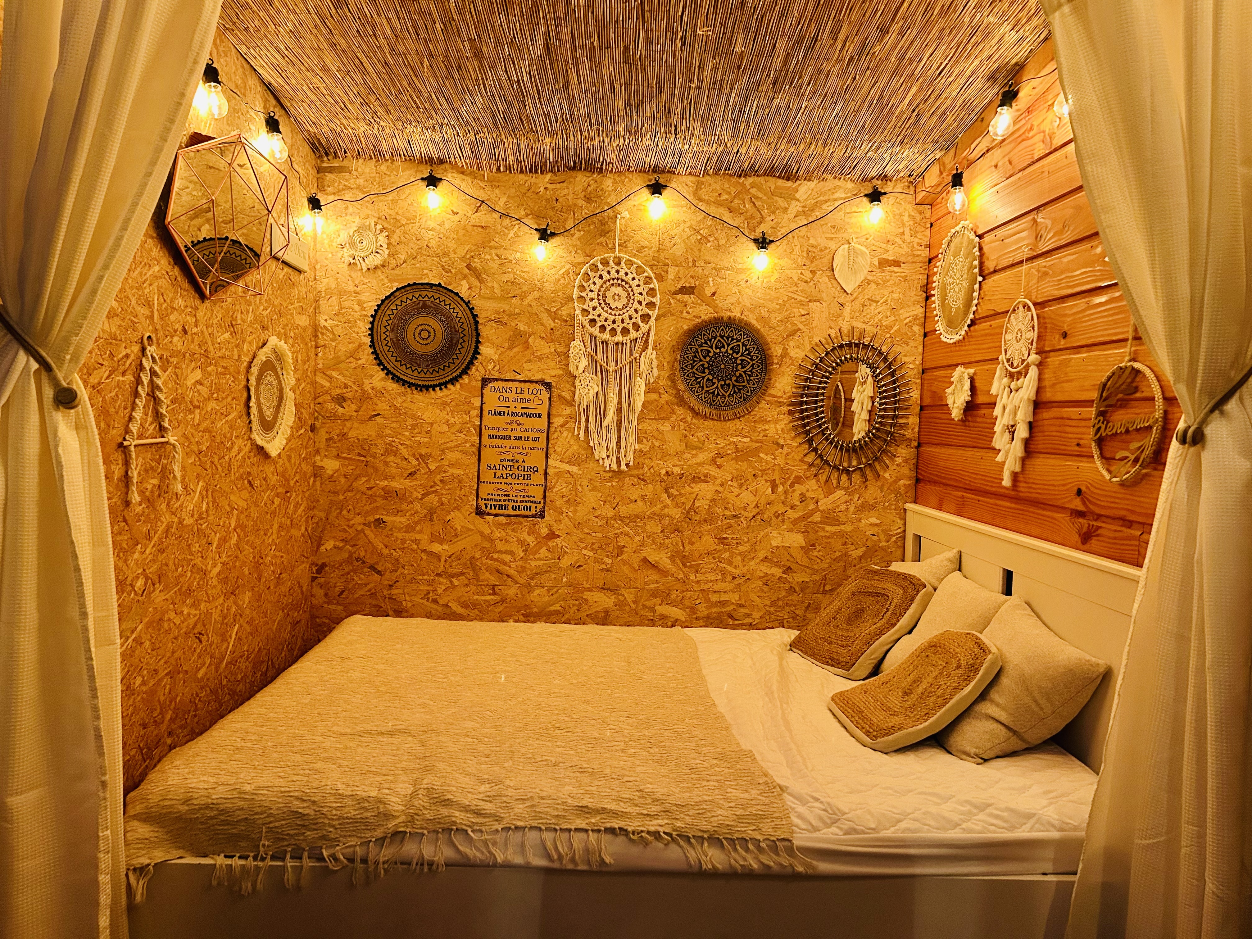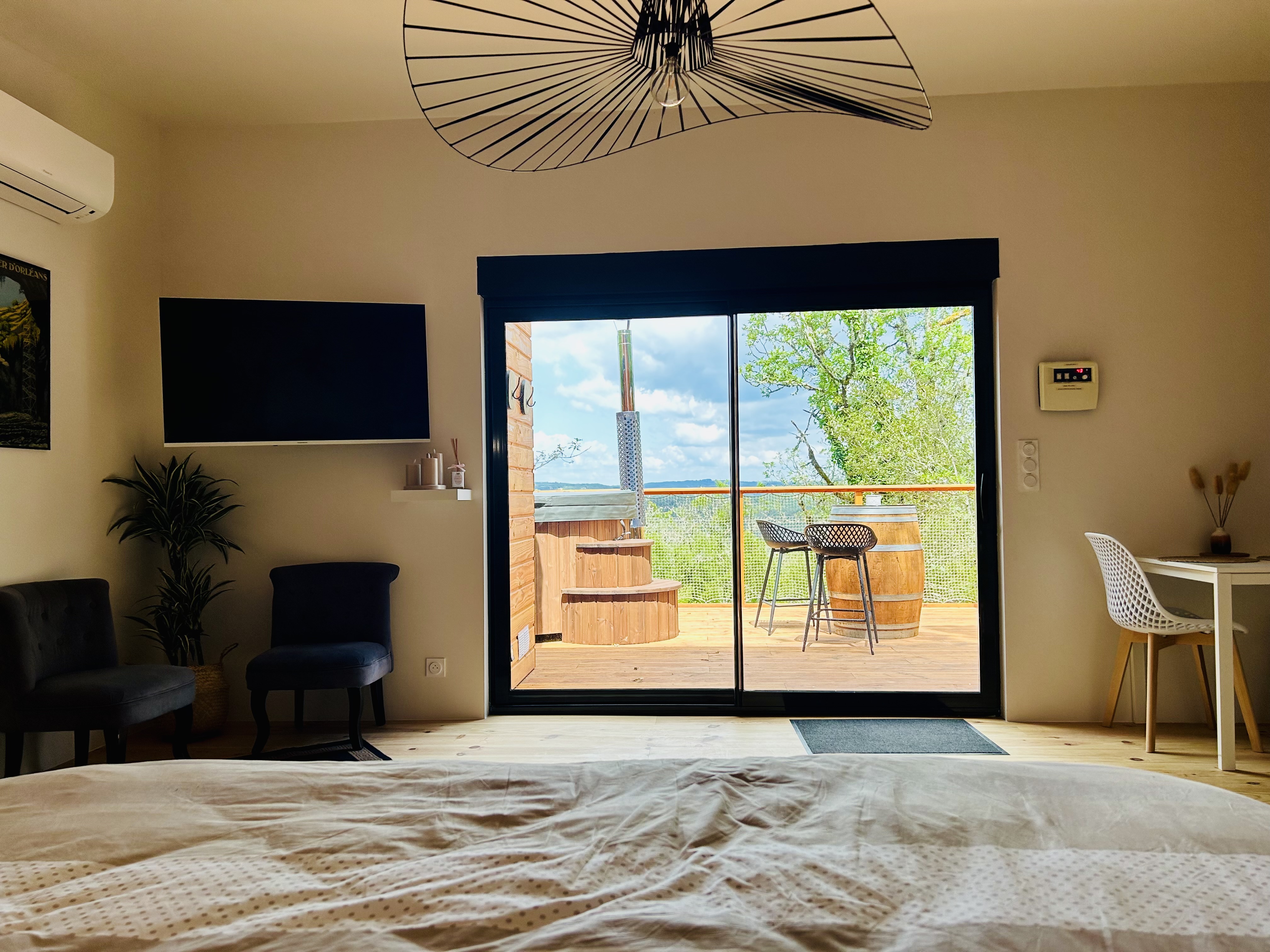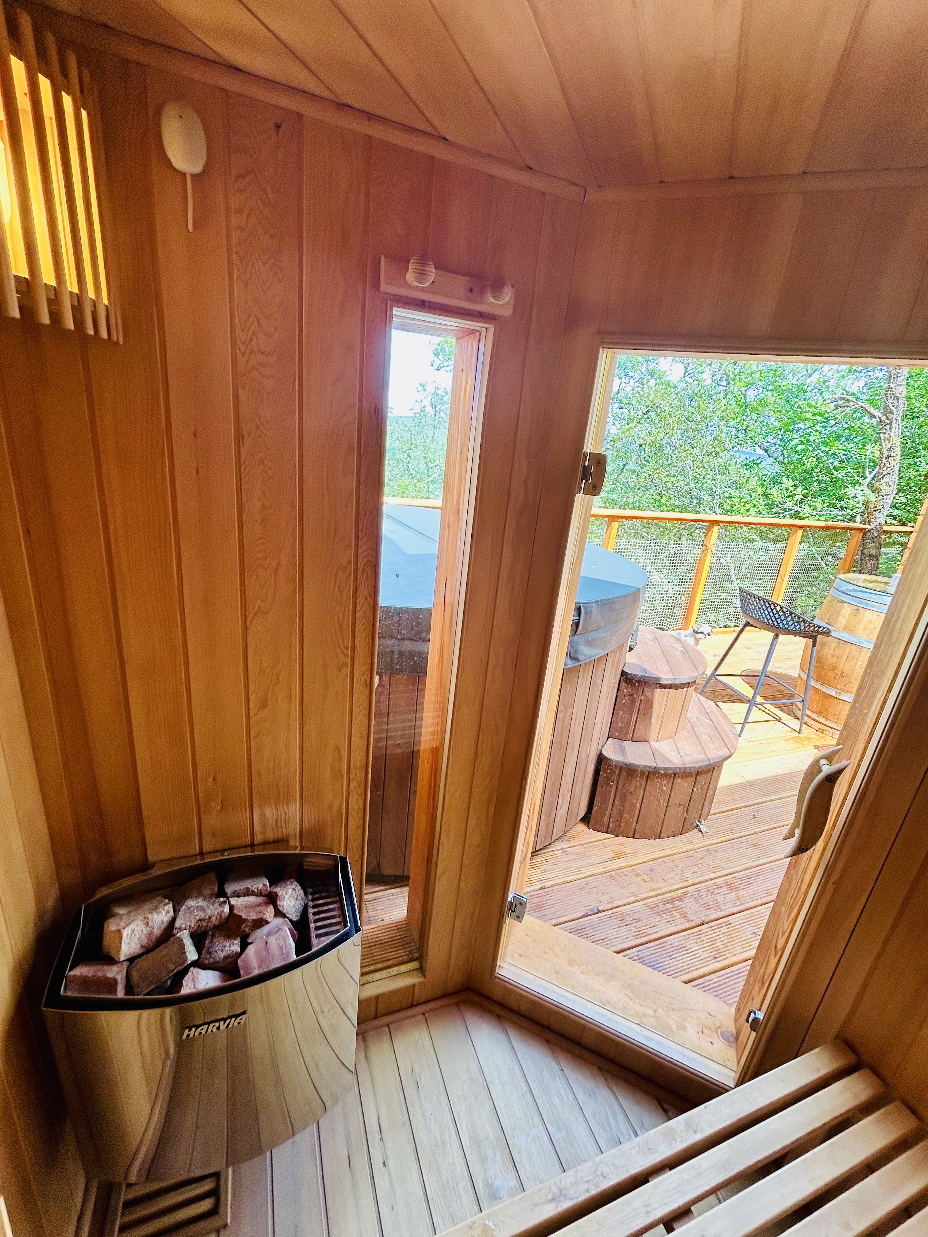 La Cabane du Prestadou – Bain nordique & Sauna Évadez-vous au Domaine du Prestadou et découvrez notre cabane d’exception, pensée pour conjuguer confort haut de gamme et communion avec la nature • Lit King Size 200 x 200 • Véritable Sauna traditionnel aux pierres chaudes • Bain nordique suédois, chauffé au feu de bois • Terrasse panoramique • Lit extérieur 160×200 • Superbe douche à l’italienne en marbre • Cuisine équipée • Tv écran plat • Climatisation réversible Apéritif et Petit déjeuner de bienvenue