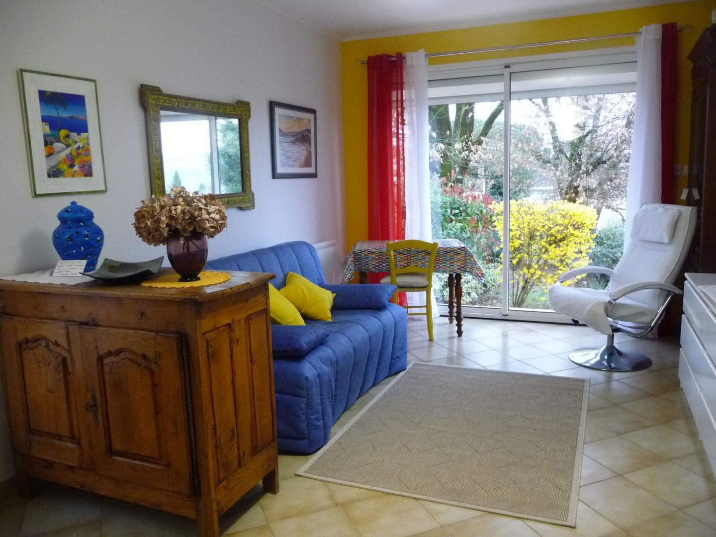 Une seule chambre d’hôtes, format studio, avec accès indépendant. Lit double 140x190cm, sanitaires privatifs. Coin salon, avec tv et canapé . Réfrigérateur top. Un sèche cheveux , et une bouilloire électrique A l’exterieur, un barnum équipé d’une table et chaises et un micro onde Grand jardin arboré, piscine (fond plat, profondeur 1,5m), dans un quartier calme à proximité du centre-bourg de Réalmont.