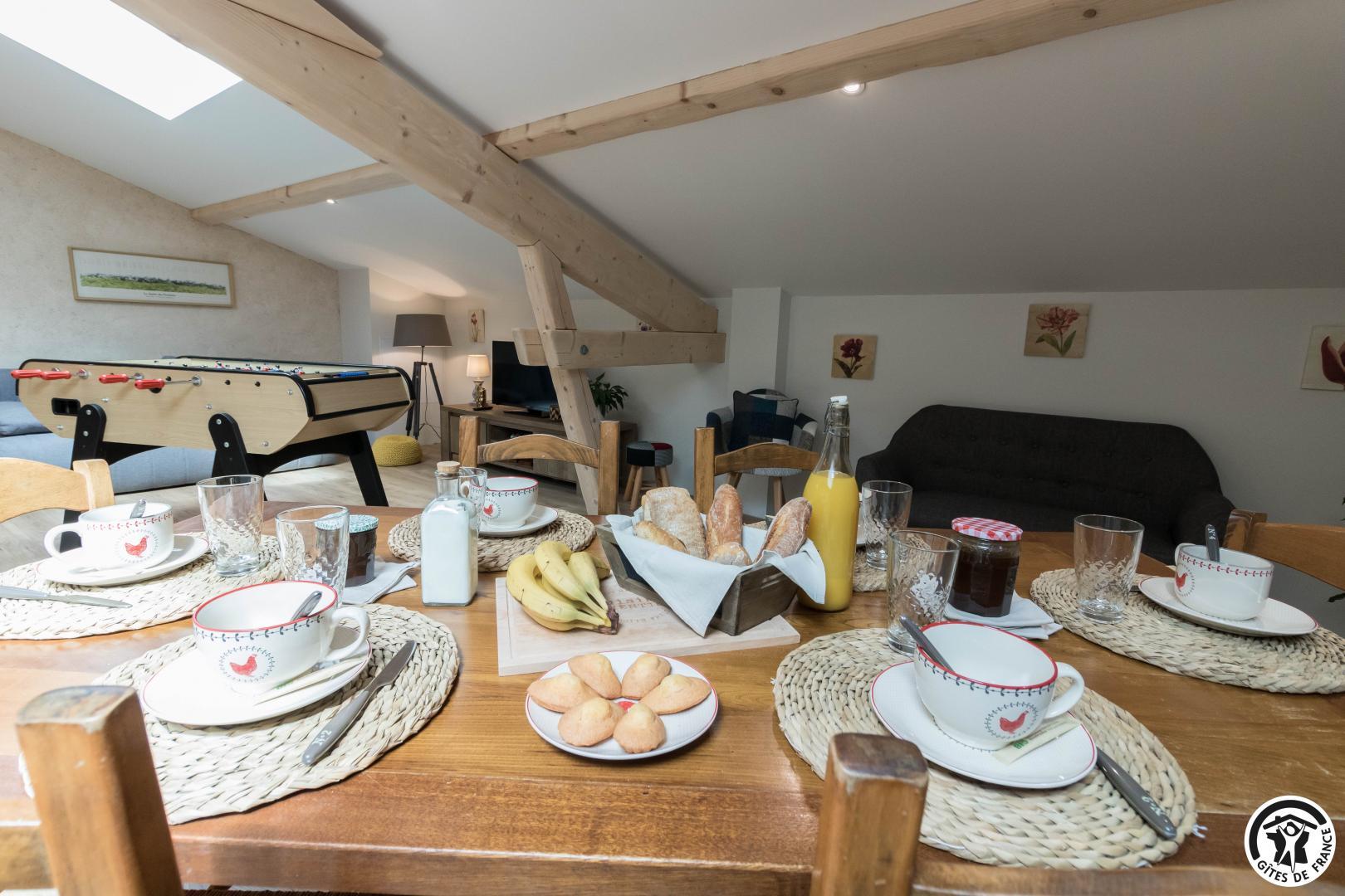 After a separate entrance, you have 2 bedrooms on the ground floor. Each has a 140*190cm double bed, a flat-screen TV, reversible air conditioning and a shower room/WC (one with a separate WC). Gourmet breakfasts are served upstairs, and you can even relax with a game of table football in the lounge area.
