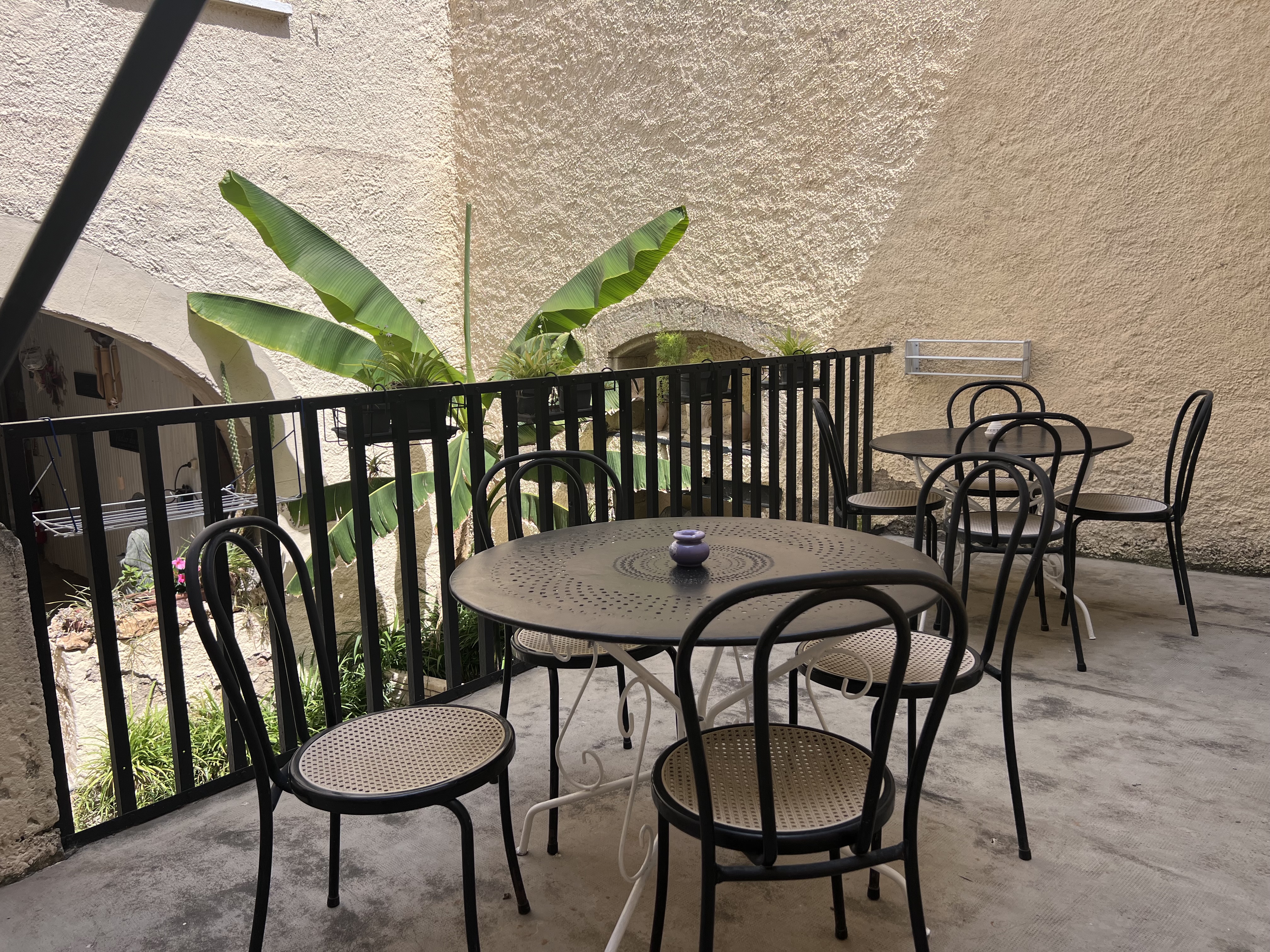 La camera LUNE DE MIEL, dal fascino antico, dispone di una zona pranzo sul balcone.
