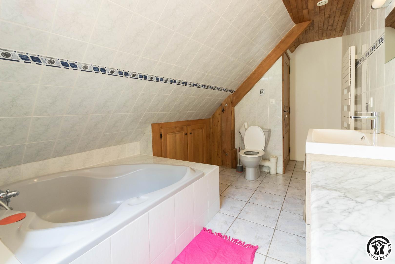 A pochi minuti da diverse stazioni sciistiche dei Pirenei (Bourg d’Oueil, Peyragudes e Superbagnères) nel dipartimento dell’Alta Garonna! Vacanze in montagna garantite, con attività quali slittino, sci di fondo, escursionismo, ciclismo, pesca, rafting, canyoning, parapendio e bagni termali (questi ultimi 4 a Bagnères-de-Luchon, a 6 km)! Una delle ultime case del borgo nella Vallée d’Oueil, questo gîte ha 15 posti letto, è molto tranquillo ed è il luogo perfetto per una vacanza in famiglia o con gli amici. Gîte con 6 camere e 9 posti letto: – Grande terrazza, giardino in comune con il proprietario (portico). – Piano terra della grande casa: soggiorno con angolo cottura, 1 camera da letto (1 letto matrimoniale 140 cm) con bagno con doccia, WC. – Primo piano: soggiorno con accesso all’esterno, 1 camera da letto (1 letto matrimoniale 140 cm) e 1 camera per bambini (6 letti singoli 80 cm), bagno con doccia/WC, WC separato. – Secondo piano sotto la grondaia: 3 camere da letto (2 letti singoli da 100 cm) (1 letto matrimoniale da 140 cm) (1 letto matrimoniale da 140 cm), bagno/WC. Riscaldamento centrale a gasolio. Lavatrice e asciugatrice in comune. TARIFFE 2023/2024 per 15 persone: escluse le vacanze scolastiche: fine settimana 530 €, settimana 821 € – vacanze di primavera e Ognissanti: 870? a settimana – Vacanze estive: 1300? a settimana – Vacanze invernali: 1350? e vacanze di Natale e Capodanno: 1899? a settimana. I prezzi variano a seconda del numero di persone! Possibilità di affittare il gîte per 17 persone con una dependance per 2 persone accanto, chiedere i prezzi al proprietario. Sala relax opzionale: 100 € a weekend e 150 € a settimana. Traduction automatique par DeepL via DATAtourisme