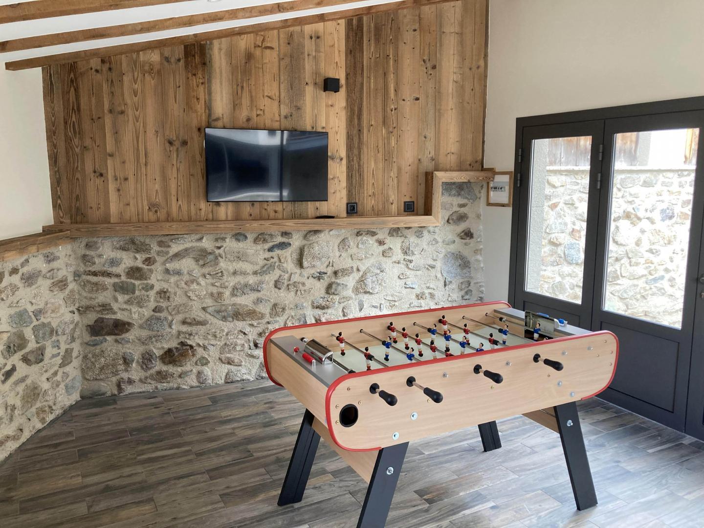 Au cœur du village des Angles, équipé de toutes commodités et commerces, navette pour la station de ski, Angléo (espace balnéo), cette ancienne ferme de montagne, entièrement rénovée et décorée avec goût, combinant charme rustique et confort moderne abrite deux gîtes, et est aménagée à proximité de l’église, dont le doux carillon des cloches, rythme paisiblement la vie du village, jour et nuit. Salle de jeux commune avec baby-foot, jeux de fléchettes, téléviseur, et possibilité d’y stocker vos VTT. Casiers à ski sont à votre disposition. Grand hall d’entrée commun : Sèche chaussures de ski Buanderie commune équipée de deux lave-linges et deux sèche-linges Espace bien être avec un spa pour 6 personnes, un hamman, une salle d’eau, wc. Afin de profiter au mieux de cet espace, les propriétaires mettent à votre disposition des consignes à suivre et des créneaux horaires pour vous inscrire. Cour close commune, avec barbecue et plancha, pouvant accueillir 3 véhicules. Parkings comm