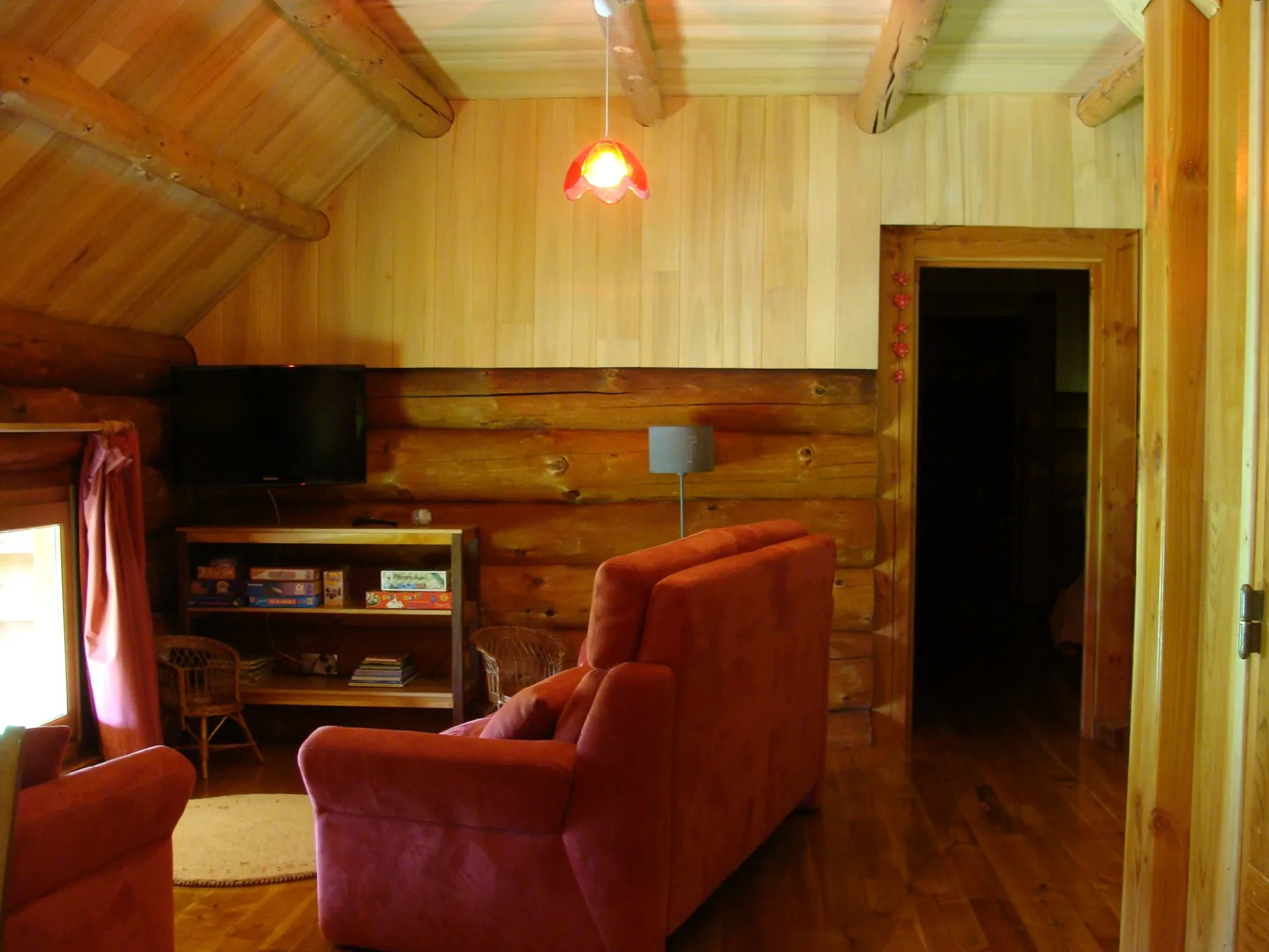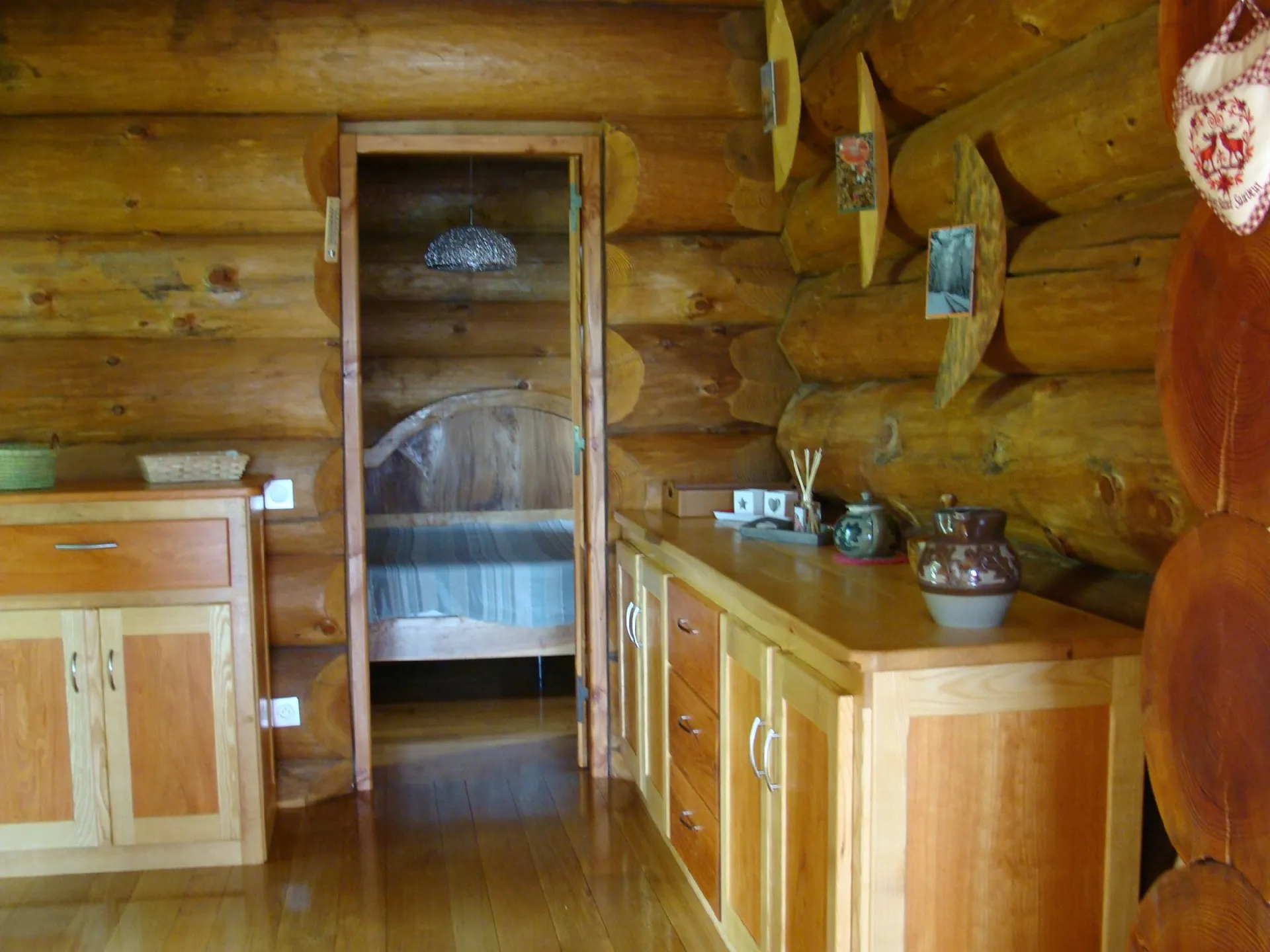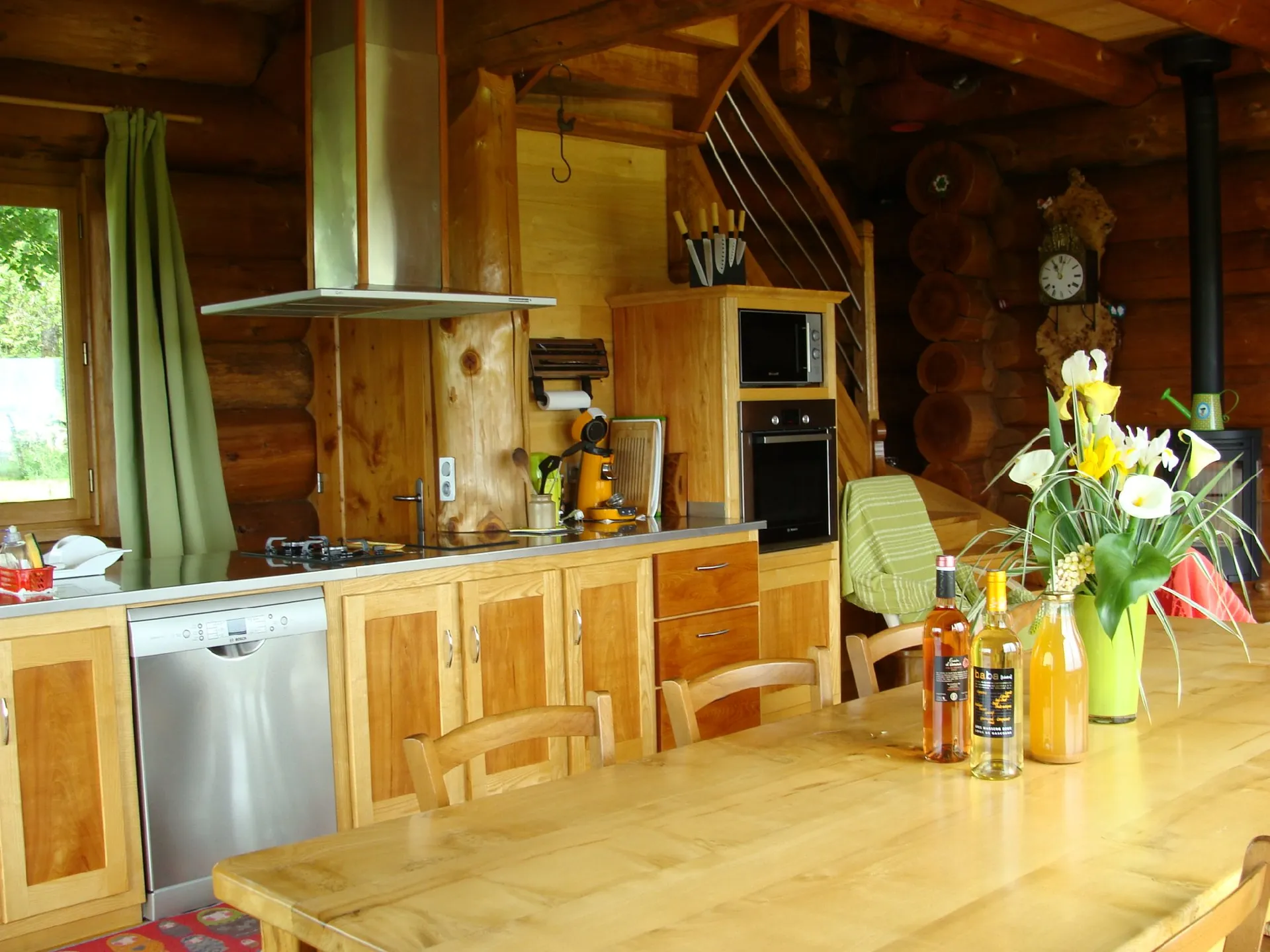 Maison chaleureuse entièrement en bois (fuste) située à la campagne ; à l’intérieur vous disposerez de grands espaces.
