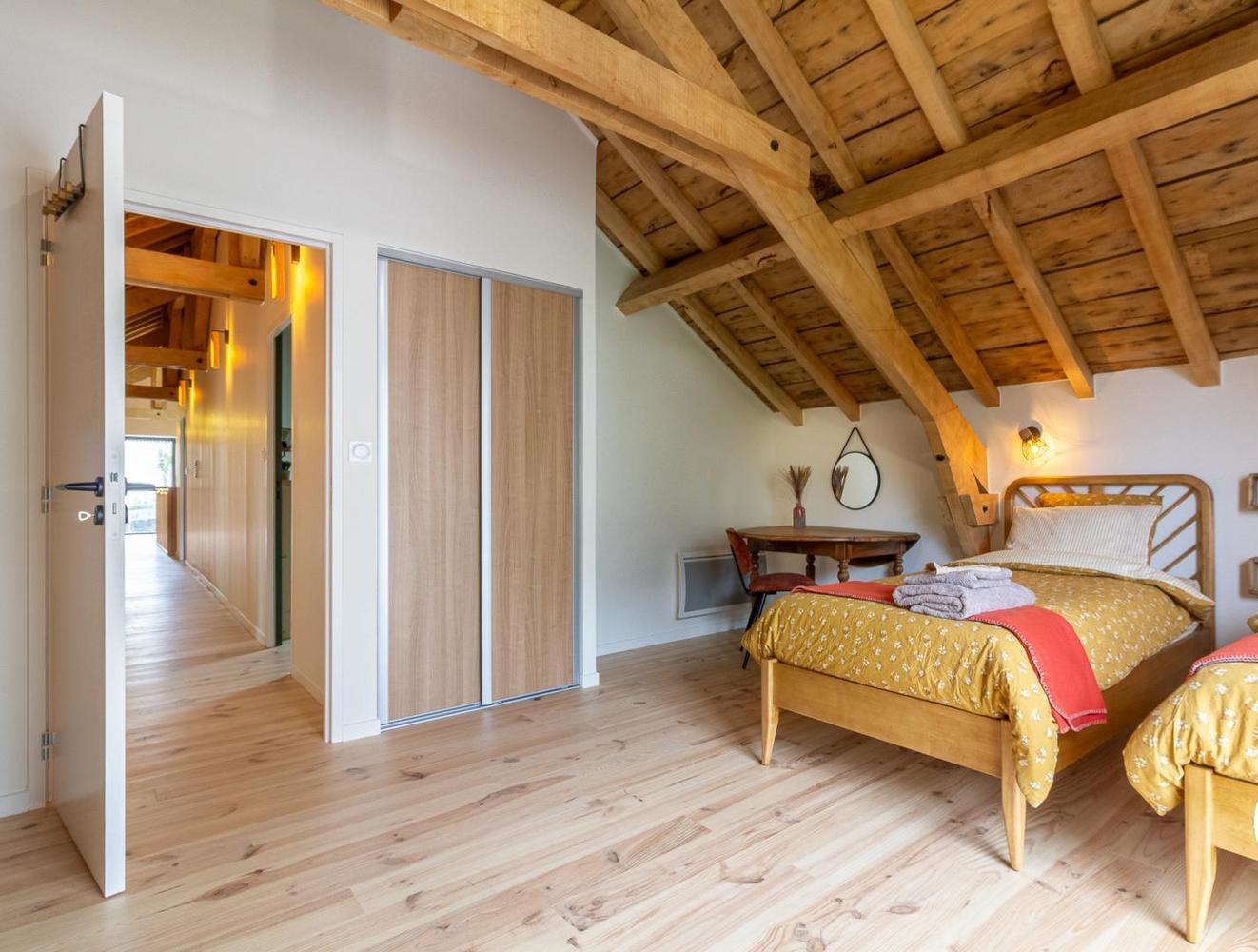 Cuisine ouverte sur séjour, trois chambres doubles (avec lits séparables en deux lits simples sur demande), un dortoir avec 4 lits simples 2 salles de bain,2 WC indépendants. Local skis et vélos. Linge de lit et de toilette fourni, lits faits, Poêle à granulés. Ancienne dépendance de la maison principale des propriétaires également éleveurs sont juste à côté. N’hésitez pas à demander conseil