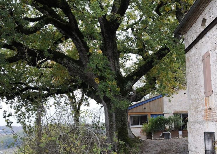 A l’ombre d’un magnifique chêne choisissez cette grande grange restaurée avec une piscine hors sol et un point de vue exceptionnel.