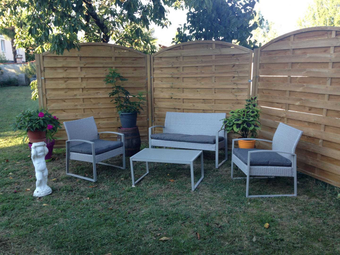 Au premier niveau : salon (2 canapés trois places dont 1 convertible, deux fauteuils, tv + internet), salle à manger lumineuse, cuisine toute équipée par laquelle on accède sur une terrasse et au jardin, salle d’eau, wc séparé.