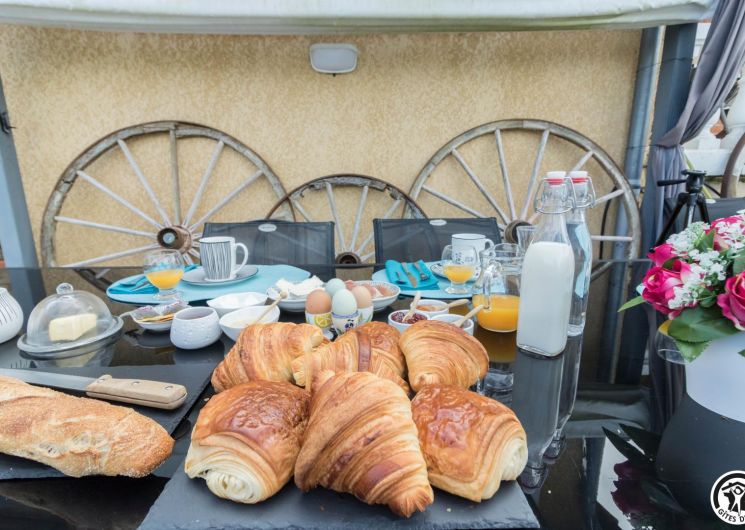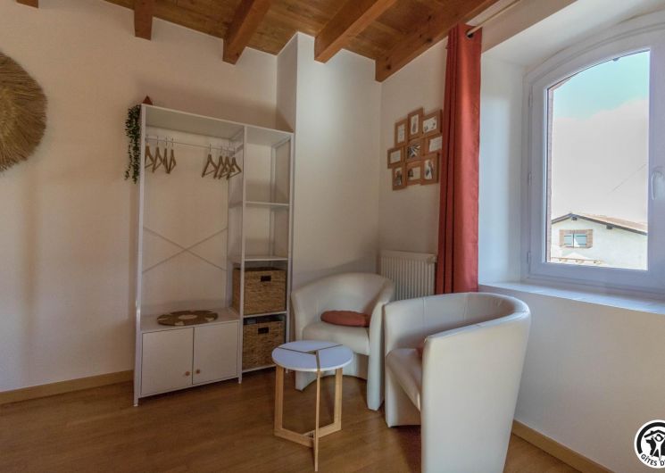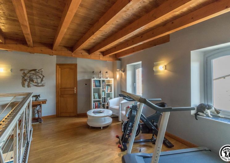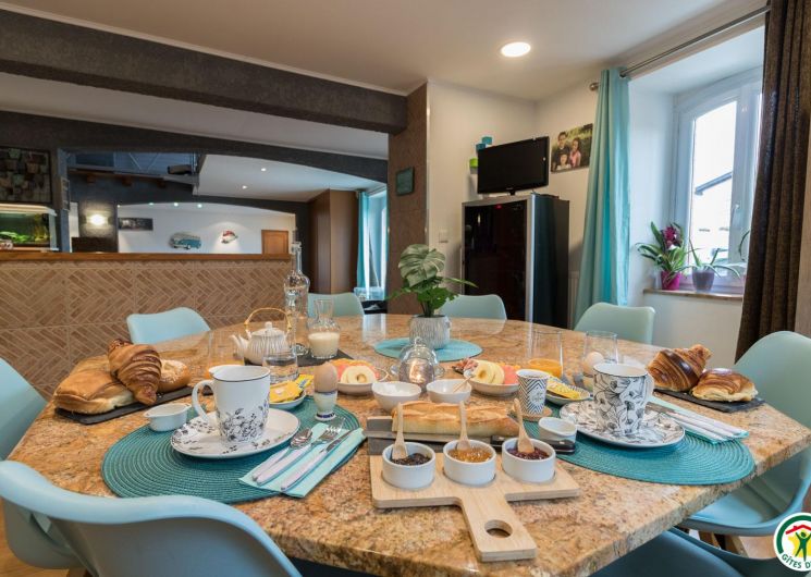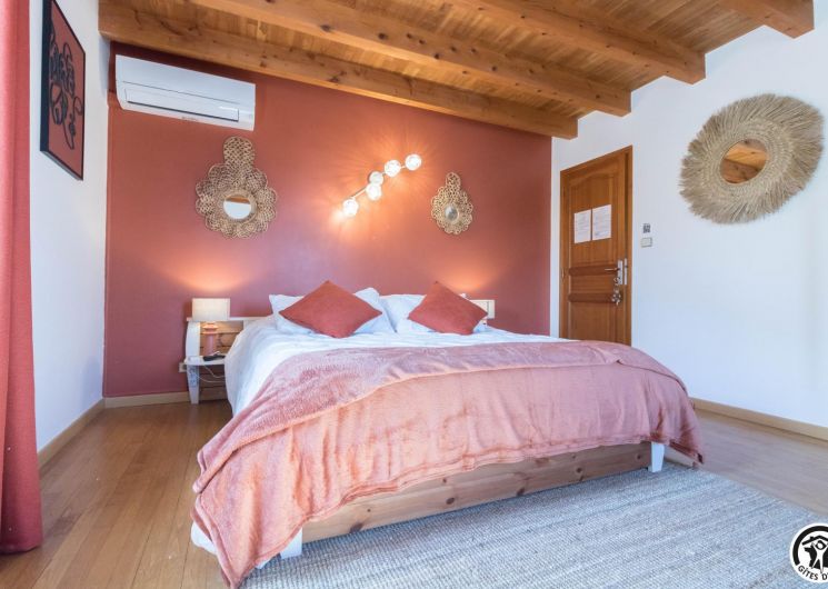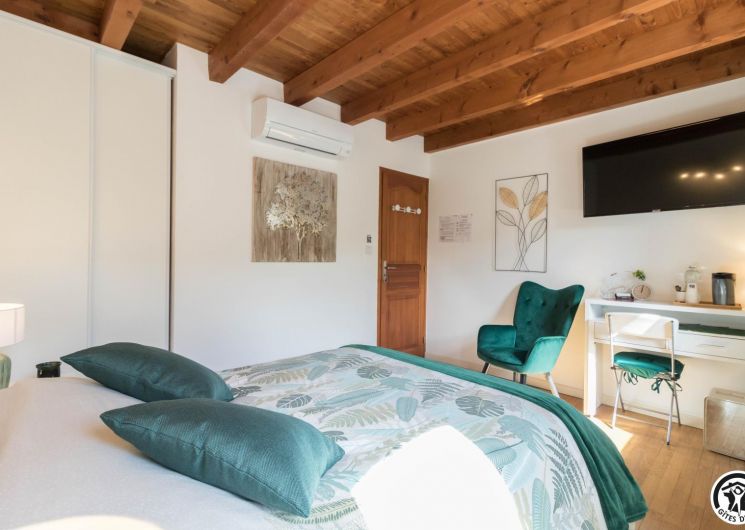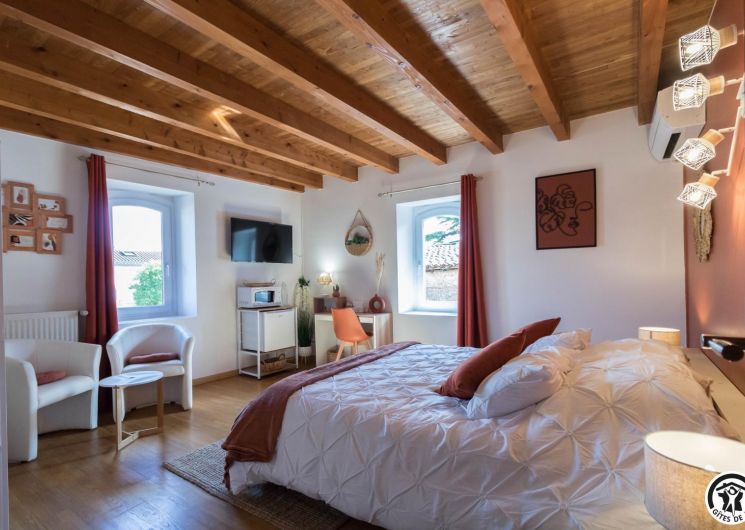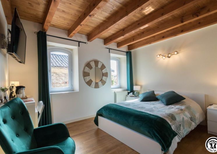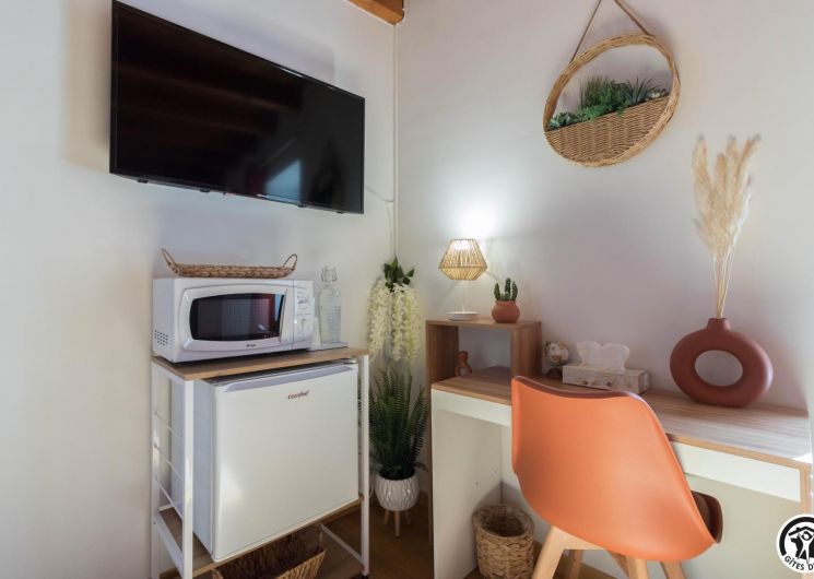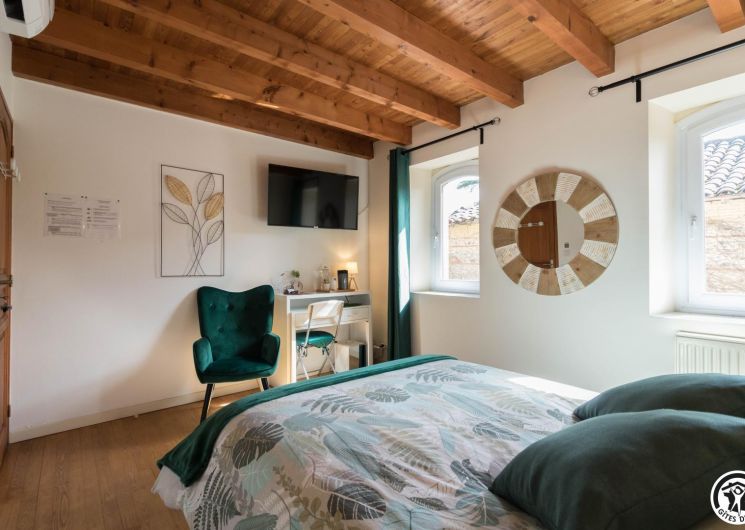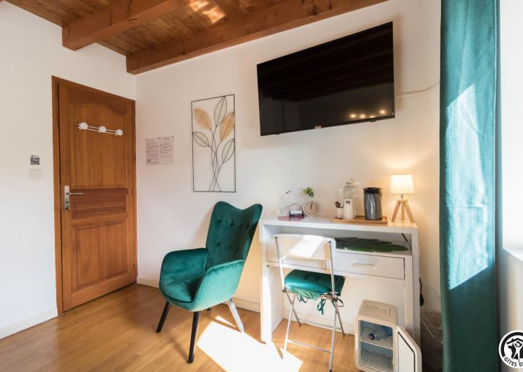 La nostra camera per gli ospiti, situata al primo piano, vi offre uno spazio di comfort e tranquillità. La camera è dotata di un letto matrimoniale di 140*200 cm, di una TV a schermo piatto di 110 cm, di una scrivania funzionale, di aria condizionata e di un armadio adatto alle vostre esigenze. In camera è disponibile un vassoio di cortesia. Il bagno privato è dotato di cabina doccia, due lavabi, portasciugamani, asciugacapelli e piastra per capelli per garantire una preparazione senza problemi. Per iniziare bene la giornata, nella sala da pranzo vi attende una squisita colazione preparata dalla nostra padrona di casa Léontina. Potrete gustare un assortimento di bevande calde, succo d’arancia appena spremuto, dolci freschi, pane, marmellate fatte in casa, uova fresche, macedonia di frutta fresca, salumi e formaggi, tra le altre delizie. Per i vostri momenti di relax, offriamo una piccola sala privata al primo piano e un’area conviviale al piano terra dove potrete gustare un drink di benvenuto al bar. Il jukebox, il tavolo da biliardo e l’area giochi sono a vostra disposizione, in conformità con il nostro regolamento interno. All’esterno, potrete parcheggiare l’auto nel cortile custodito, godervi la piccola terrazza all’ingresso della casa e rilassarvi nel nostro ampio giardino recintato con piscina (condivisa con i proprietari), un salotto e un’area per le bocce. Inoltre, la nostra spa privata di alta qualità, situata in una stanza separata, vi permetterà di rilassarvi completamente dopo una giornata intensa. Scoprite i nostri affascinanti animali residenti nel giardino: cani, gatti, capre, galline, conigli nani e api, che aggiungono un tocco pittoresco al vostro soggiorno. Saremo lieti di accogliervi con un drink di benvenuto e di offrirvi un’esperienza di lavoro unica e piacevole, che unisce comfort, relax ed eleganza. Traduction automatique par DeepL via DATAtourisme