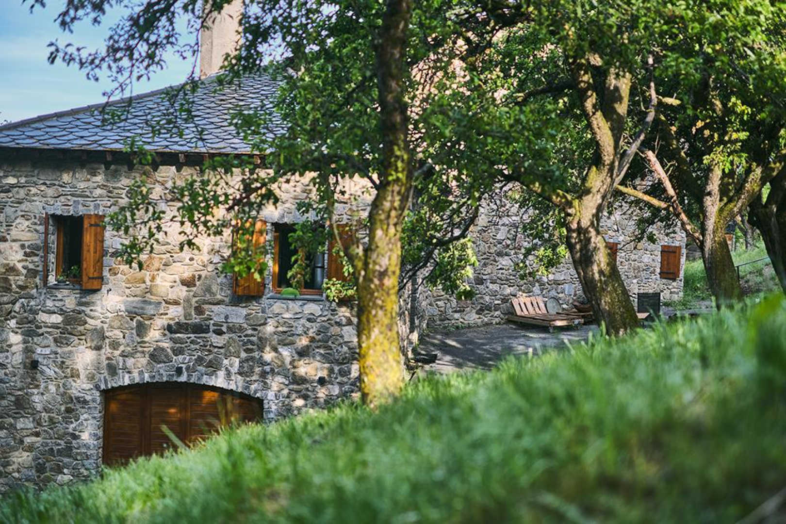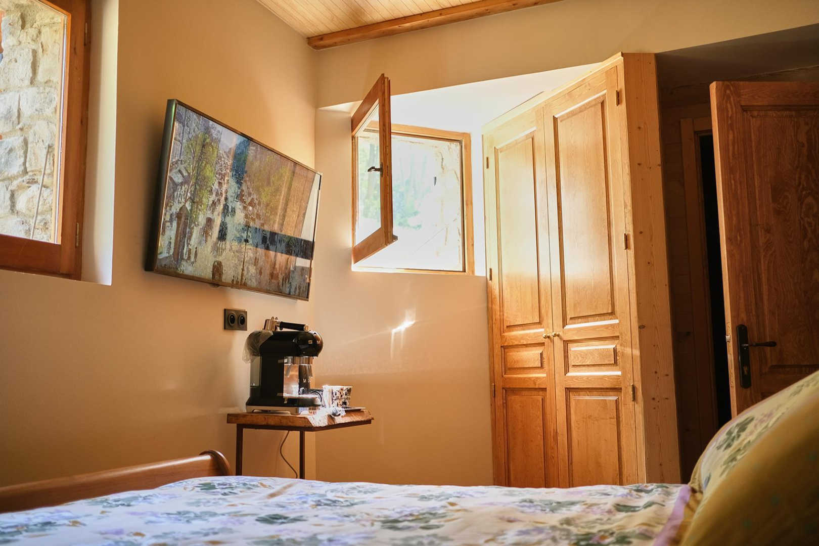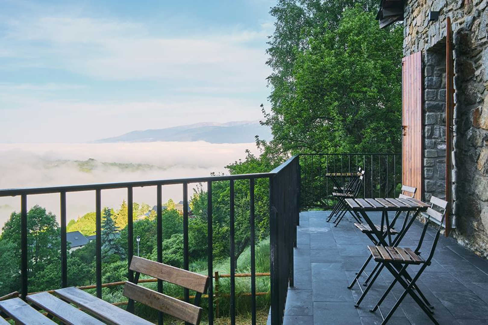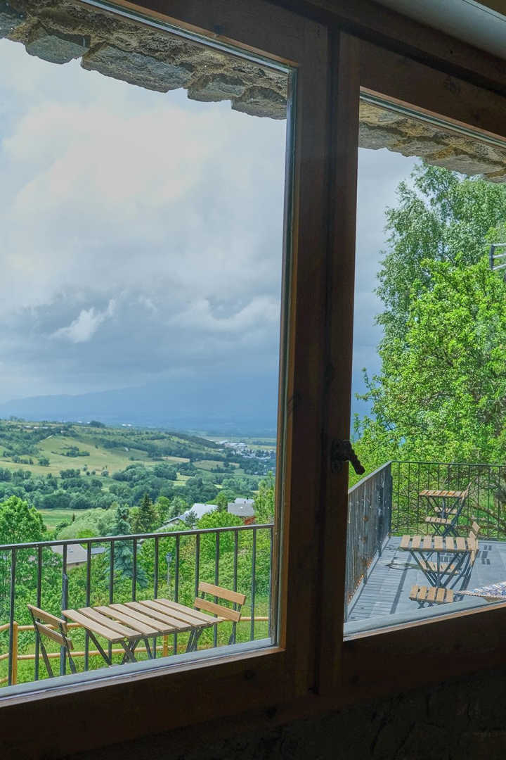 On the outskirts of the village of Llo, with uninterrupted views of the valley and mountains, this large, beautiful, fully renovated 570 m² building has 5 guest rooms, each equipped with a TV, tea and coffee making facilities and opening onto its own private terrace, as well as a shower room and toilet. Four of these guest rooms sleep 2 people and one sleeps 4. In the large living room with its open fireplace, you can enjoy your meal at the table d’hôtes, which can be booked in advance, prepared by Miguel and Toni, well-known names in Barcelona for their top-quality cuisine. From the very start of the day, you’ll be able to enjoy the surroundings, with your breakfast prepared with care by Miguel. Four of the five bedrooms have independent entrances. From the 140 m² of unenclosed grounds, you can relax and admire the views of the valley and surrounding mountains. Private parking on site. Table d’hôtes: €35/person by prior arrangement.