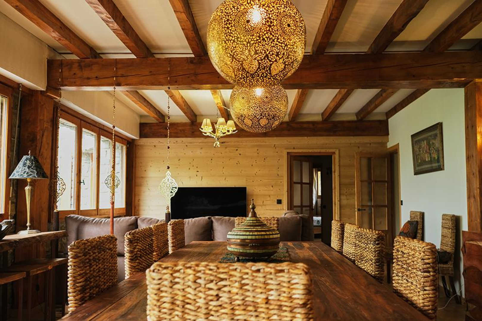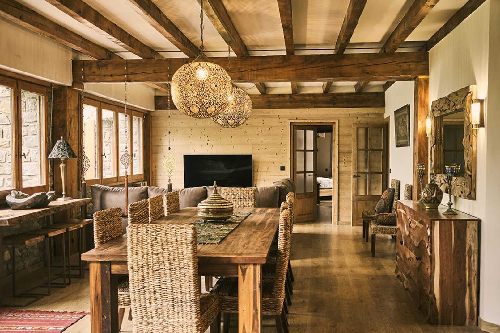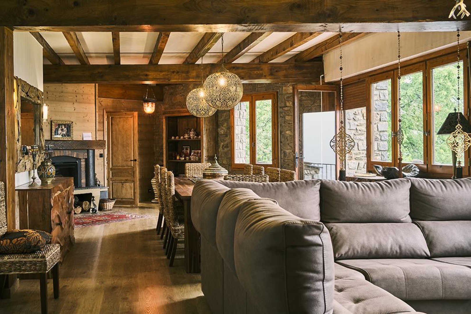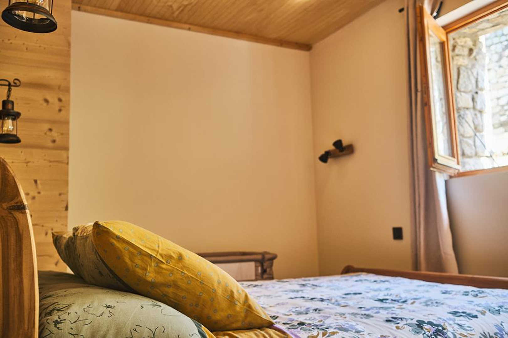 On the outskirts of the village of Llo, with uninterrupted views of the valley and mountains, this large, beautiful, fully renovated 570 m² building has 5 guest rooms, each equipped with a TV, tea and coffee making facilities and opening onto its own private terrace, as well as a shower room and toilet. Four of these guest rooms sleep 2 people and one sleeps 4. In the large living room with its open fireplace, you can enjoy your meal at the table d’hôtes, which can be booked in advance, prepared by Miguel and Toni, well-known names in Barcelona for their top-quality cuisine. From the very start of the day, you’ll be able to enjoy the surroundings, with your breakfast prepared with care by Miguel. Four of the five bedrooms have independent entrances. From the 140 m² of unenclosed grounds, you can relax and admire the views of the valley and surrounding mountains. Private parking on site. Table d’hôtes: €35/person by prior arrangement.