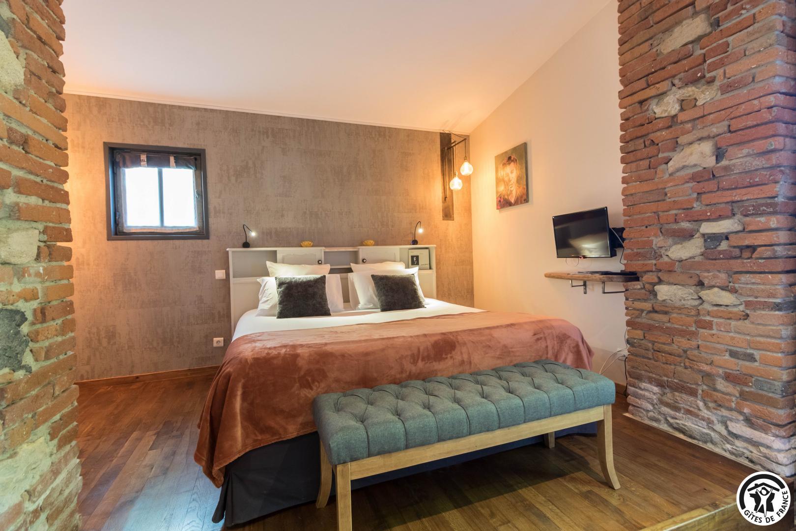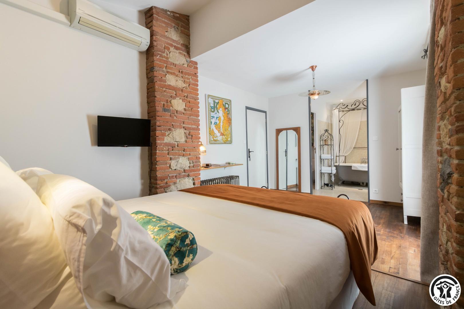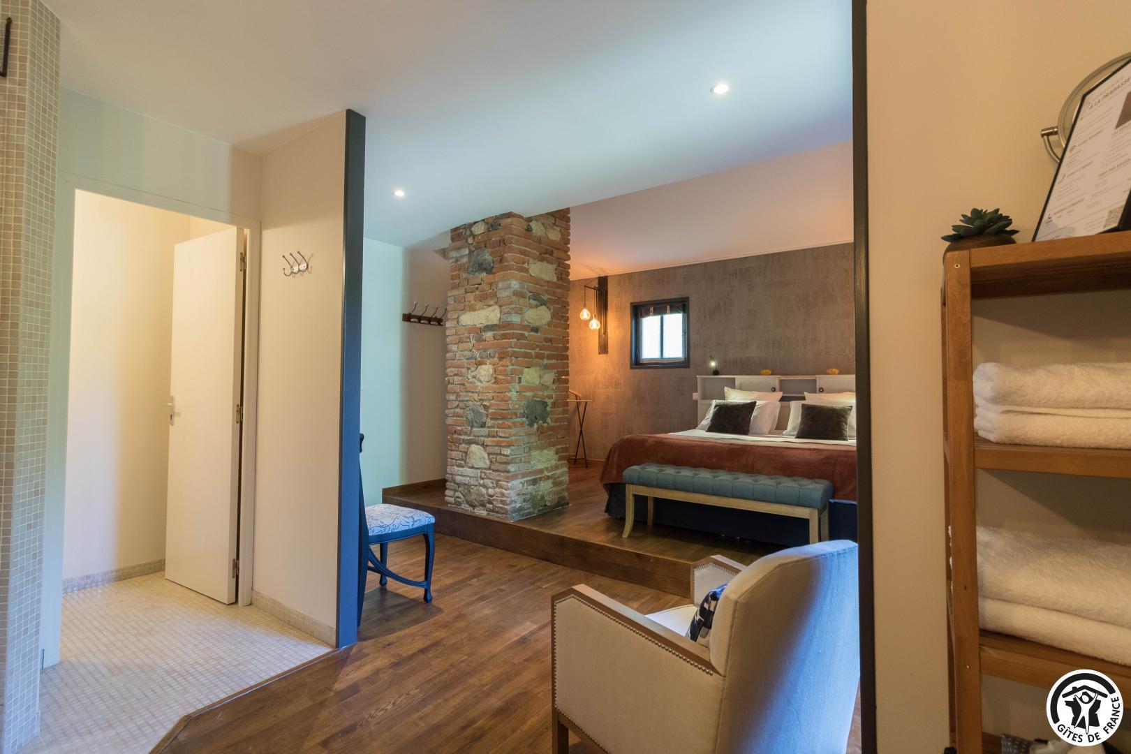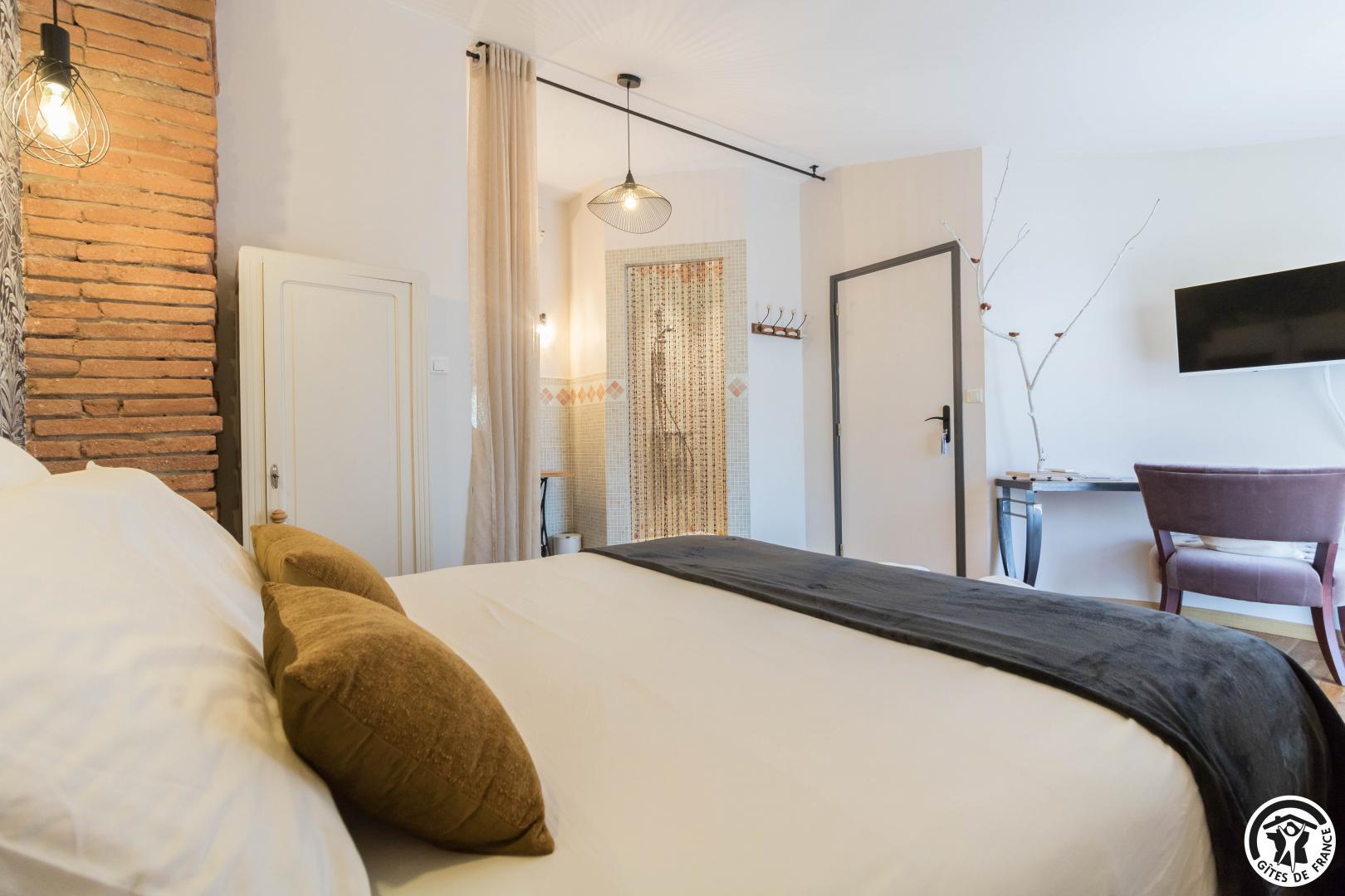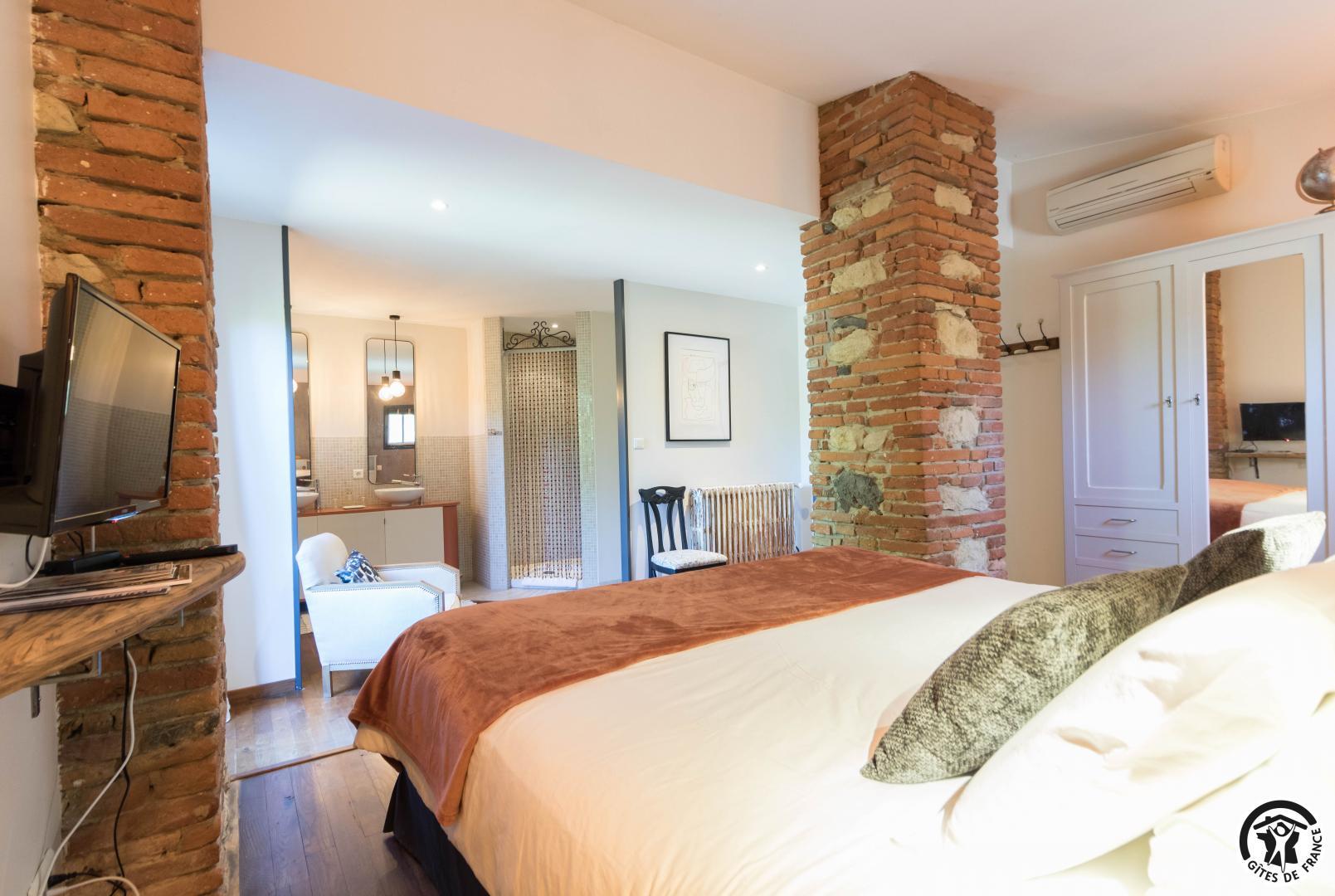 With its reminders of red brick and exposed beams, and paintings by the owner, this large, typical Lauragais residence combines authenticity with top-of-the-range comfort. Each double room is an invitation to travel, to discover the arts and the senses. A generous, gourmet home-cooked breakfast is served every morning, using tasty local produce. An elegant swimming pool awaits you in fine weather, while the pétanque court invites you to relax and enjoy the company of friends. Everything you need for an unforgettable stay, between Toulouse and the Cathar country.