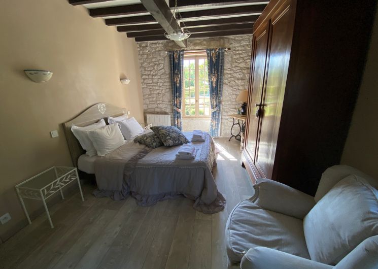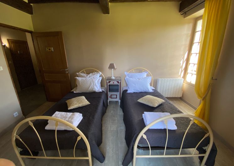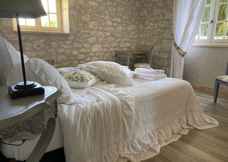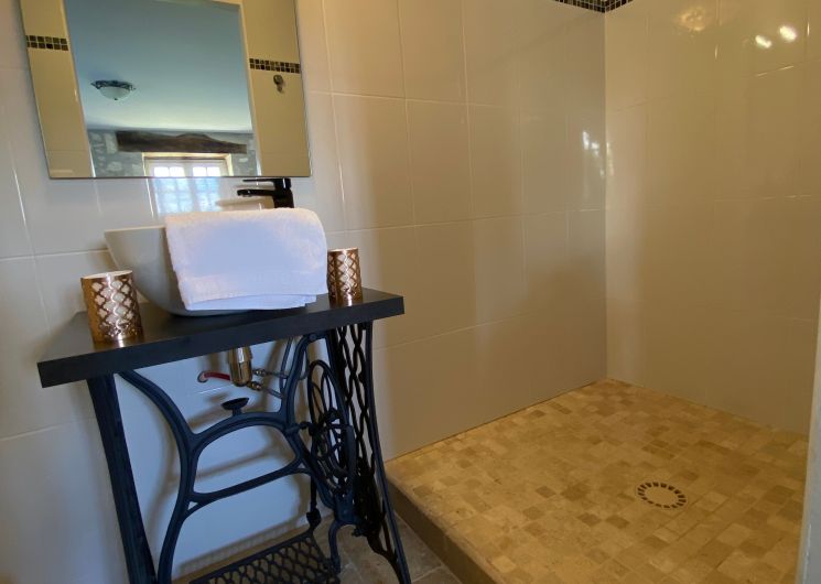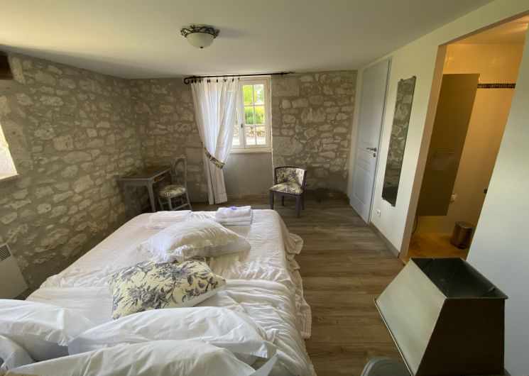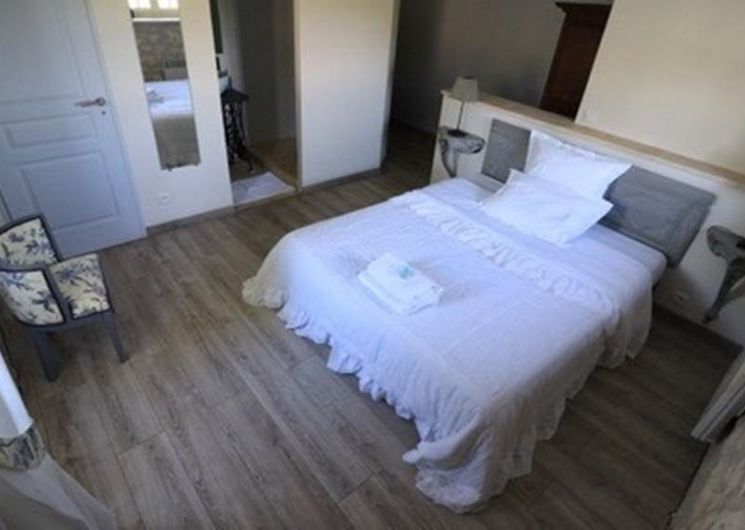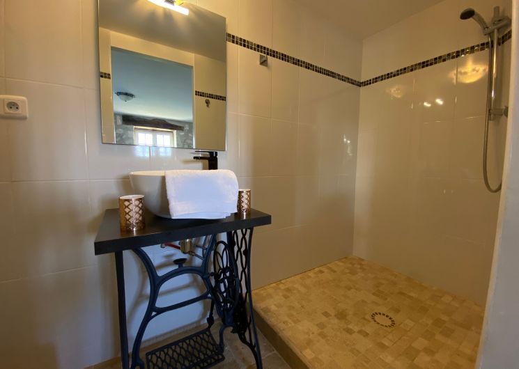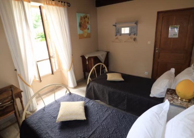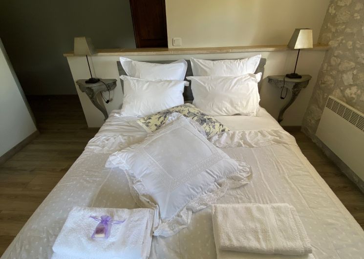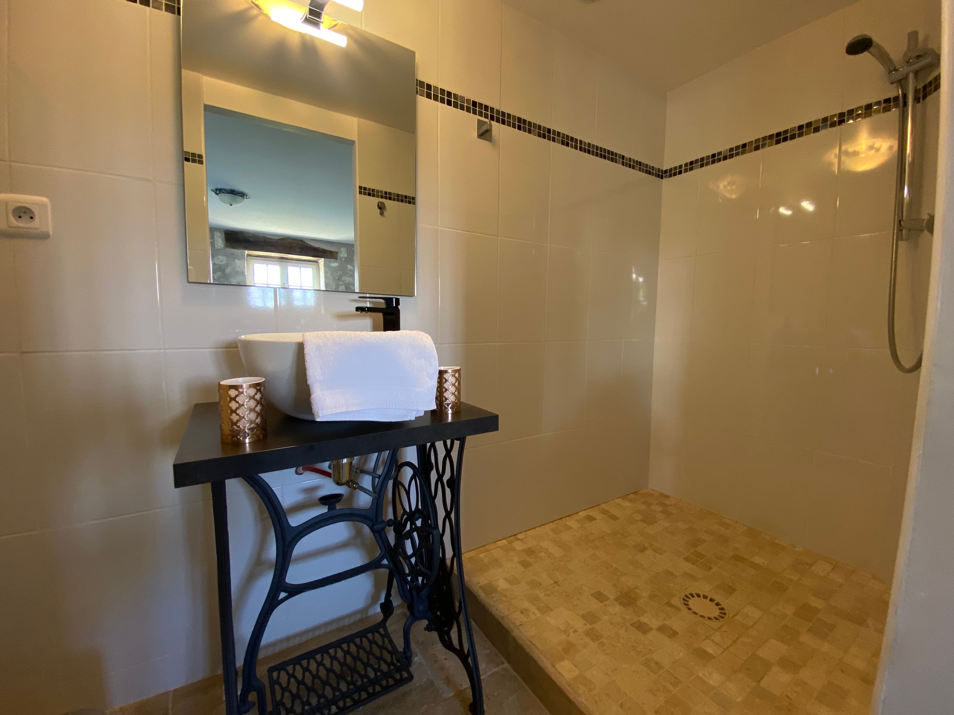 Independent access from outside for the two bedrooms: For the Tournesol family room, on the 1st floor, access via an outside staircase: the Tournesol family room comprises 2 bedrooms: the Iris bedroom (1 x 160cm bed), the Tournesol bedroom (2 x 90cm beds), 1 shower room (walk-in shower, washbasin) 1 separate toilet. Private access corridor. The second Lavande bedroom is on the ground floor, also with direct access. It comprises an entrance hall, bedroom with 1 x 160cm bed, open-plan shower room with walk-in shower and washbasin. Separate WC. Courtesy tray and small fridge in each room. Wifi internet access. Electric heating. Unenclosed grounds (4000 m2). Price includes tourist tax. Shared fenced swimming pool with safety gate (11 x 6 with diving pit at 2.20 m). Parking on the property.