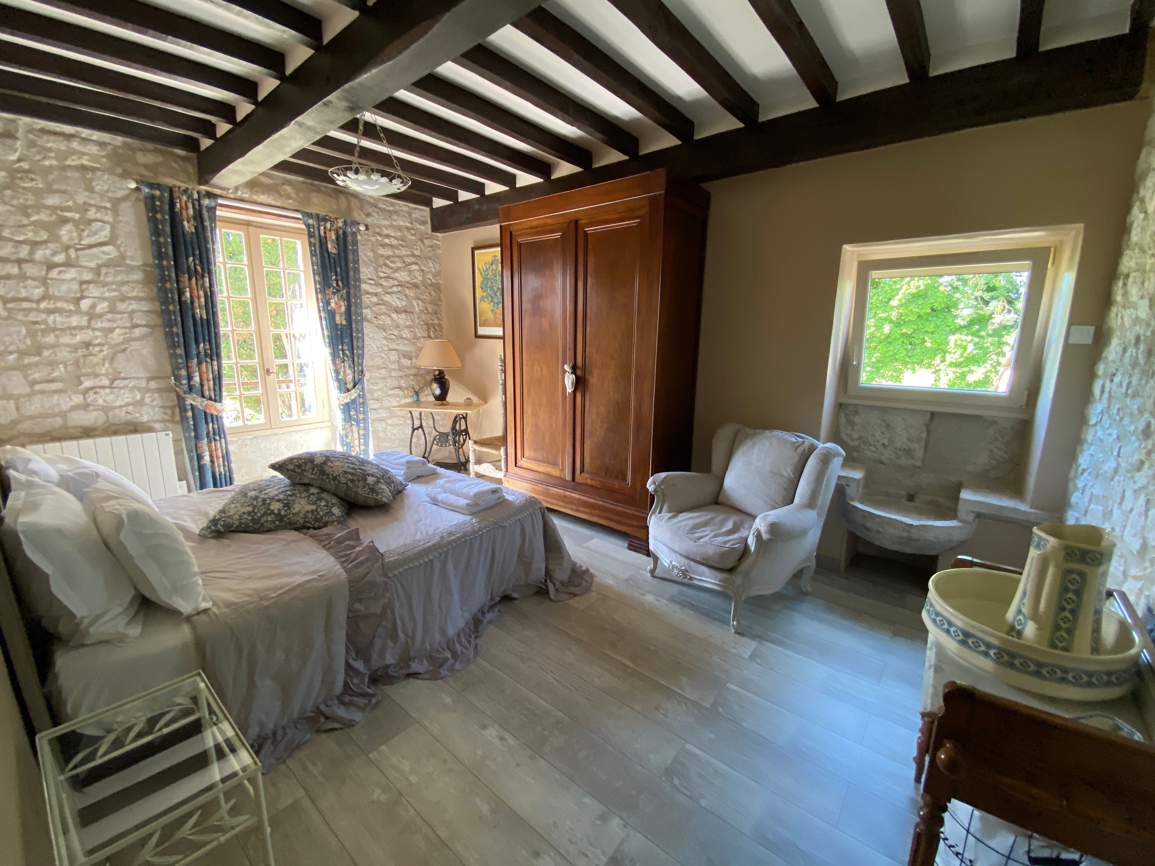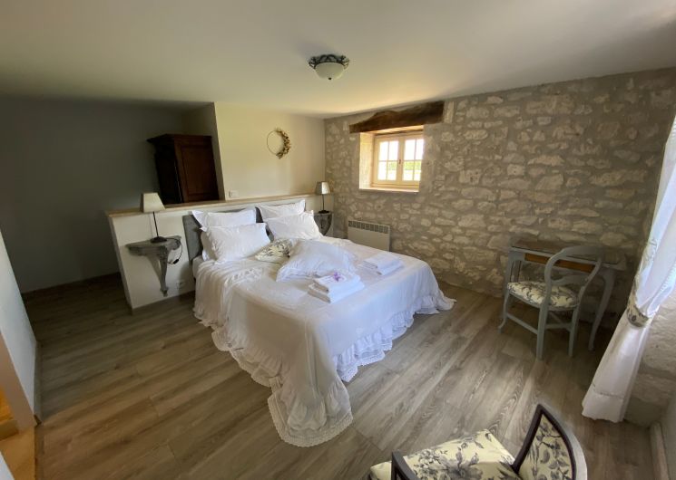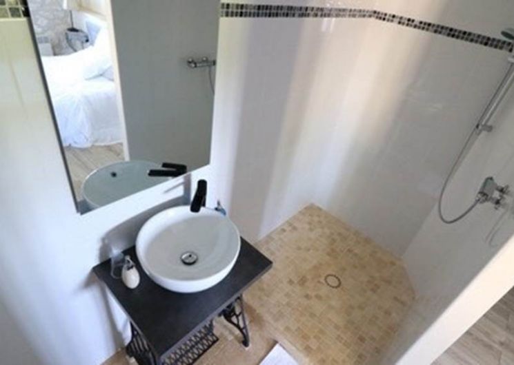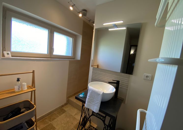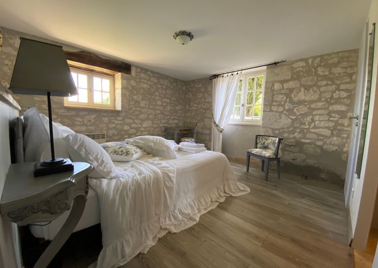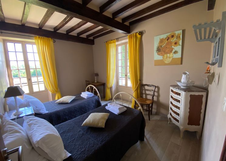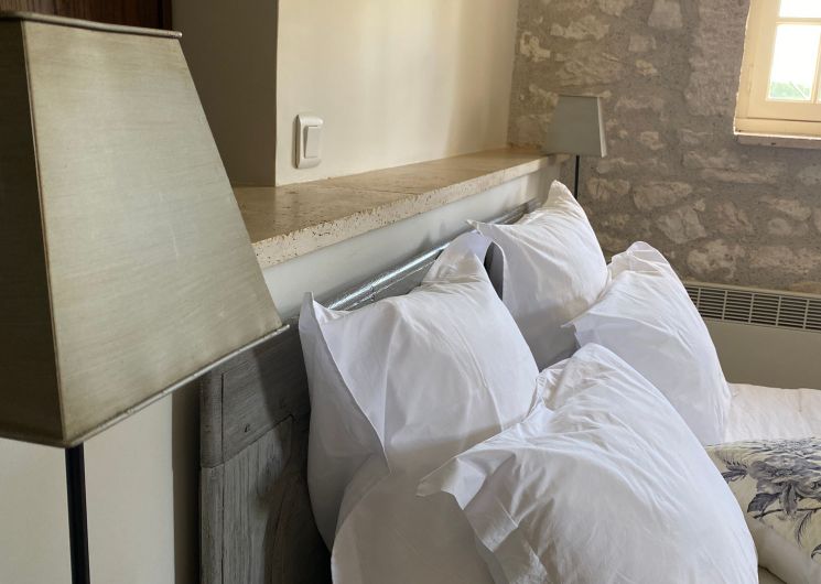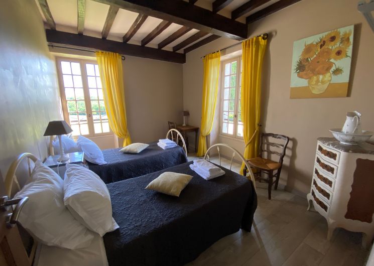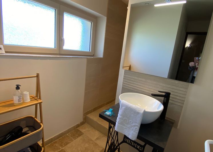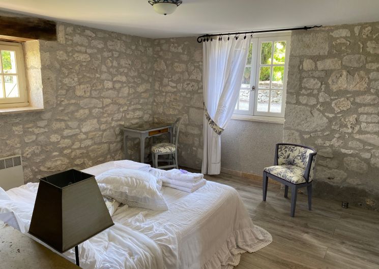 Independent access from outside for the two bedrooms: For the Tournesol family room, on the 1st floor, access via an outside staircase: the Tournesol family room comprises 2 bedrooms: the Iris bedroom (1 x 160cm bed), the Tournesol bedroom (2 x 90cm beds), 1 shower room (walk-in shower, washbasin) 1 separate toilet. Private access corridor. The second Lavande bedroom is on the ground floor, also with direct access. It comprises an entrance hall, bedroom with 1 x 160cm bed, open-plan shower room with walk-in shower and washbasin. Separate WC. Courtesy tray and small fridge in each room. Wifi internet access. Electric heating. Unenclosed grounds (4000 m2). Price includes tourist tax. Shared fenced swimming pool with safety gate (11 x 6 with diving pit at 2.20 m). Parking on the property.