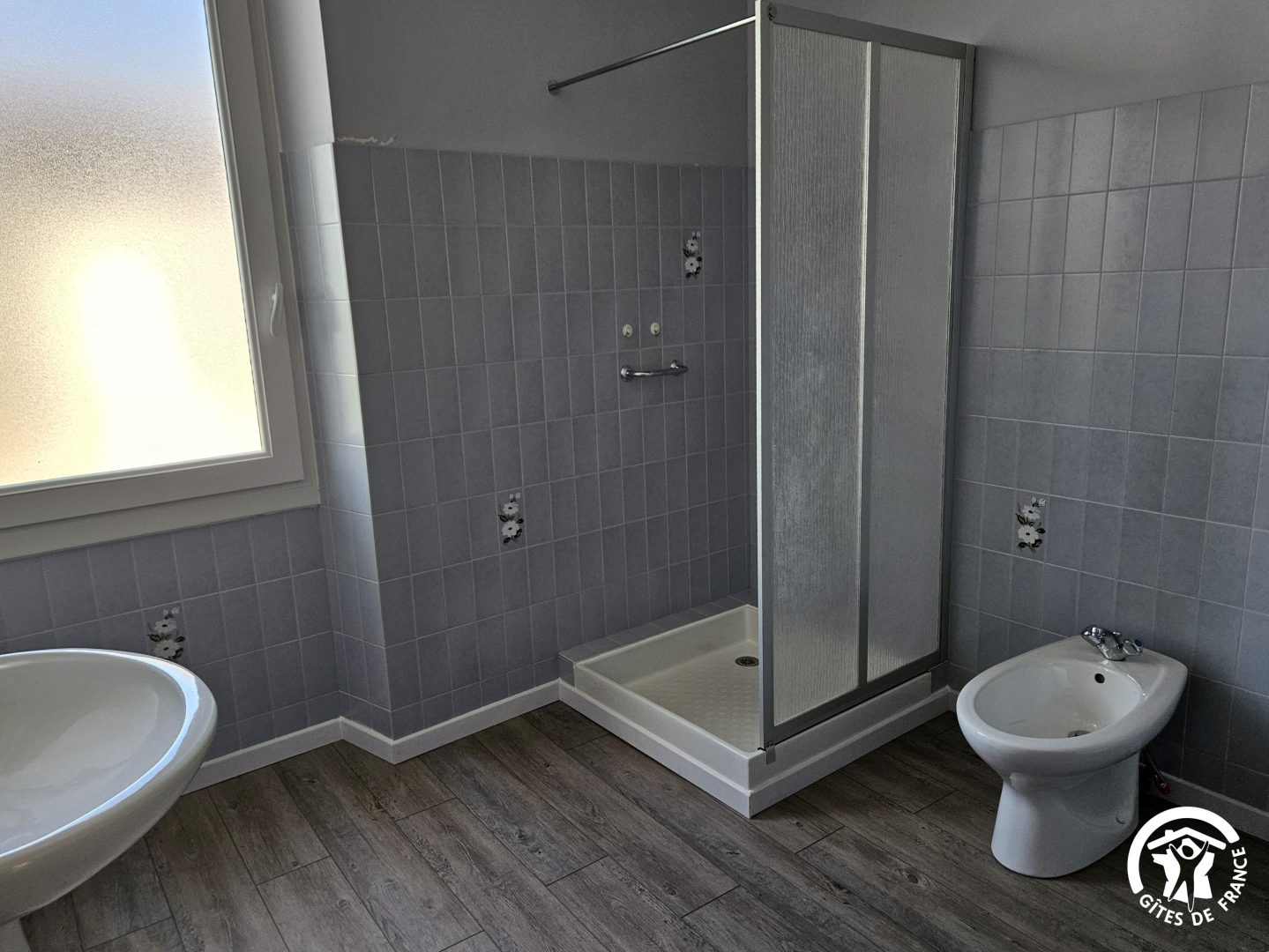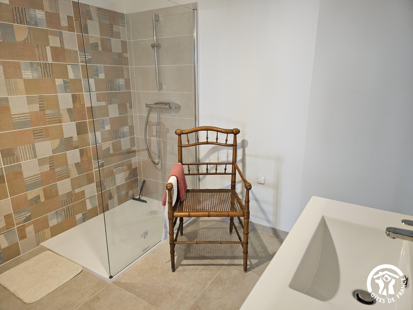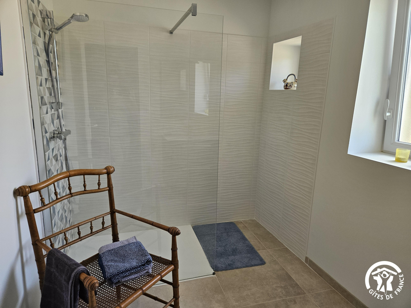 – Chambre bleue de Mado (14m²), lit double 140x190cm, avec salle d’eau privative (douche, wc)