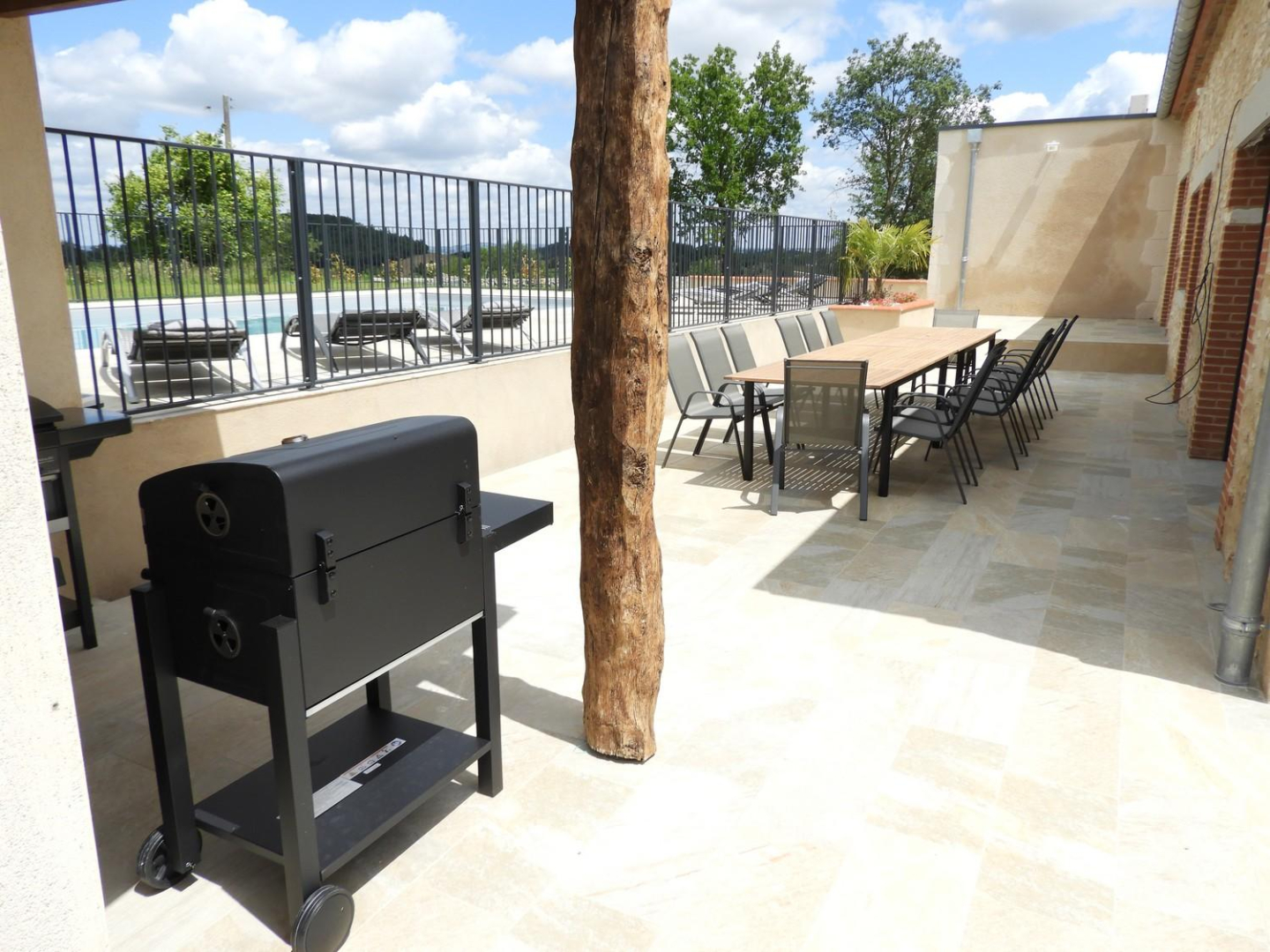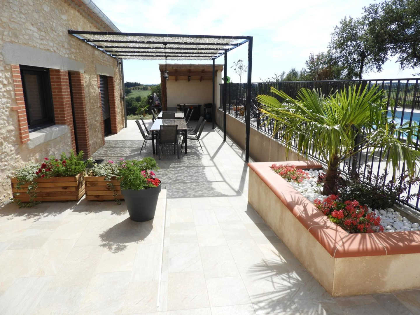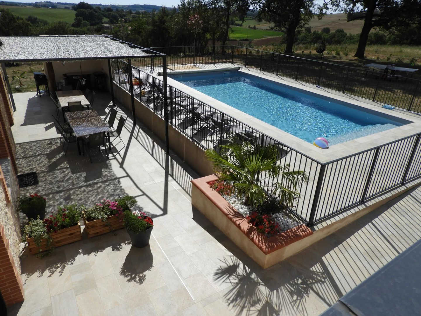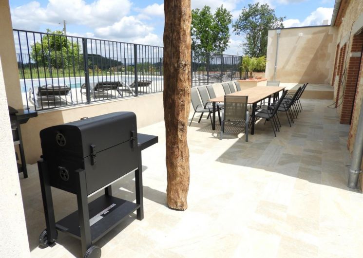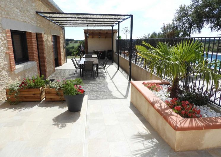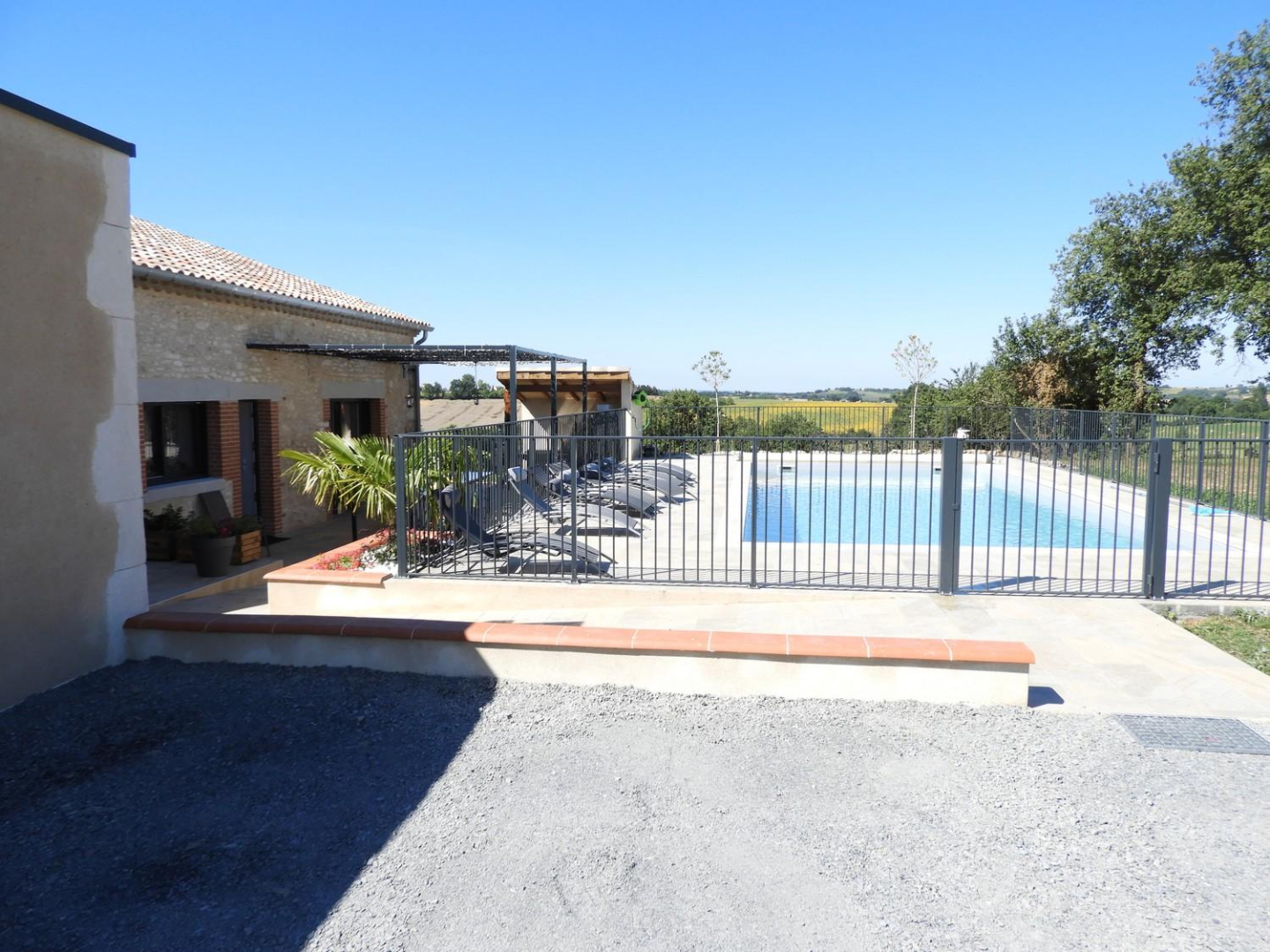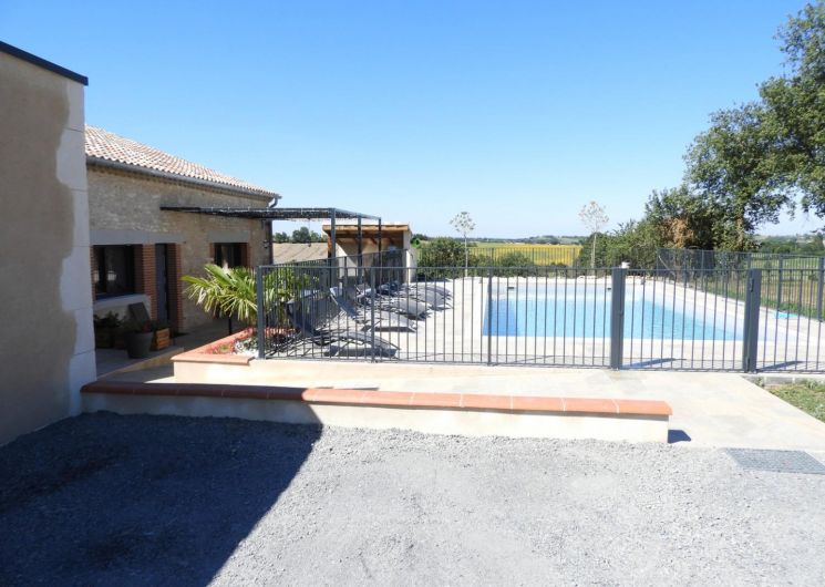 Vous pourrez profiter de la grande piscine CHAUFFÉE privative et de la grande terrasse avec son co…