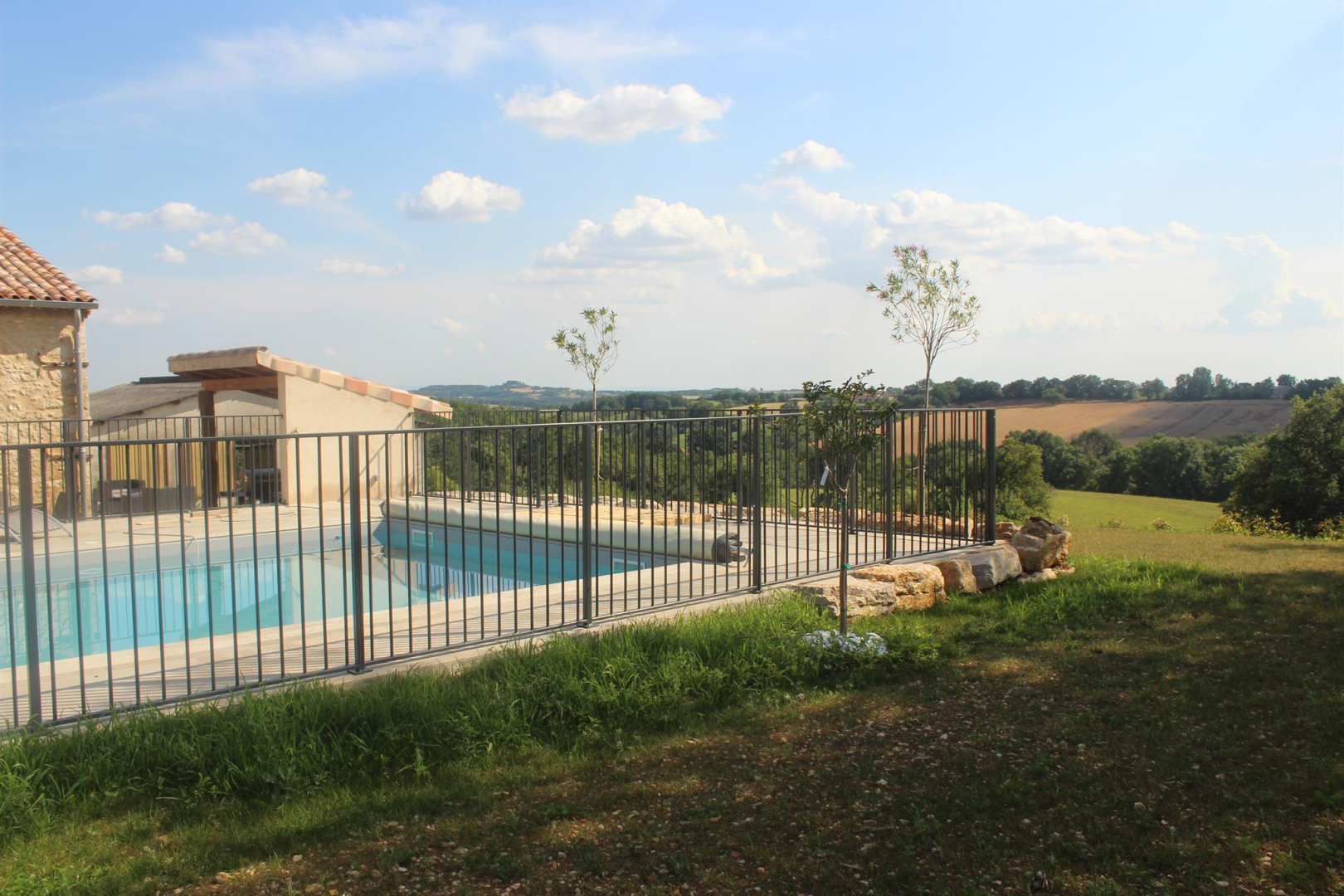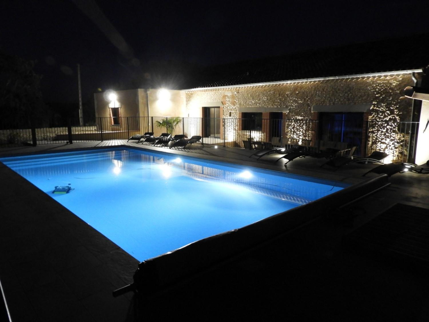 – Piscine chauffée privative de 11 x 5m, clôturée et avec bâche (double sécurité, serrure spéciale pour la sécurité des enfants). Piscine chauffée de mai à septembre.