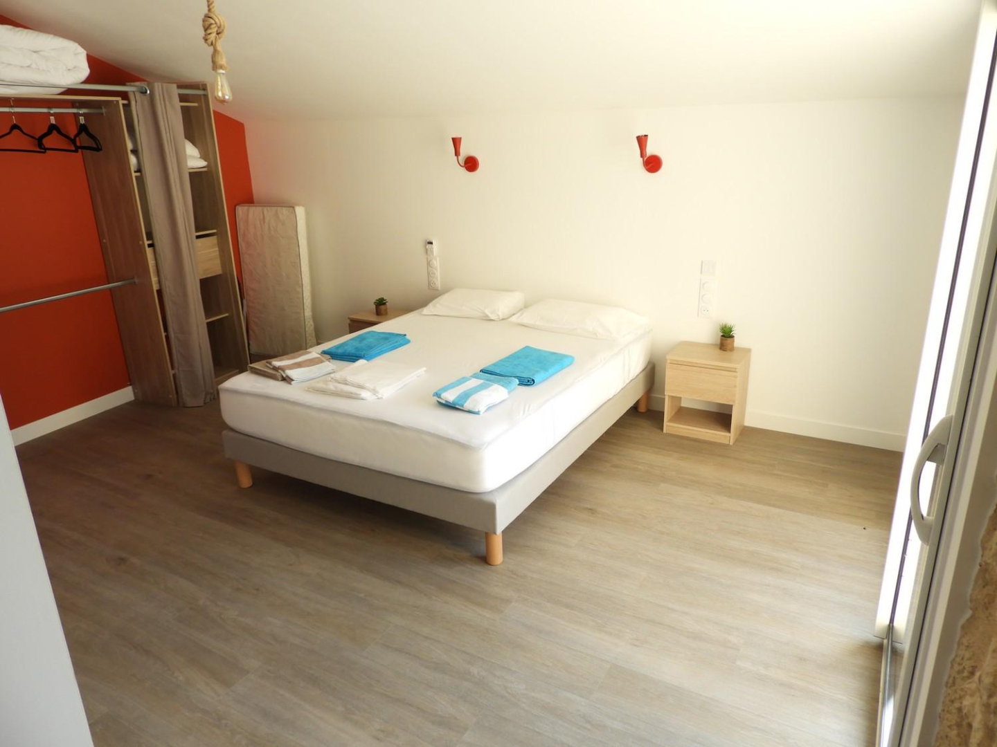 Les lits doubles sont en 160x200cm et les lits simples en 90x190cm