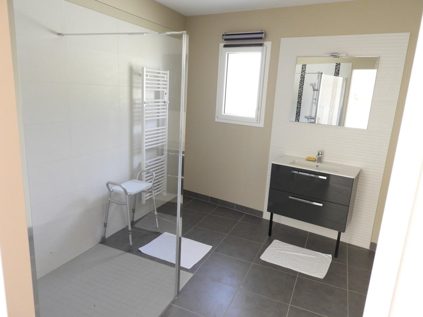 – salle d’eau (douche, double vasque, lave-linge) wc séparé