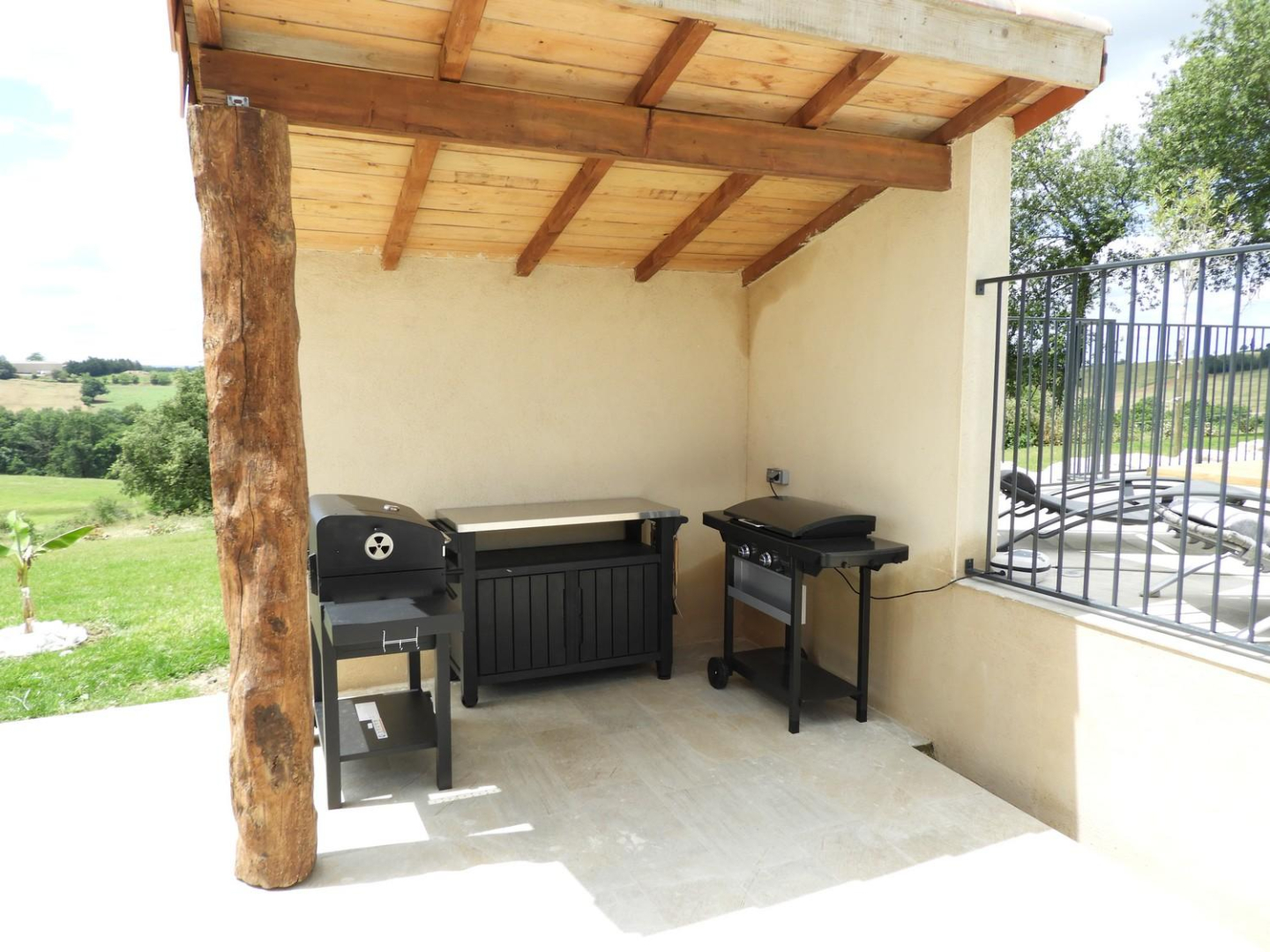 – Jardin, salon de jardin, terrasse avec pergola, barbecue charbon et plancha gaz, non clos