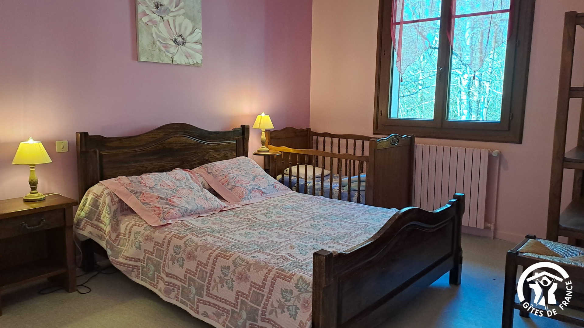 – La seconde dispose d’un lit double en 140x190cm et d’un lit bébé à barreaux.