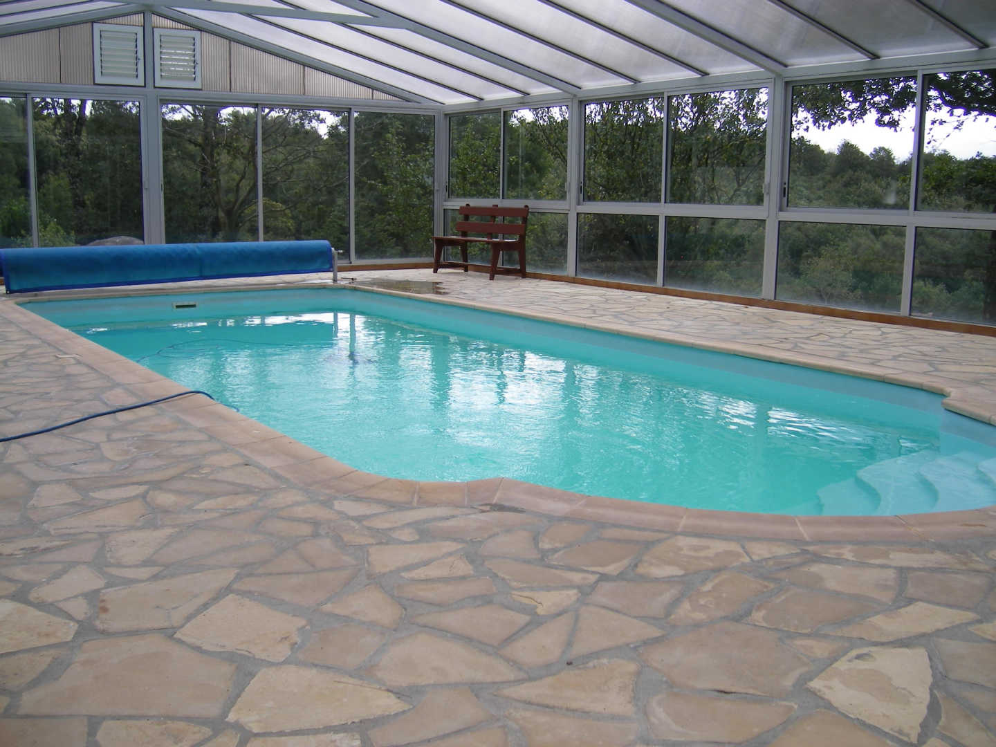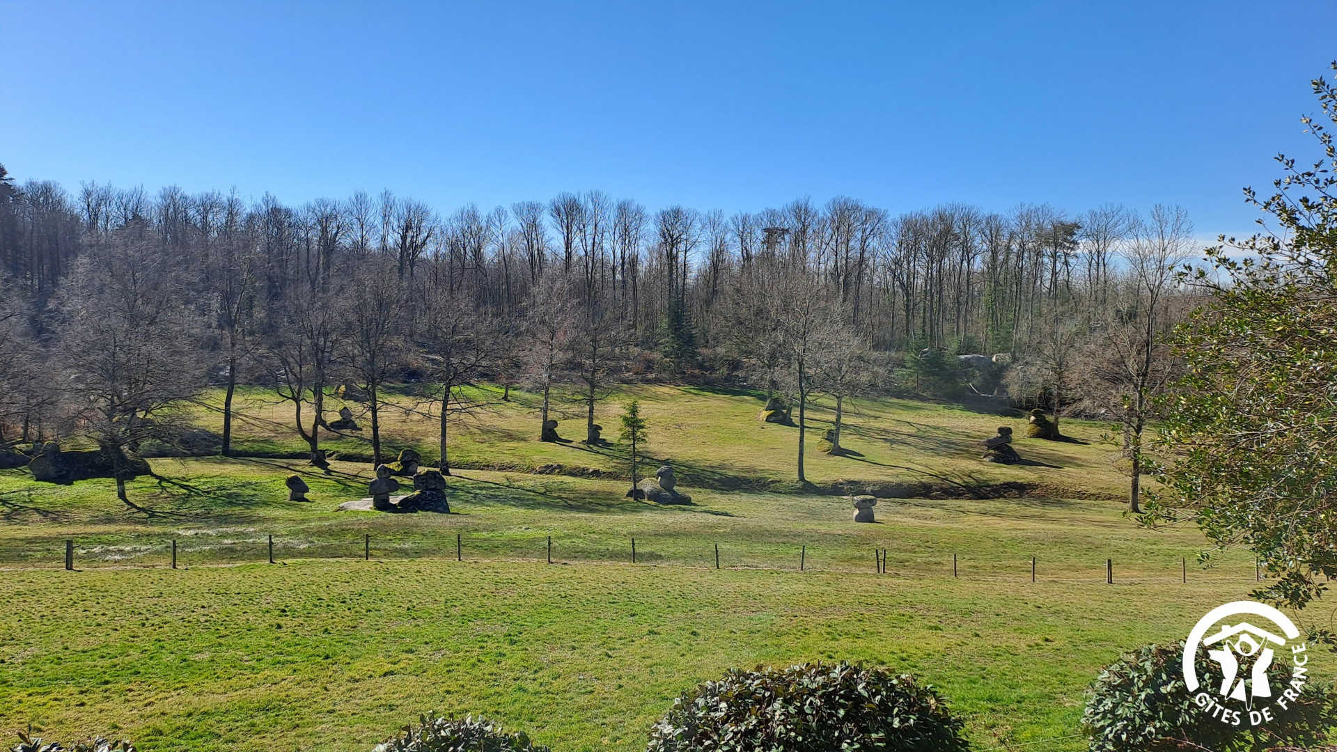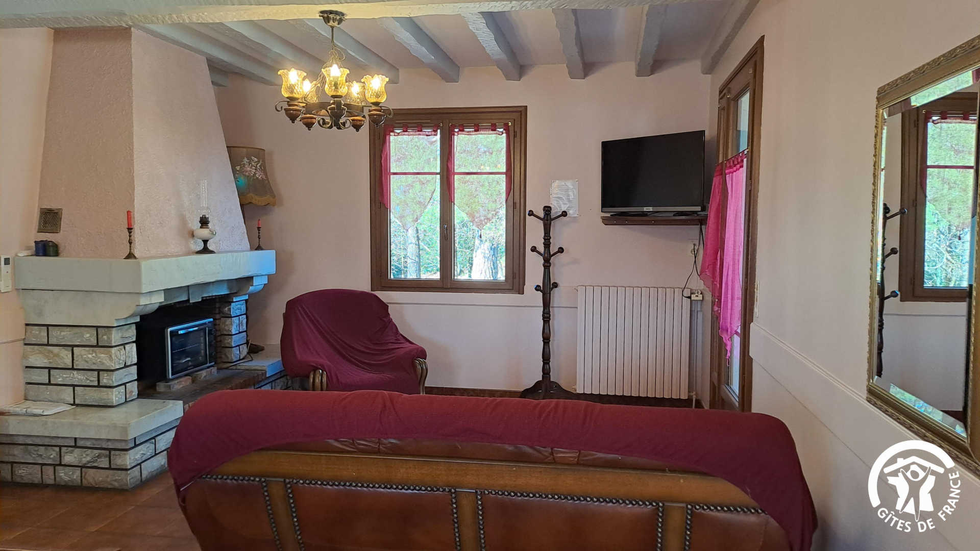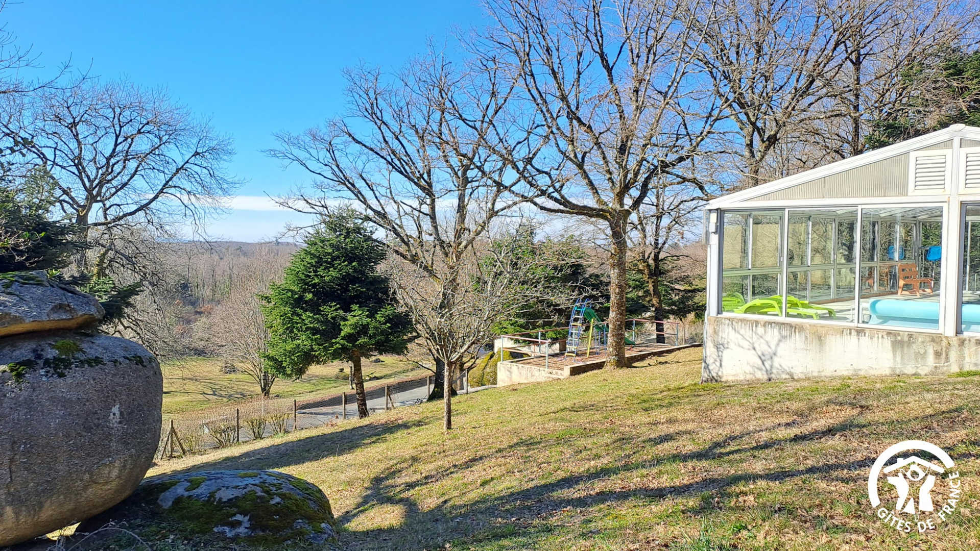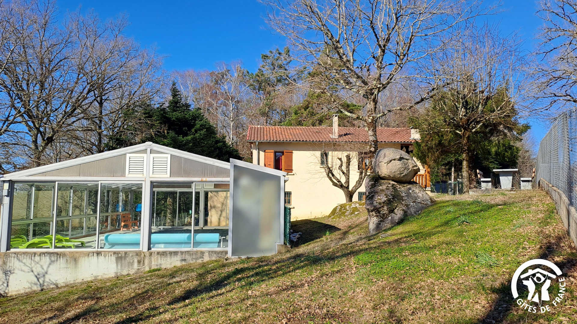Indep gîte, near two other gîtes. On gr.level : living-rm cum kitchenette, lounge, sofa, bathrm with WC, 2 bdrms (2 bds 4ft6, 1 bd 3ft, child bed – up to 5 years’ old-). Open fire, fuel heating. Washing mach, dishwasher, micro-wave, freezer, TV. Fenced grounds, garden table & chairs, BBQ, swing, toboggan, games avail. Bed linen & towels renting, cleaning service. Bed linen supplied in high season. In the heart of the granite Sidobre Mountain Chain, in the Parc Régional du Haut Languedoc, beautiful indep. villa, recently built, surrounded by forests and numerous hiking paths. Covered heated swimming-pool (from 1st April to 30th September), shared with 3 gîtes.