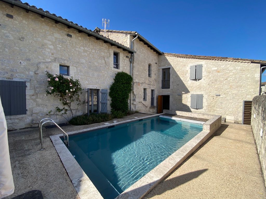 Cortile asfaltato con piscina privata, riscaldata e paesaggistica. Mobili da giardino, barbecue.