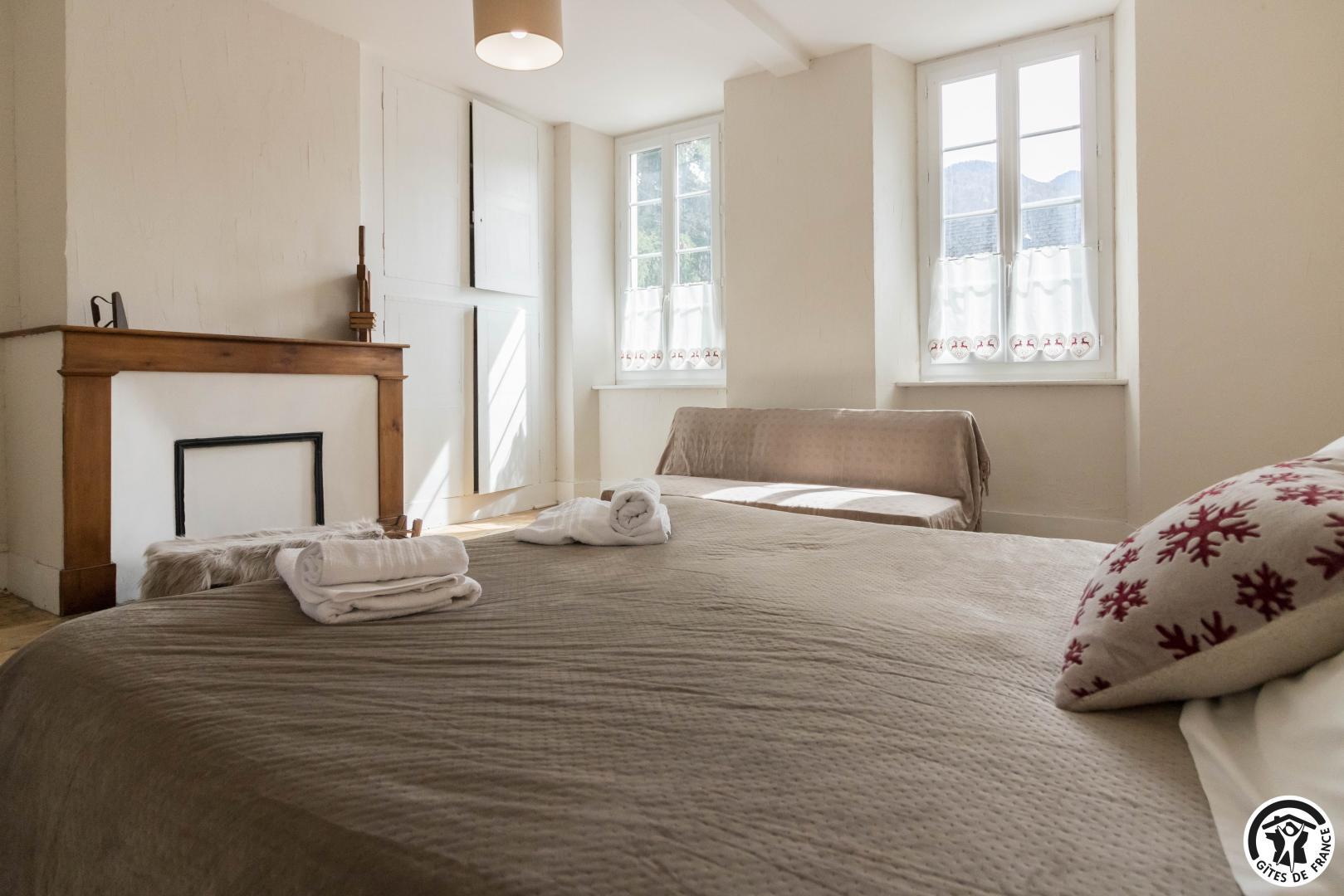 Nel cuore dei Pirenei dell’Haut-Garonne, a metà strada tra le stazioni sciistiche di Le Mourtis e Luchon, il Domaine des 3 Marmottes vi conquisterà sia in estate che in inverno! Nel villaggio di Cierp-Gaud, questa bella casa in pietra vi apre le porte, che siate sportivi, escursionisti, ciclisti o vacanzieri in cerca di pace e benessere. Lasciatevi guidare da Valérie, che farà di tutto per rendere il vostro soggiorno il più piacevole possibile! Siete a soli 4 km dal Lac de Géry, un centro ricreativo che offre un’ampia gamma di attività, tra cui la pesca, l’allevamento ittico, il pony trekking, il paddle-board, il pedalò e la pétanque. E a 17 km da Saint-Bertrand-de-Comminges, uno dei più bei villaggi di Francia! La Spagna dista 15 km. La casa è disposta su 3 livelli: – al piano terra: l’ingresso conduce alla sala per la colazione, che si apre sulla terrazza esposta a sud, a un salotto con camino e televisione e a un ampio soggiorno dove vengono serviti i pasti alla tavola degli ospiti. Per il benessere degli ospiti è disponibile una sauna interna. – al primo piano, due camere doppie: “Le Burat” (1 letto matrimoniale da 160 cm con bagno doccia e WC separato) e “L’Escalette” (1 letto matrimoniale da 160 cm, bagno doccia e WC separato). – al secondo piano, sotto la grondaia, una camera familiare: “L’Aneto” con, in fila, la camera dei bambini (2 letti singoli da 90 cm), la camera dei genitori (1 letto matrimoniale da 160 cm e un doppio lavabo) e il bagno con doccia e WC separati. Attenzione: arrivo dalle 17:00. Tavola calda: 28 € (da 8 a 12 anni: 12 €, sotto gli 8 anni: 7 €) Sauna: 5 €/persona Traduction automatique par DeepL via DATAtourisme