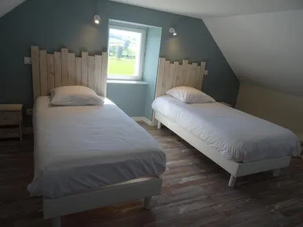 Gîte indépendant, dans un ancien corps de ferme, aménagé sur 3 niveaux, à proximité d’une exploitation agricole (élevage bovin), dans un hameau, en campagne.