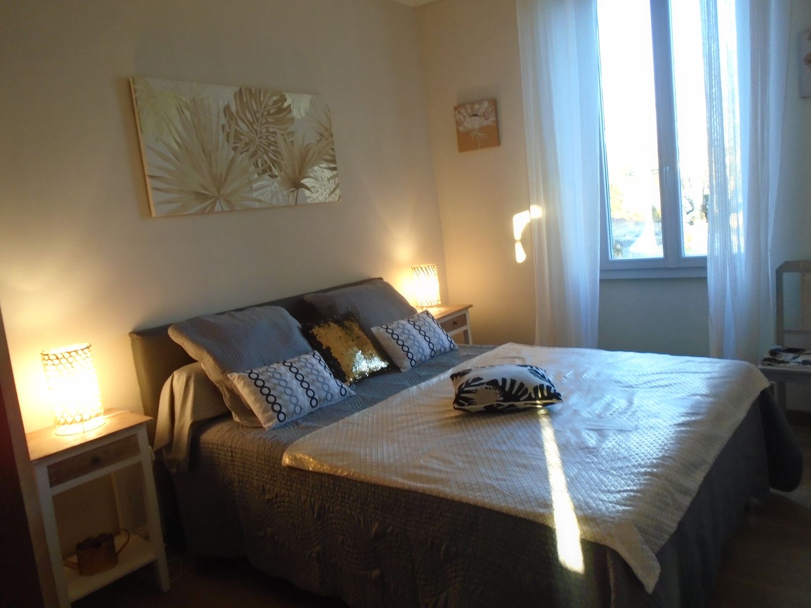 Nella campagna, vicino alla casa dei proprietari senza rispetto ai Vide-Vis, il cottage include al piano terra: soggiorno (camino, TV, divano), sala da pranzo, cucina (elementi integrati (lavastoviglie, micro-ondate, lavatrice), bagno con WC, 1 sala giochi (calcio da tavolo). Al 1 ° piano: 1 camera da letto (1 letto 140), 1 camera da letto (1 letto 160), 1 camera da letto (1 letto 140, 1 letto 90), 1 Camera da letto (2 letti 90 gemellaggio), bagno con doccia con WC. Grande terrazza con barbecue, mobili da giardino. Terra privata chiusa (600 m2), giardino privato (300 m2). Terrana privata (40 m2). Connessione Internet gratuita (WiFi). Pompa di calore di riscaldamento (radiatore). Opzionale: noleggio di lamiera, lino per la casa e toilette, pulizia.