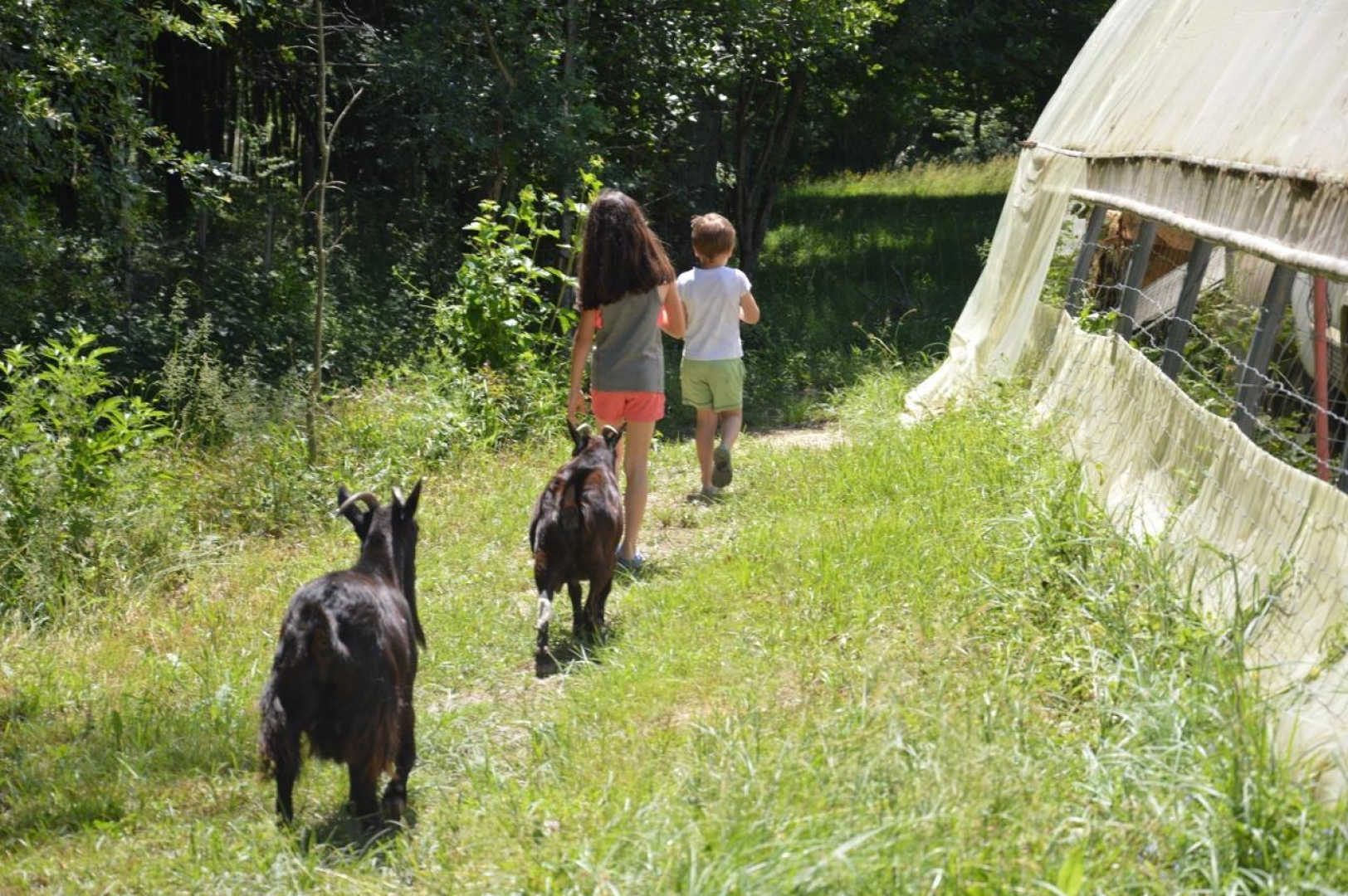 The Grand Gourpat is the addition of the Gourpat deposit, for six people (ref G335), and the Gourpat chalet, for four people (G1578). It thus accommodates comfortably ten people, for holidays in family or between friends, in the middle of the woods. The terraces and the living room will allow you to share your meals together. The cottage and the lodging of Gourpat being all equipped, you will have thus all in double: two kitchens, two rooms of water, two living rooms of garden, etc … With us, you will be able to make the acquaintance of our three donkeys and our pony, of all our other animals, on our meadows around the lodging, to look for the eggs in the henhouse and according to the seasons and productions pick your own vegetables …