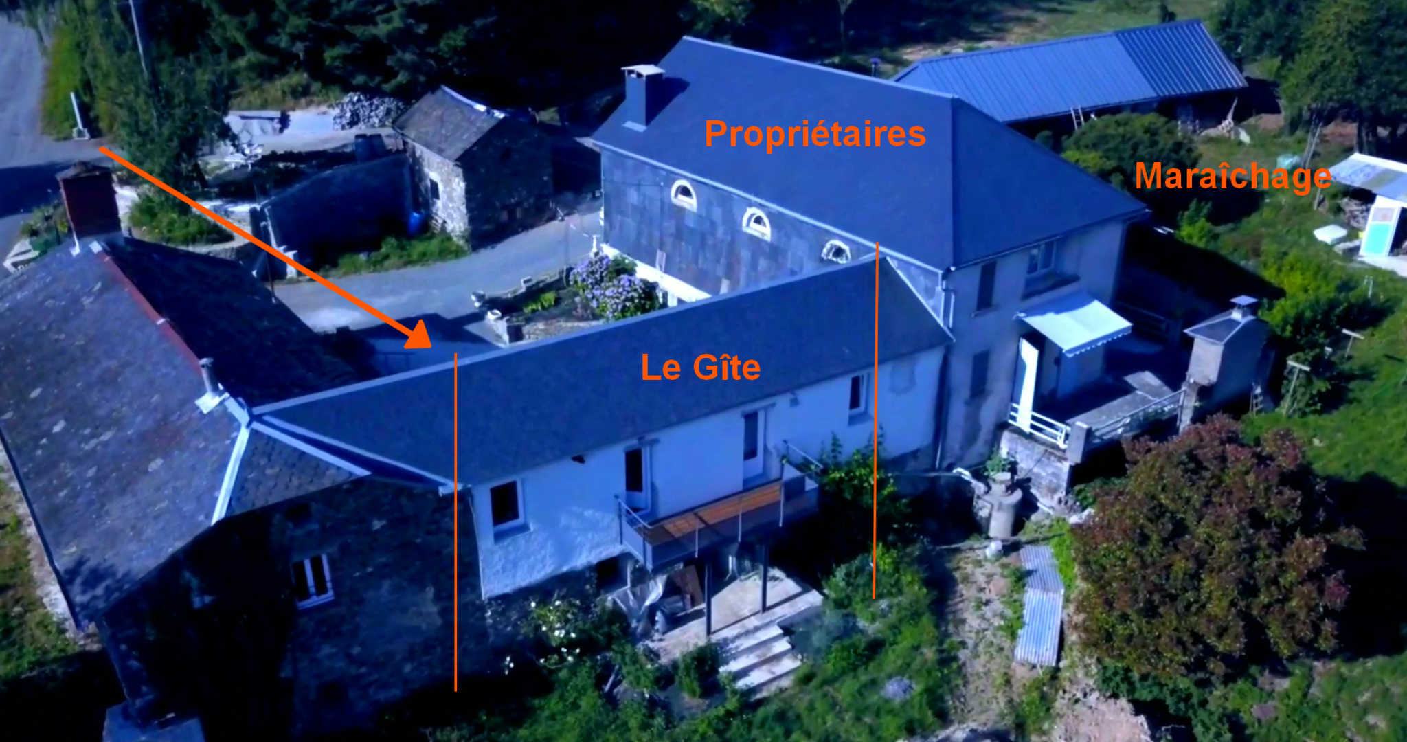 Parking devant le gîte. Jardin partagé avec les propriétaires permettant de profiter de grands espaces verts au milieu des plantations bio de la propriété. Très bon accès 4G sur le village.