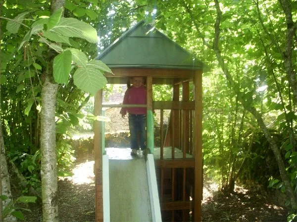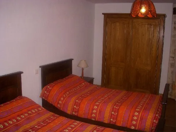 Gîte 3 niveaux, mitoyen à autre gîte, ancien corps de ferme avec 3ème gîte, dans hameau. 4 chambres (3 lits 140, 2 lits 90), 2 salles d’eau et 1 salle de bains, coin cuisine avec lave-vaisselle/séjour avec canapé, télévision et cheminée, buanderie avec lave-linge, chauffage complet électrique, salon de jardin, barbecue, cour non close privée, location de draps et linge de maison. Commun : terrain de pétanque, portique, location de VTT, parc boisé, mini-golf. Trampoline, volley-ball et badminton.