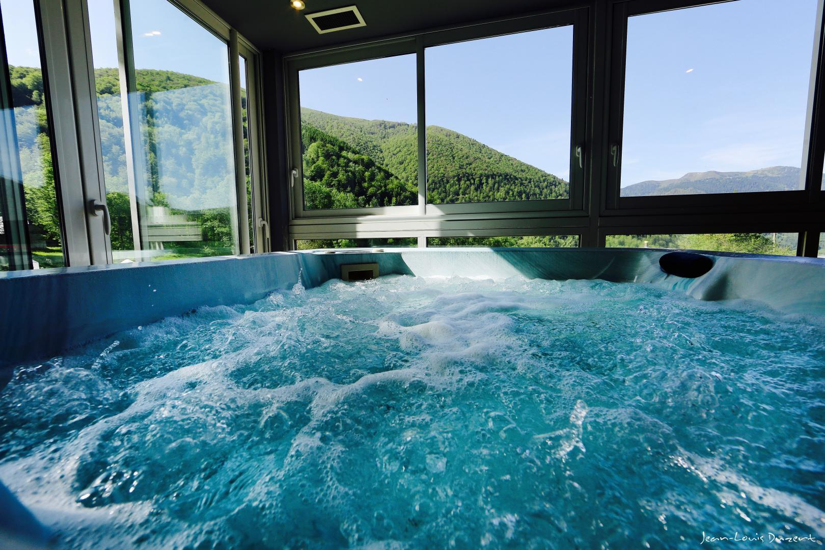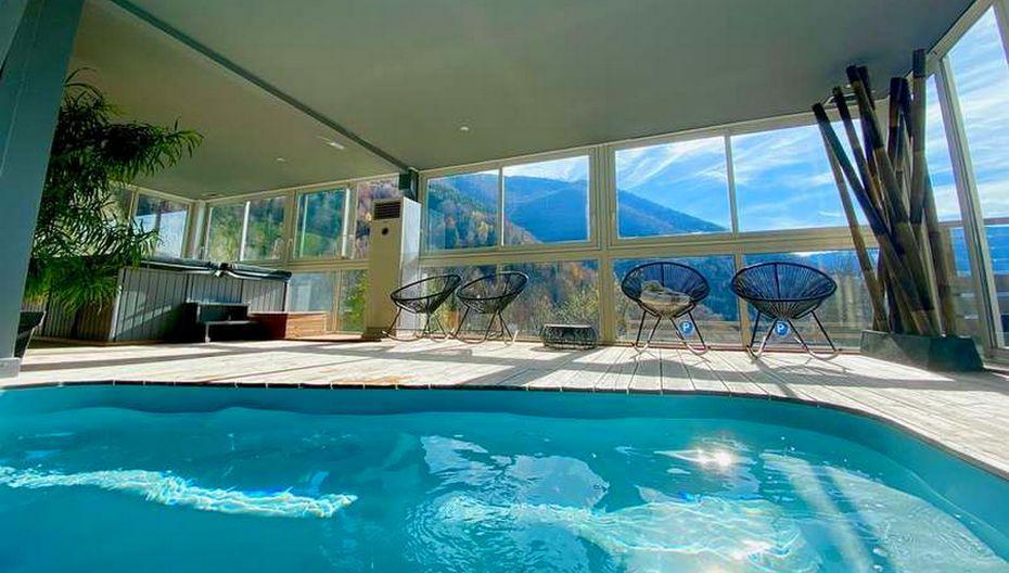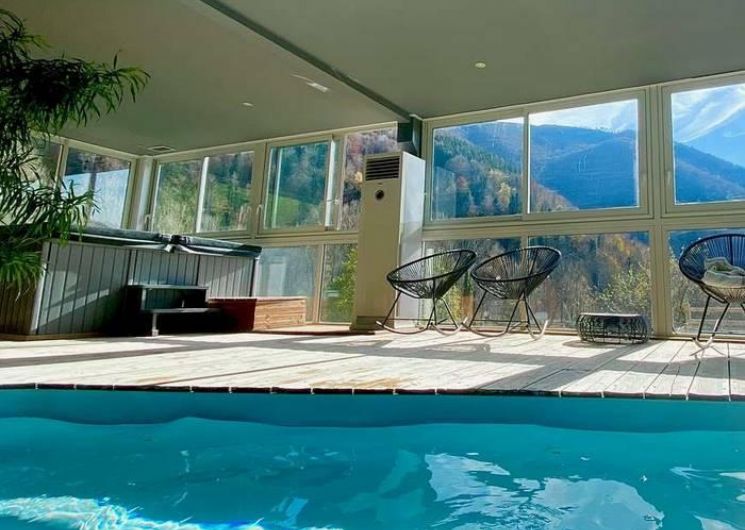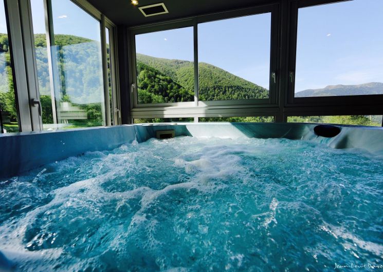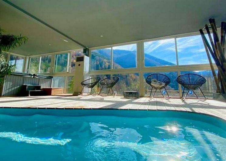 The gîte has 8 bedrooms sleeping 2 to 6 with en suite shower rooms. A SPA area (heated indoor swimming pool, wood-fired sauna, jacuzzi, spa, Nordic area with hot and cold outdoor baths), 4 panoramic terraces, billiards table and a reading room are available for your comfort.